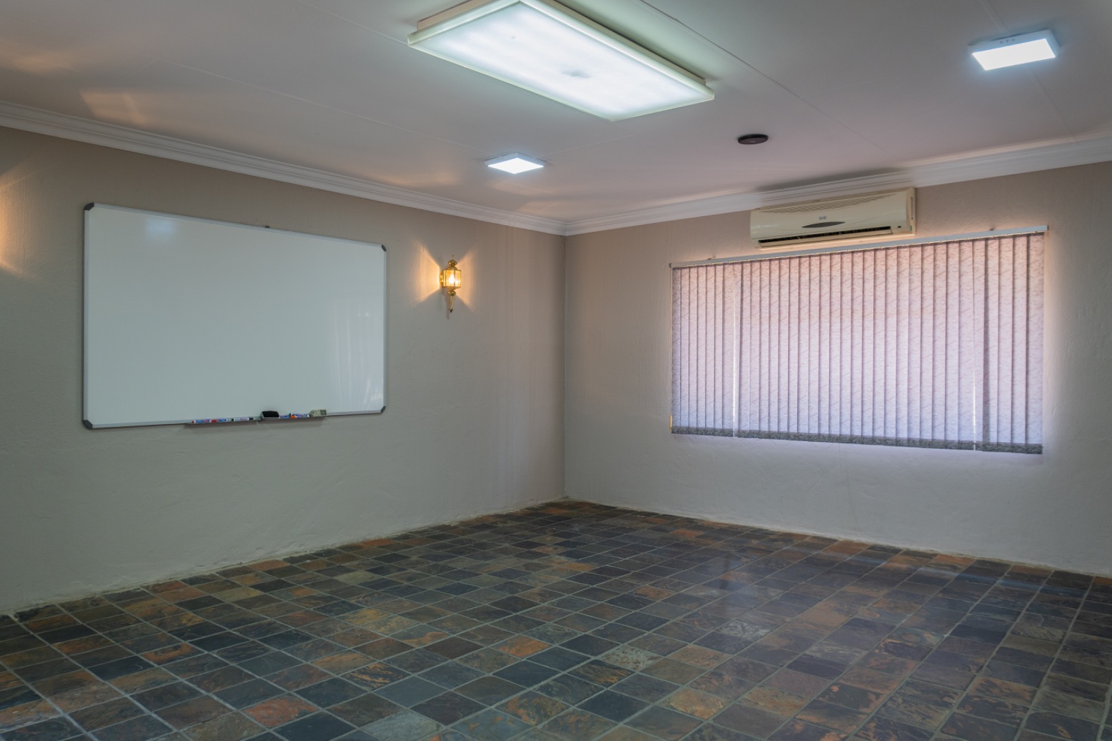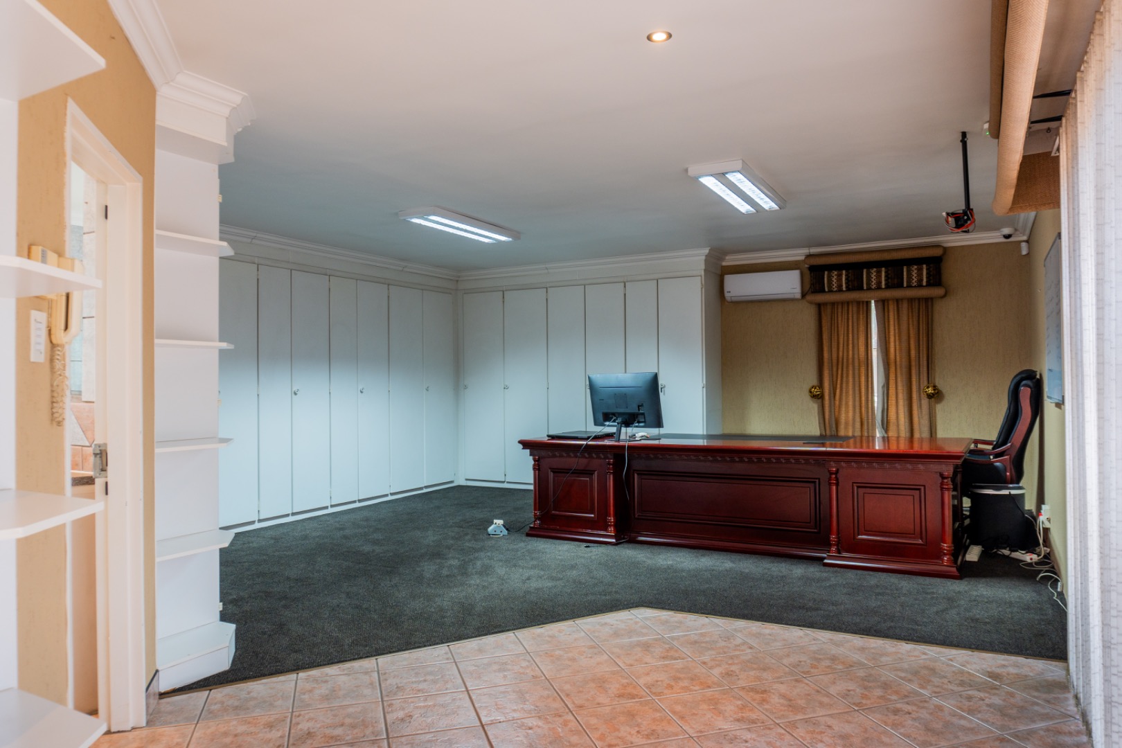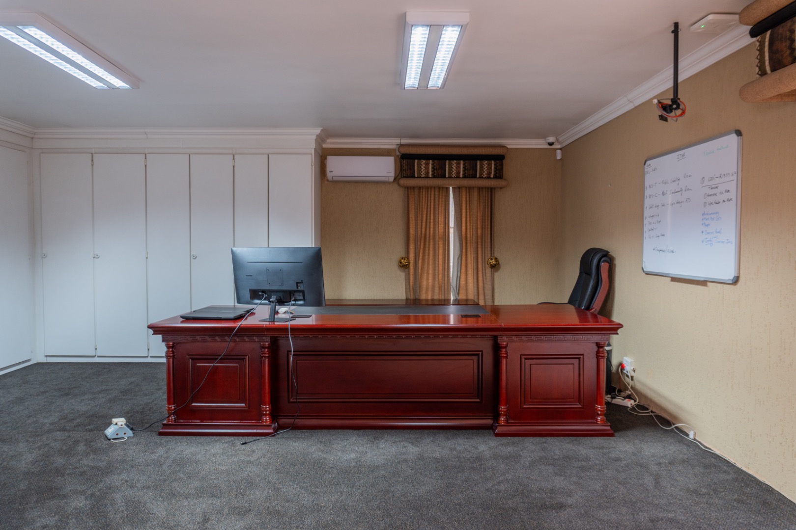 The building offers eight generously sized rooms, suitable for bedrooms or office spaces, along with five bathrooms, providing excellent functionality for high-occupancy use. Several areas are fitted with air-conditioning, adding to the overall comfort of the space.