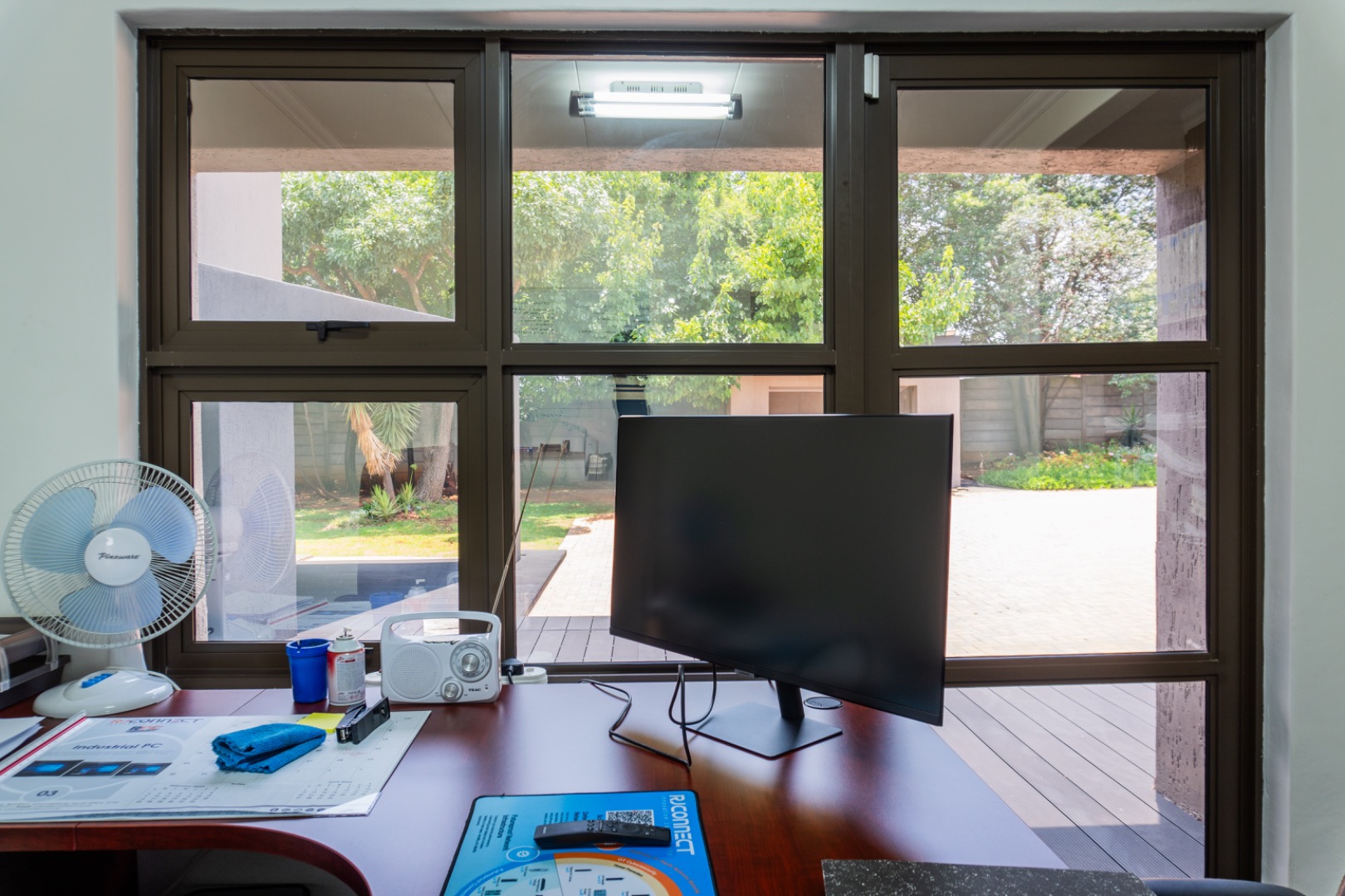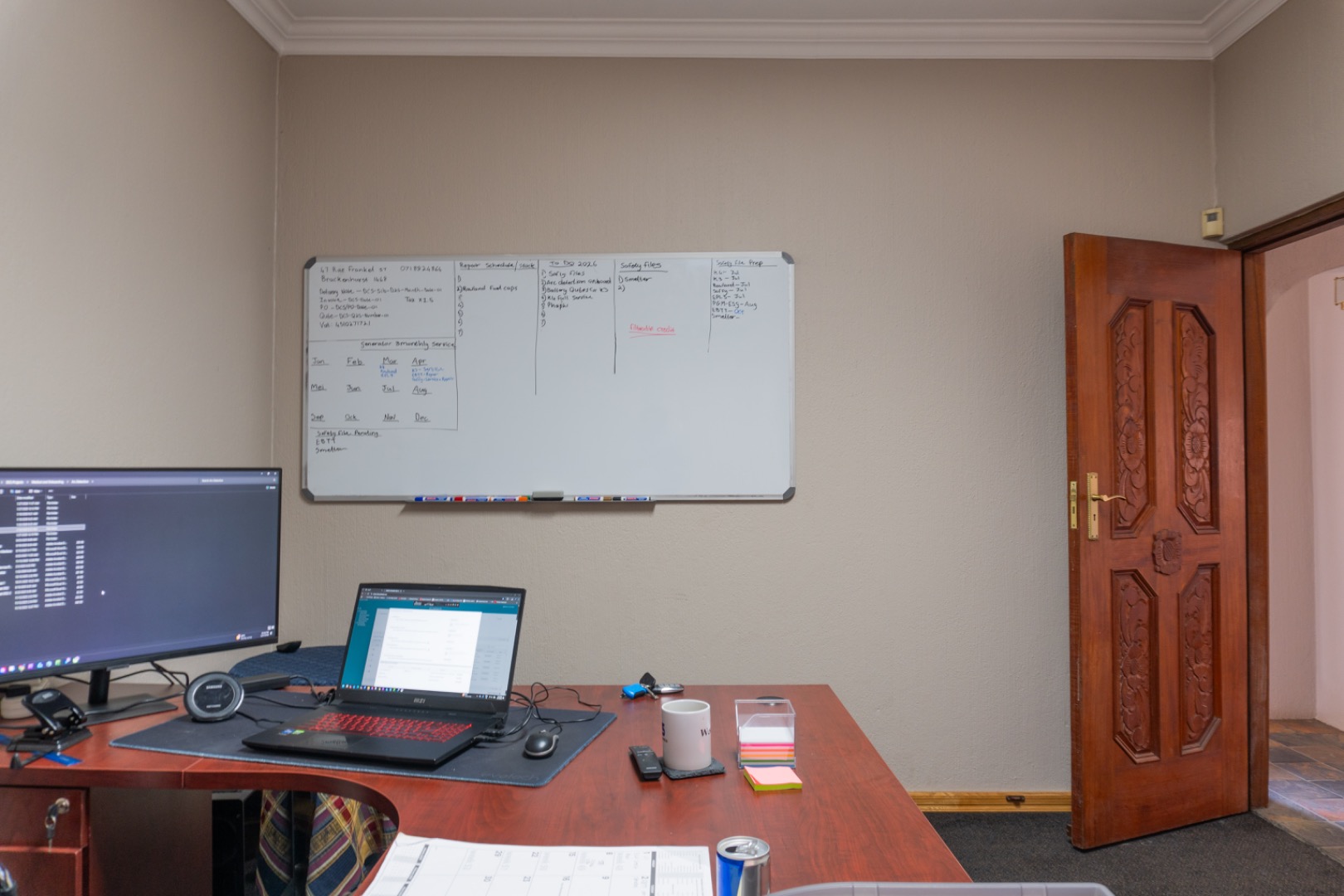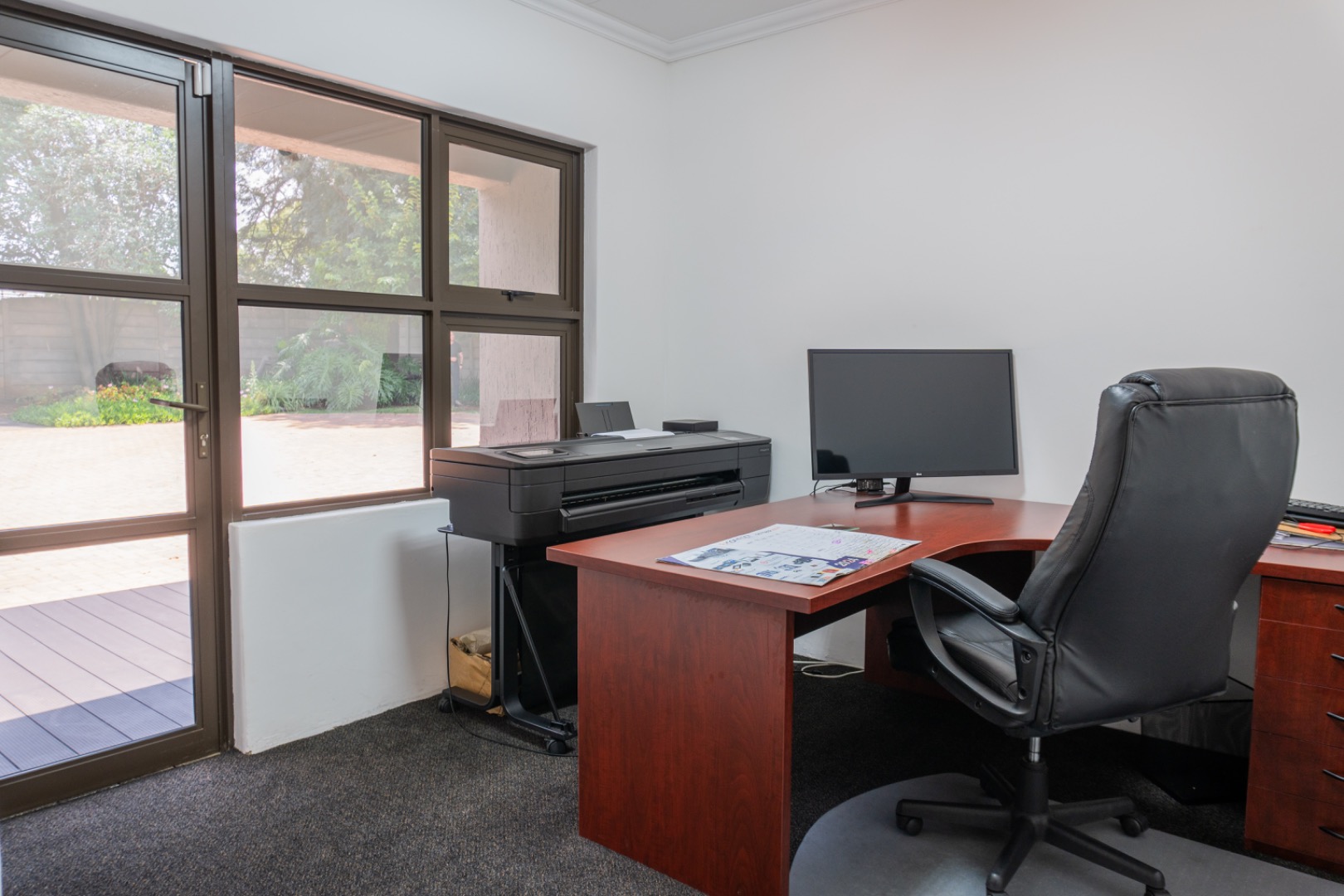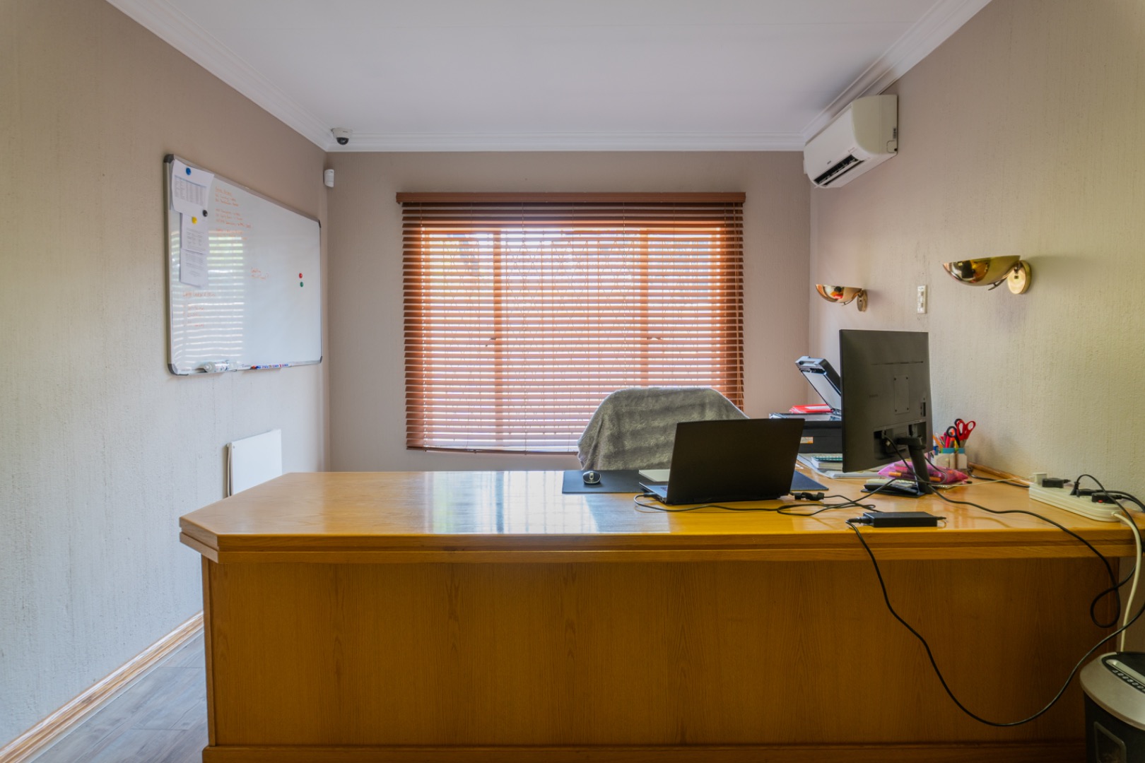 The building offers eight generously sized rooms, suitable for bedrooms or office spaces, along with five bathrooms, providing excellent functionality for high-occupancy use. Several areas are fitted with air-conditioning, adding to the overall comfort of the space.