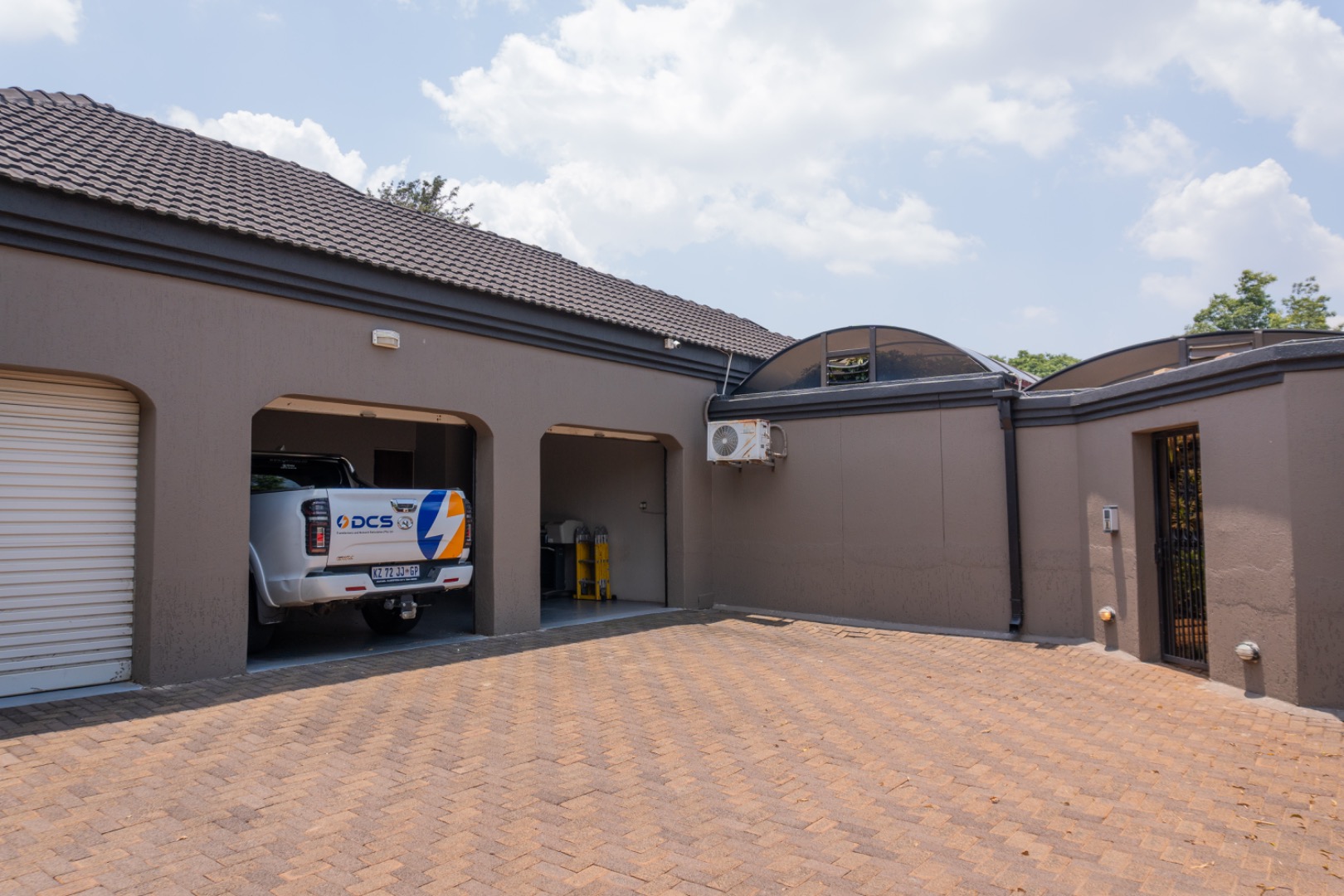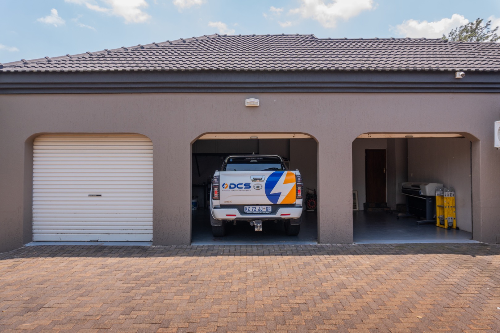 Set on a well maintained stand, offering a tranquil outdoor environment. Three garages provide secure parking, complemented by shaded parking bays and extensive paved areas that allow for ample additional parking.