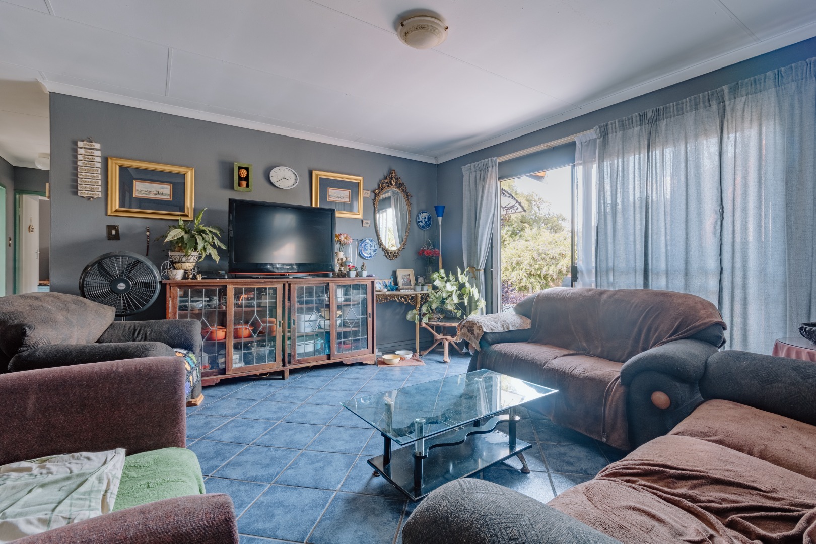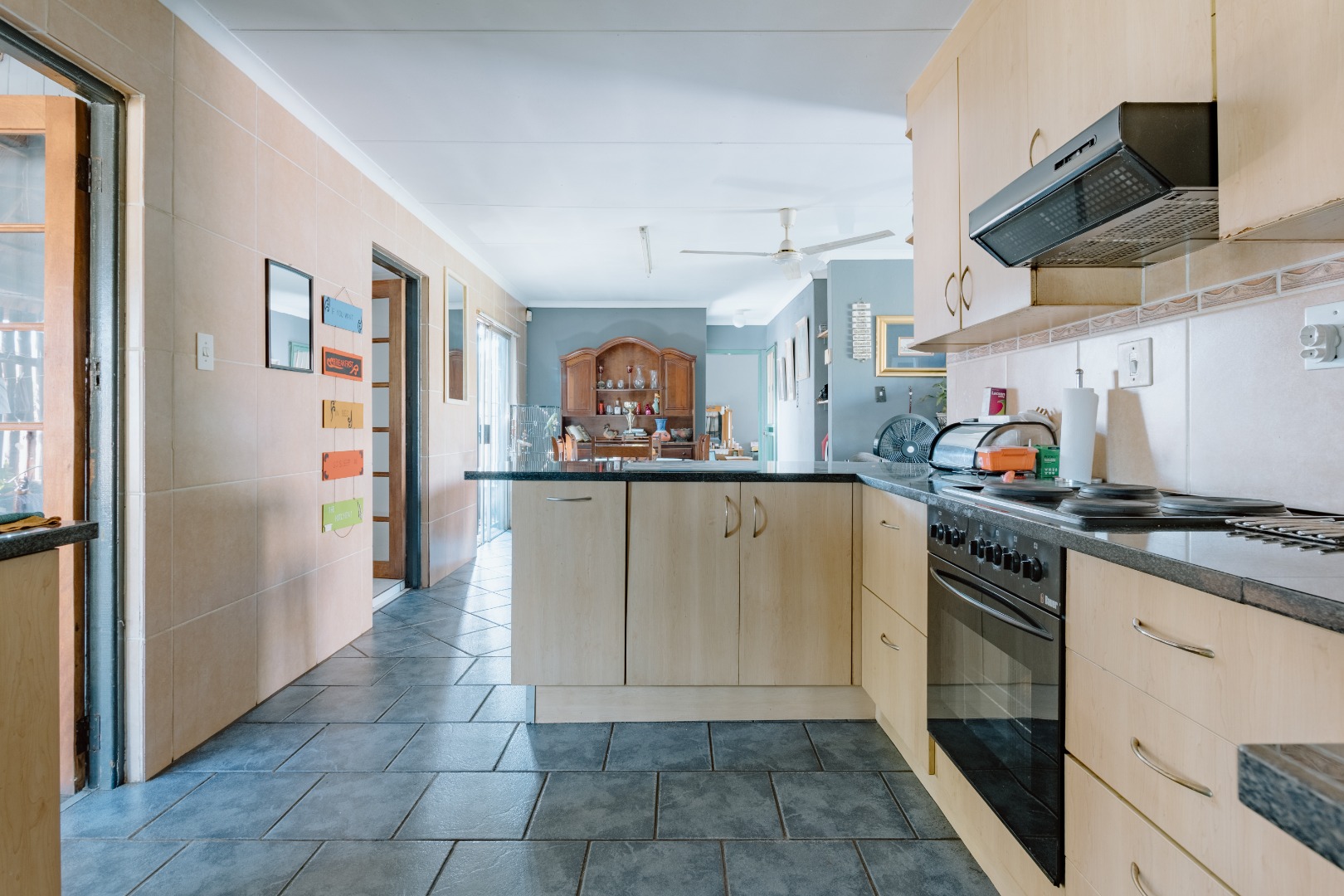 The home features three well-sized bedrooms, two of which are en-suite, providing privacy and convenience. A third bathroom serves the rest of the household. The kitchen is well-appointed with ample storage and counter space, complemented by a separate scullery for added practicality. A lapa outside the kitchen plays host to a lovely space for enjoying meals outdoors with the family. The lounge and dining areas flow seamlessly, creating a warm and welcoming atmosphere, while a dedicated study provides the ideal space for work or quiet retreat.