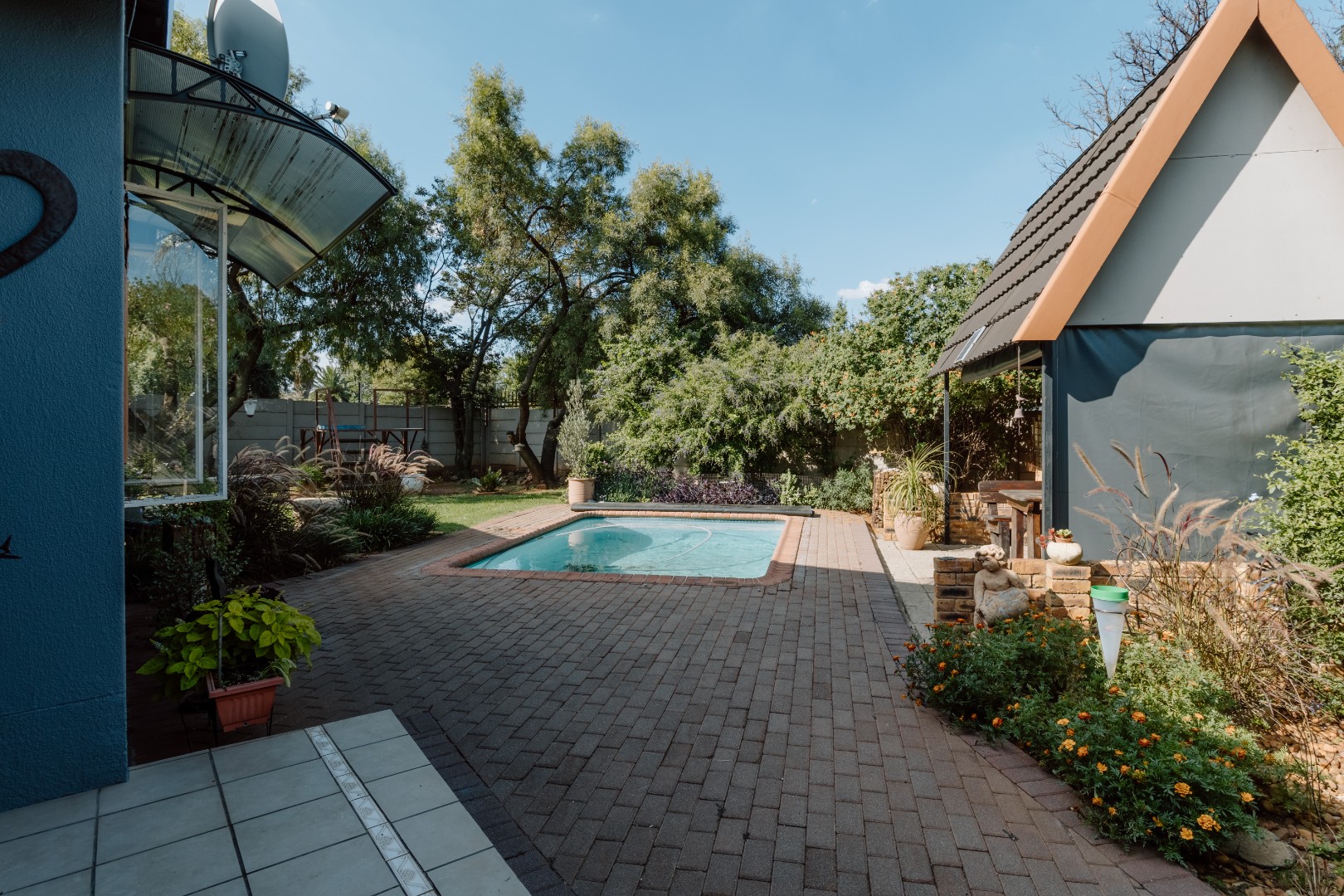 Outside, the property continues to impress with its entertainment-ready amenities. A lapa with a built-in braai offers the perfect setting for gatherings, while the sparkling pool invites you to unwind on sunny days. The home is completed by a three-car carport, ensuring ample covered parking.