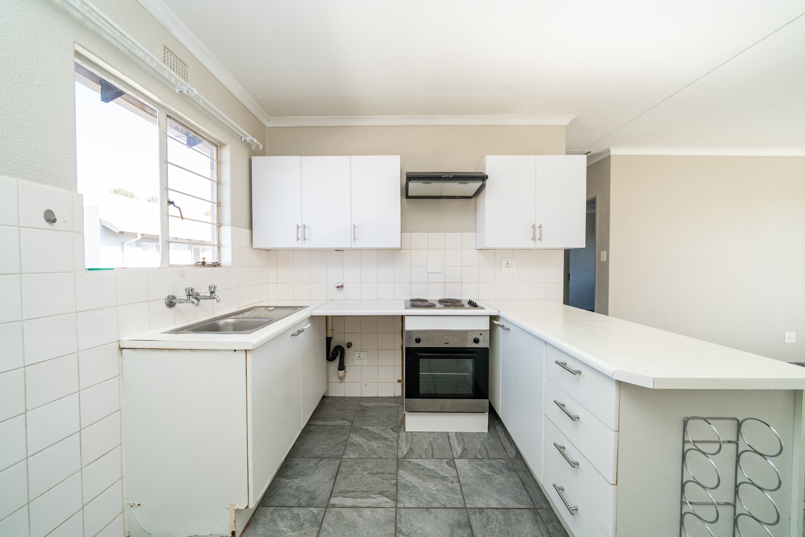 We’re proud to present this charming, move-in ready two-bedroom, one-bathroom home! Enter through a private patio into a spacious lounge and well-equipped kitchen, offering ample counter space and cabinetry—ready for your personal touch. The home is fully retiled for a fresh, modern feel and features two generously sized bedrooms and a bathroom with a convenient bathtub-shower combo. Extras include a covered parking bay, ample visitor parking, 24-hour security, a communal pool, and a braai area. All this in a well-kept complex just 1km from a shopping centre and close to major amenities. Don’t miss out—contact me today!