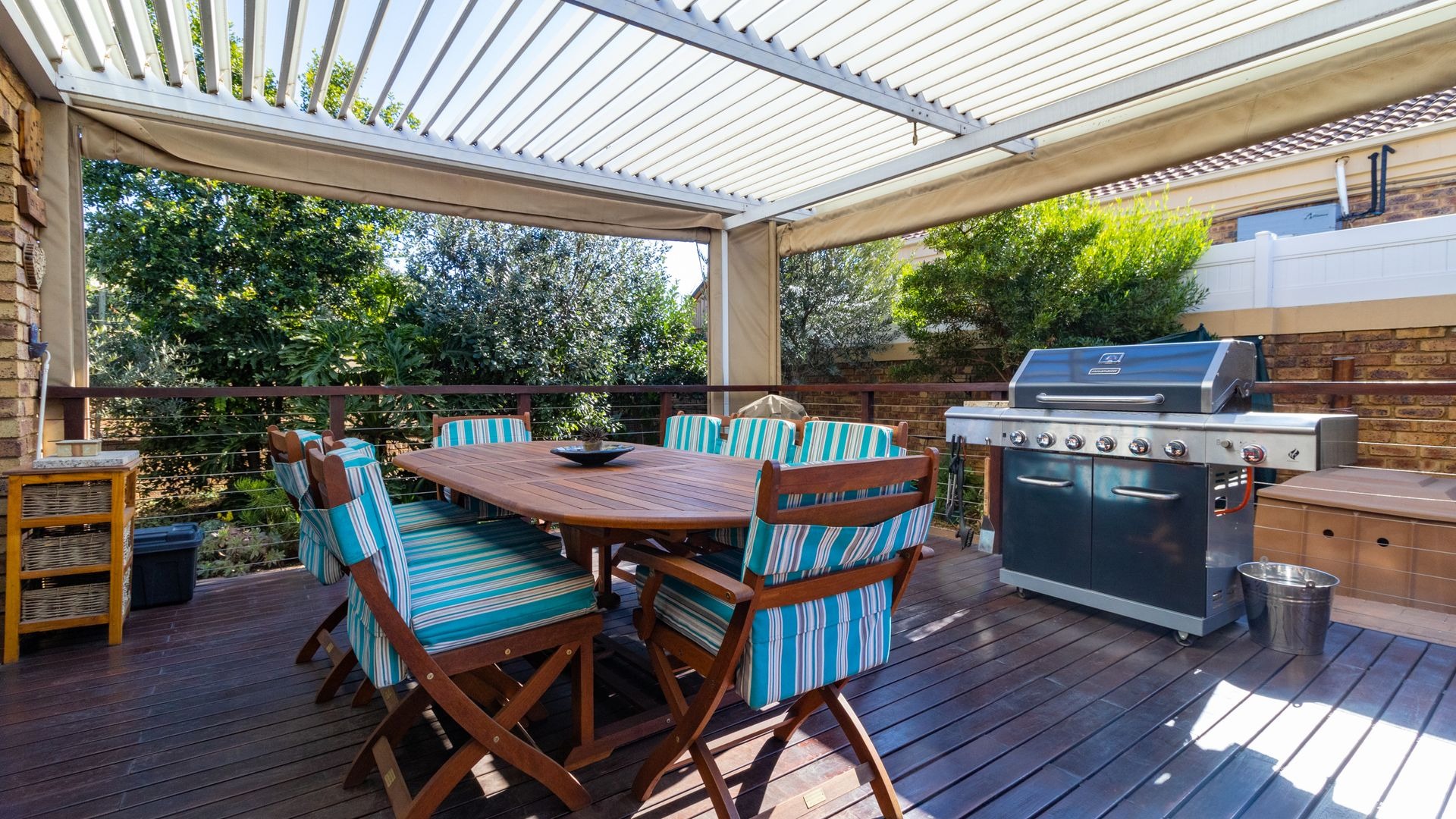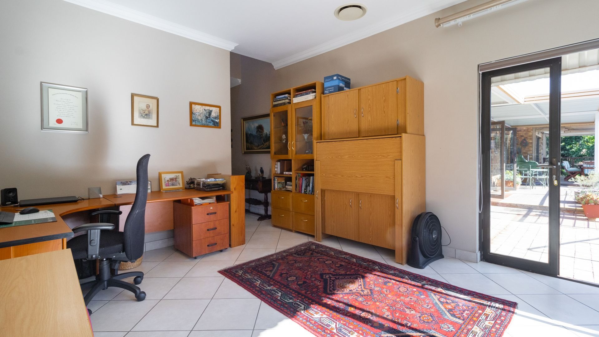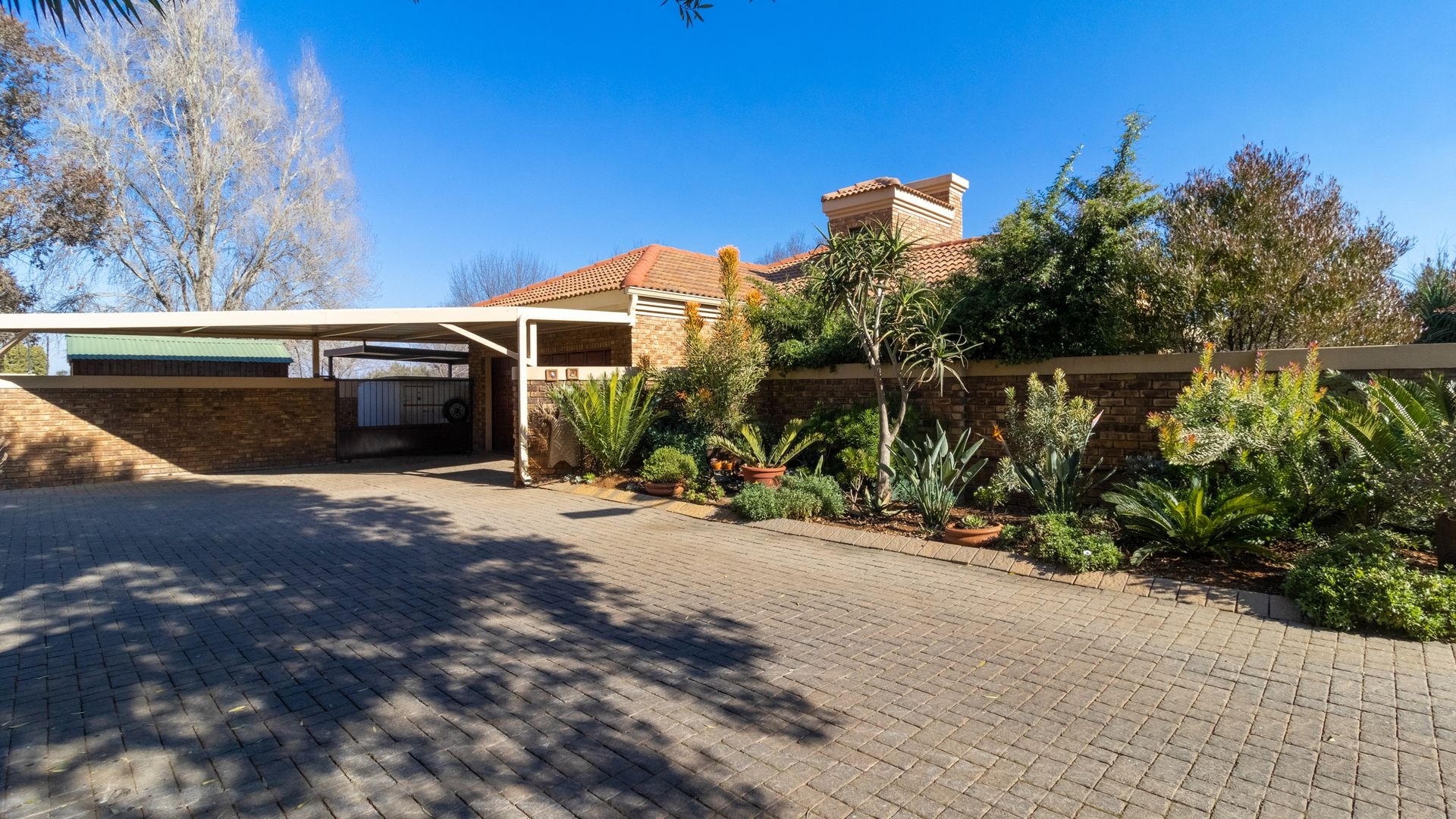 Outdoor living is well-catered for with a private garden, complete with an irrigation system and sprinkler system, ensuring lush surroundings. A patio, deck, and braai room, complemented by an awning, provide ample opportunities for outdoor entertaining. The property also includes two garages and three additional parking spaces, alongside a paved driveway, offering extensive vehicle accommodation.