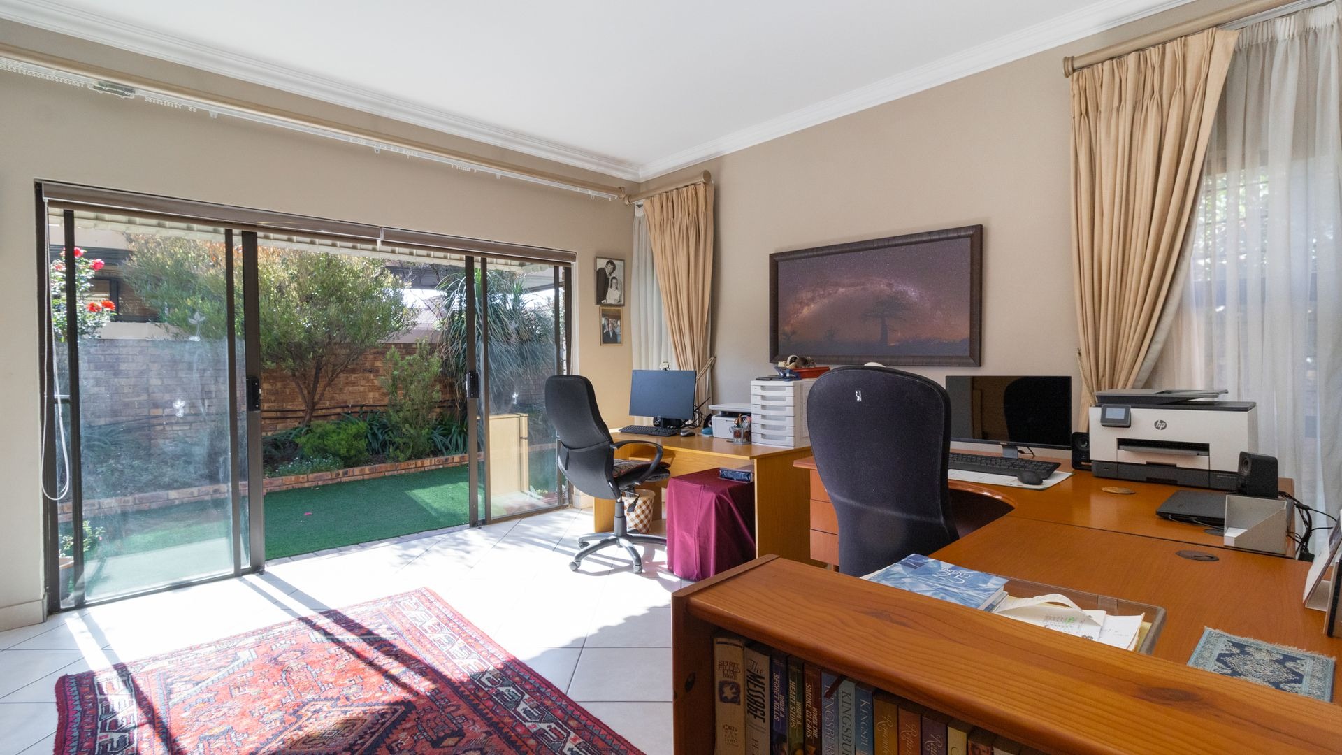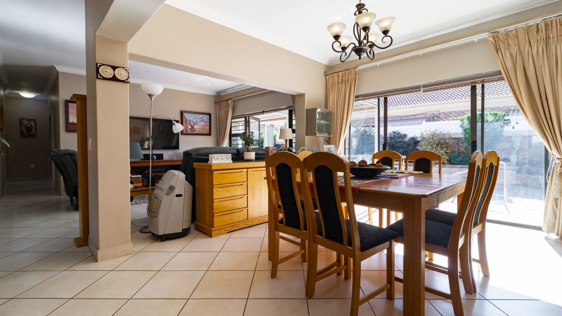 This distinguished residential property, situated within a secure gated community in the desirable Meyersdal suburb, offers an exceptional living experience. The residence features an open-plan design, seamlessly integrating the lounge, dining room, and a well-appointed kitchen, which includes a practical pantry. A dedicated study provides an ideal space for professional pursuits or quiet contemplation.