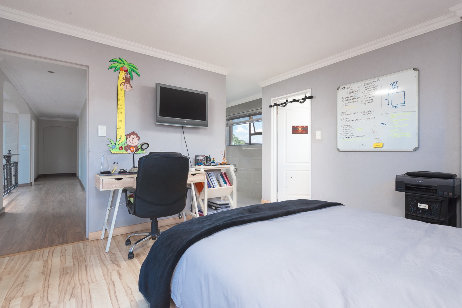 Discover an exquisite sanctuary nestled within a prestigious gated community in Meyersdal, Alberton. This magnificent four-bedroom residence, boasting 3.5 opulent bathrooms including two ensuites, epitomizes sophisticated living. The home's grand entrance hall ushers you into an expansive interior featuring two elegant lounges, a dedicated dining room, and a private study, all enhanced by bespoke special doors, ambient special lights, and tasteful wallpaper. A well-appointed kitchen with a walk-in pantry.