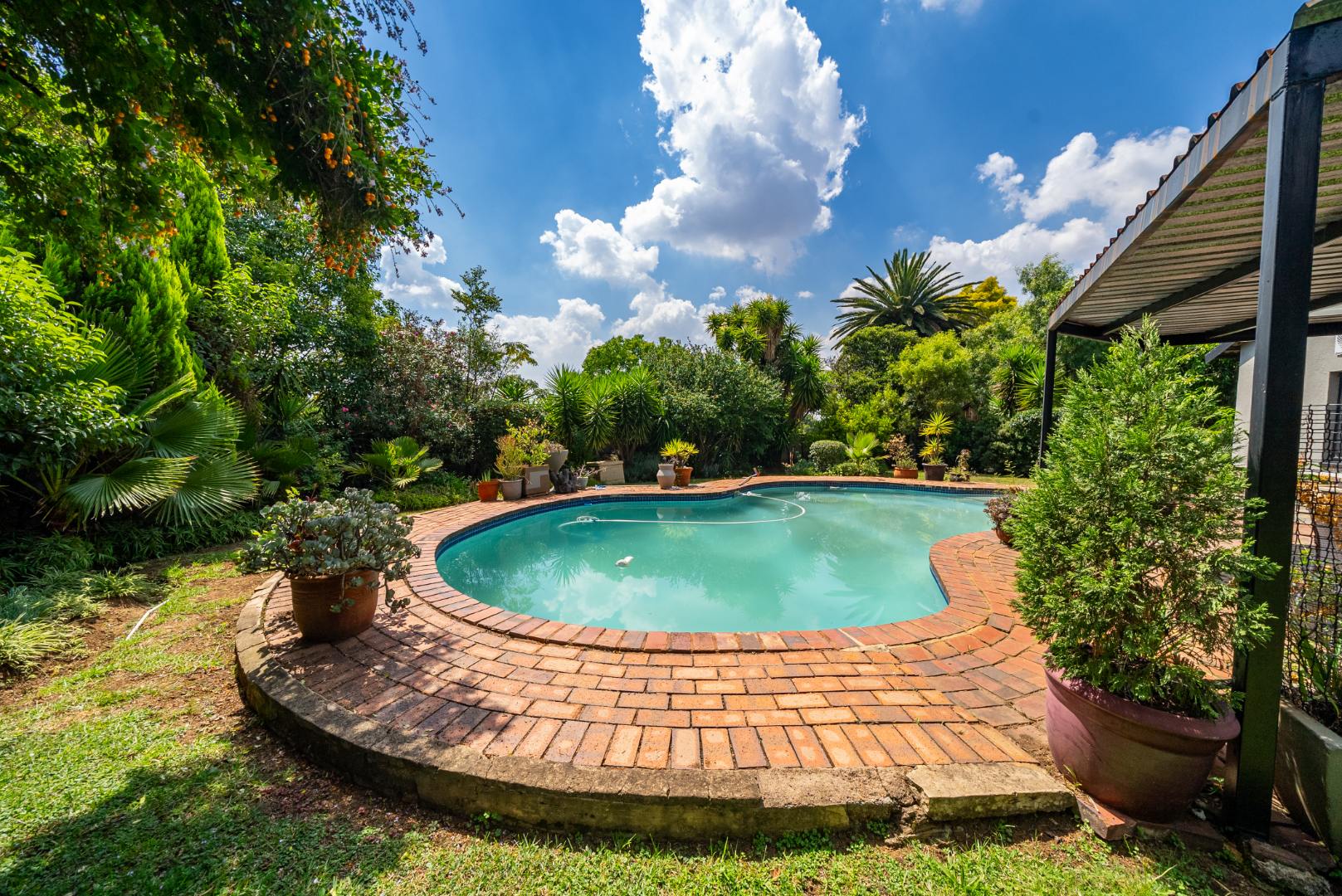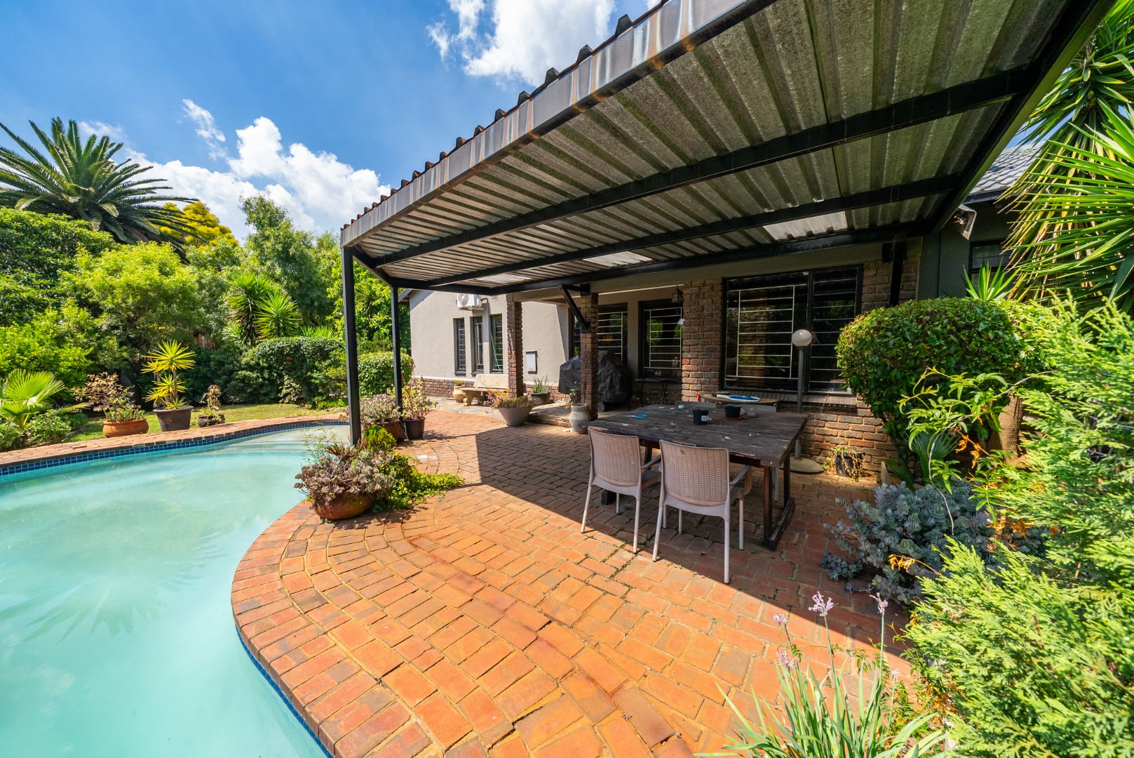 Step outside and you’re welcomed by an inviting entertainment area that overlooks the well-manicured wrap-around garden, creating a serene and private outdoor setting for gatherings or quiet afternoons. Completing this incredible offering are two garages and three carports, ensuring ample parking for family and guests alike.