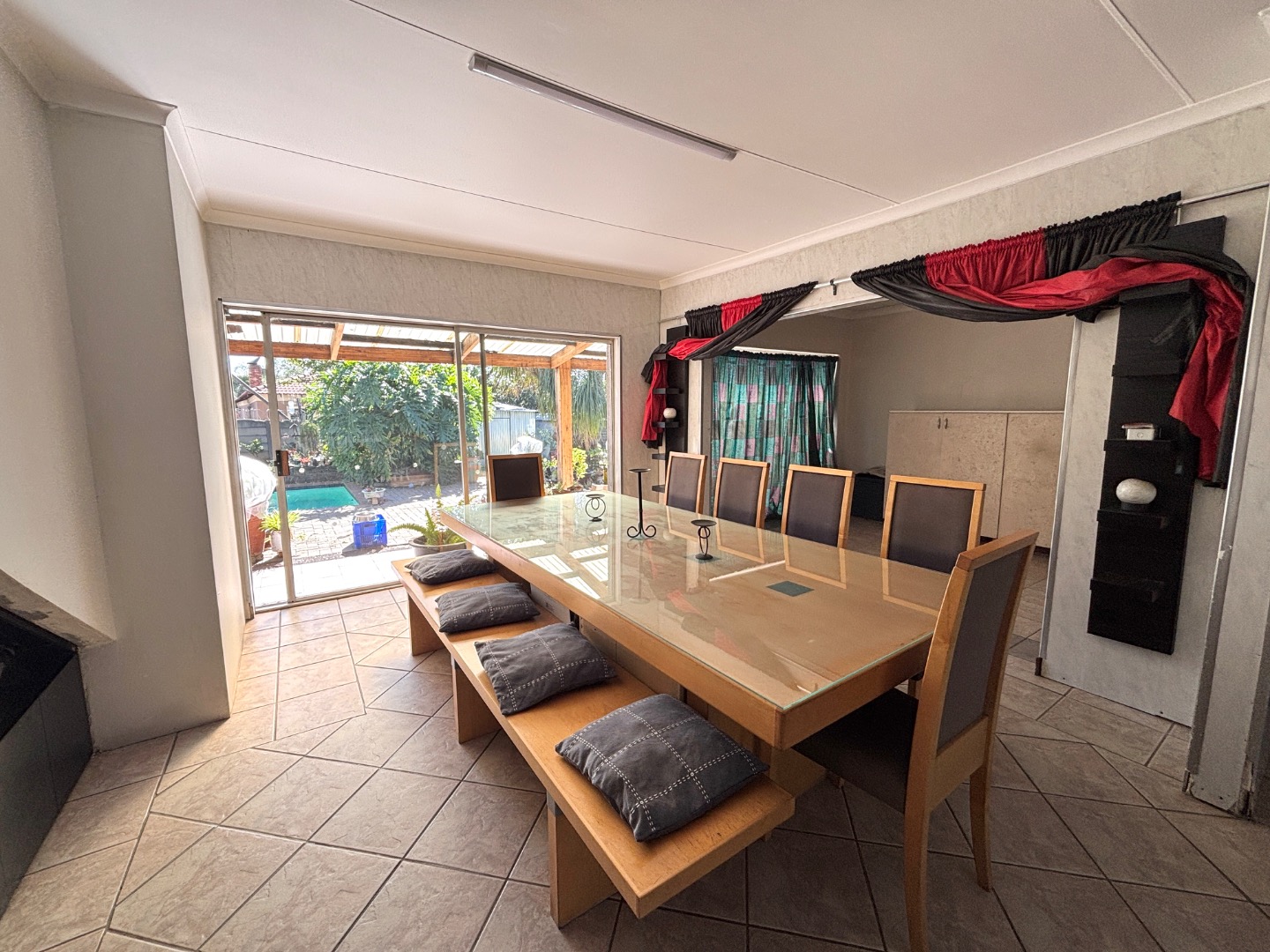 The heart of the home is a fully fitted kitchen featuring built in cupboards and quality appliances, large sliding doors fill the living space with natural; sunlight and open out to a covered patio equipped with built-in gas braai, perfect for entertaining while overlooking the sparkling pool and landscaped garden.