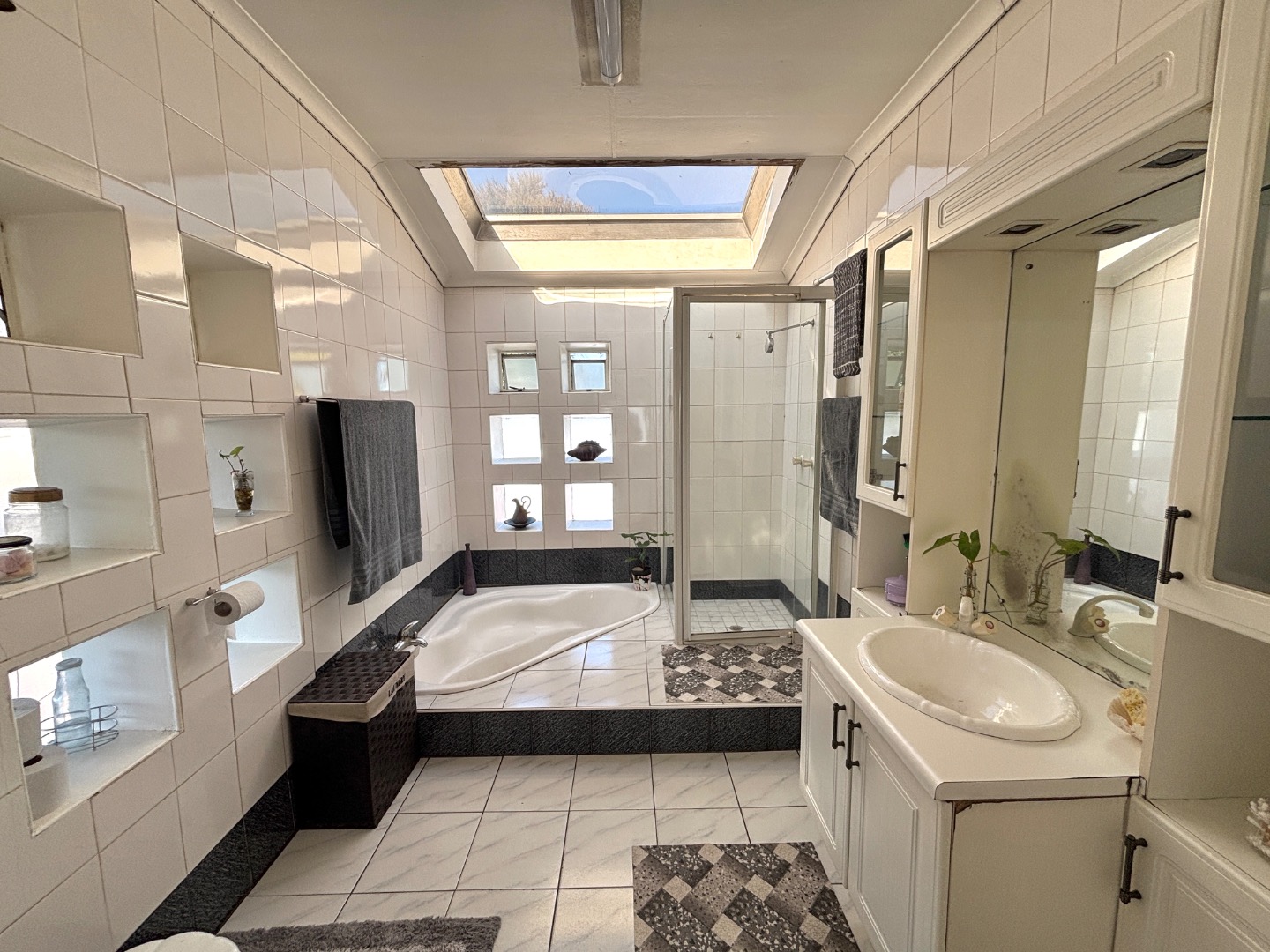 The main bedroom boasts ample space with a walk-through closet leading to a luxurious en-suite bathroom featuring a sunken corner bathtub. The home also offers a full guest bathroom for convenience. Upstairs, you'll find two additional bedrooms, a full bathroom and a fully equipped kitchen and lounge. This section can be seamlessly reintegrated into the main house or used as a self-contained flatlet- ideal for extended family or rental income.