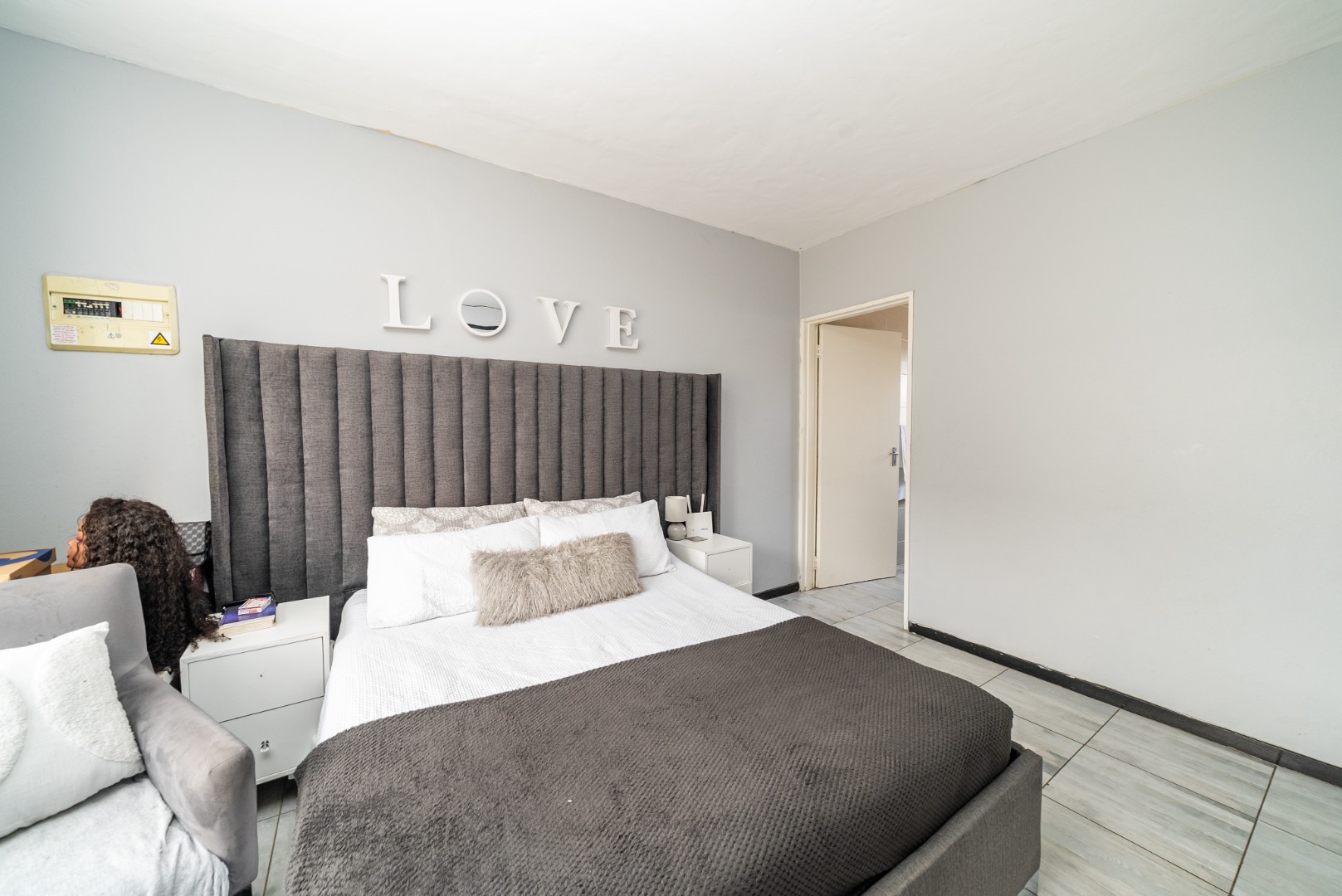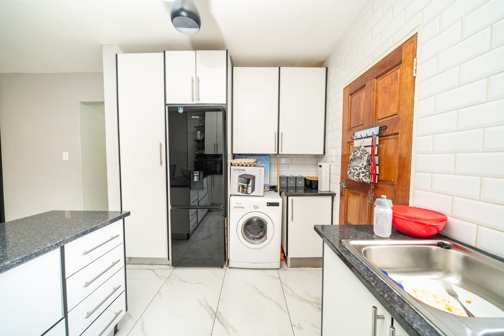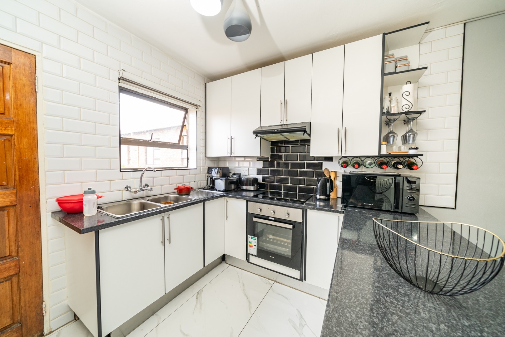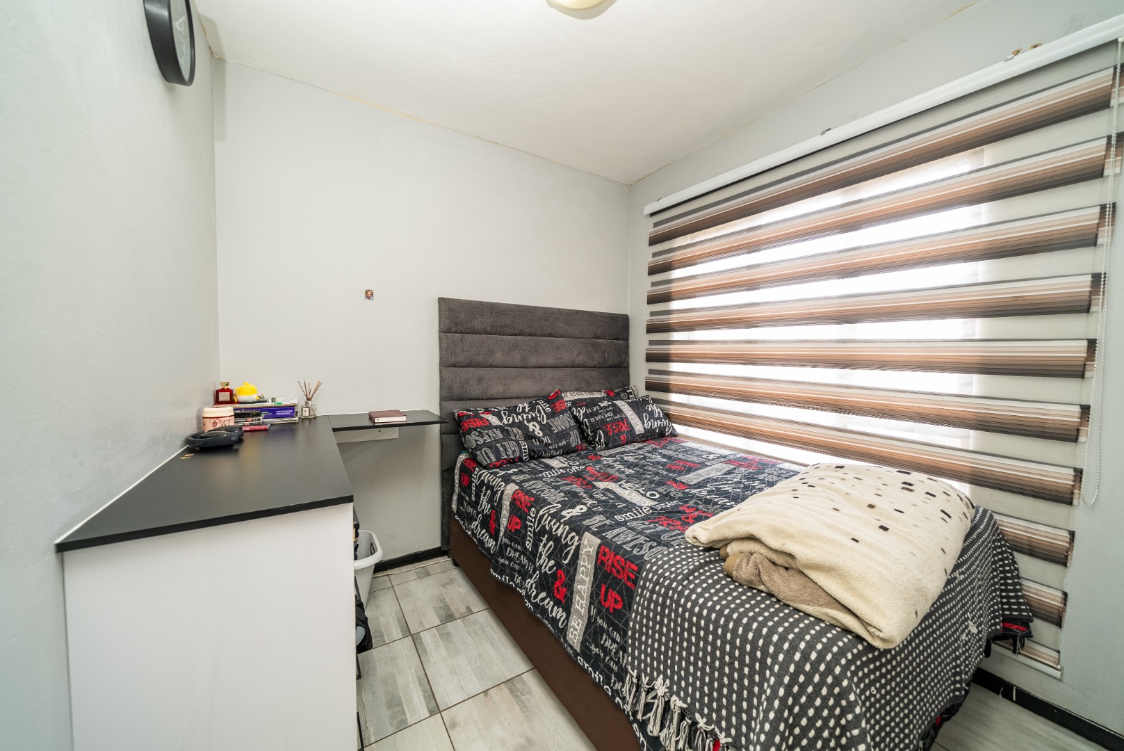 Discover contemporary living in this inviting 77 sqm residential sale property. The open-plan layout seamlessly integrates the lounge, dining area, and a stylish kitchen, creating a spacious and bright environment. Adorned with sleek white tiled flooring and light grey walls, the modern kitchen features white cabinetry, black countertops, a subway tile backsplash, and elegant pendant lighting. A contemporary TV feature wall and large sliding doors, equipped with security gates, enhance the living space, allowing for abundant natural light and easy access to the outdoors. This home offers three well-proportioned bedrooms and two modern bathrooms, including a private en-suite, plus a convenient guest toilet. Step outside to a private covered patio, perfect for outdoor enjoyment. The property features durable brick construction, brick-paved driveways, and dedicated covered parking for two vehicles, ensuring practicality and ease of access. The neat and uniform brick exterior with modern dark-framed windows contributes to its appealing kerb side presence. Situated within a secure estate and gated community, this property offers peace of mind with 24-hour security, an access gate, security post, electric fencing, and an intercom system. Further enhancing security, the sliding doors are fitted with security gates. Fibre connectivity is available, catering to modern communication needs. Located in a cul-de-sac within the estate, it offers a tranquil setting away from through traffic. Key Features: * 3 Bedrooms, 2 Bathrooms (1 en-suite) * Open-plan living, dining, and modern kitchen * 77 sqm floor size * Covered patio with sliding security doors * Dedicated covered parking for 2 vehicles * Secure estate with 24-hour security and electric fencing * Fibre ready * Brick exterior with paved driveway
