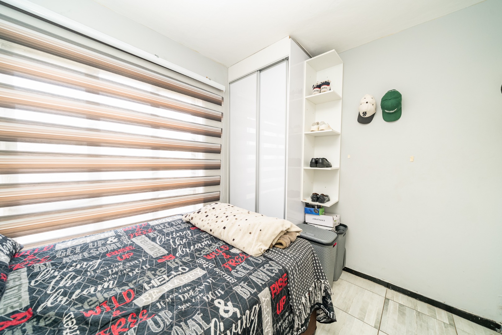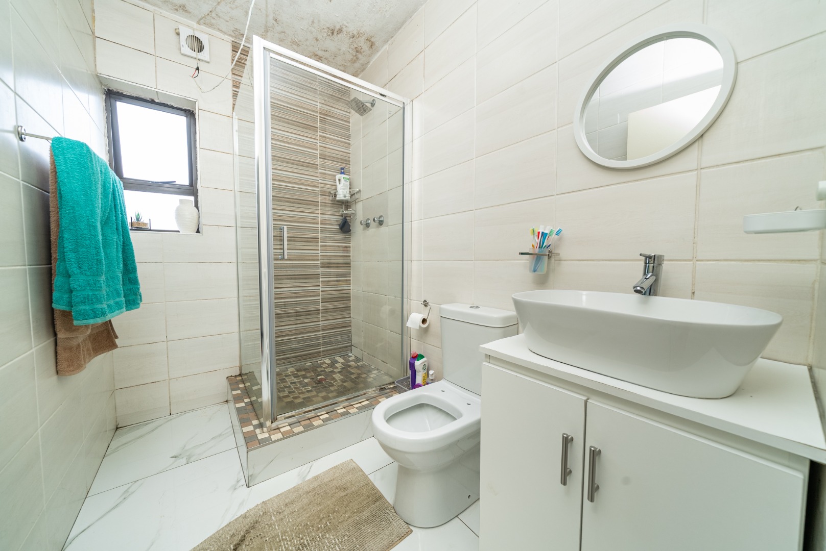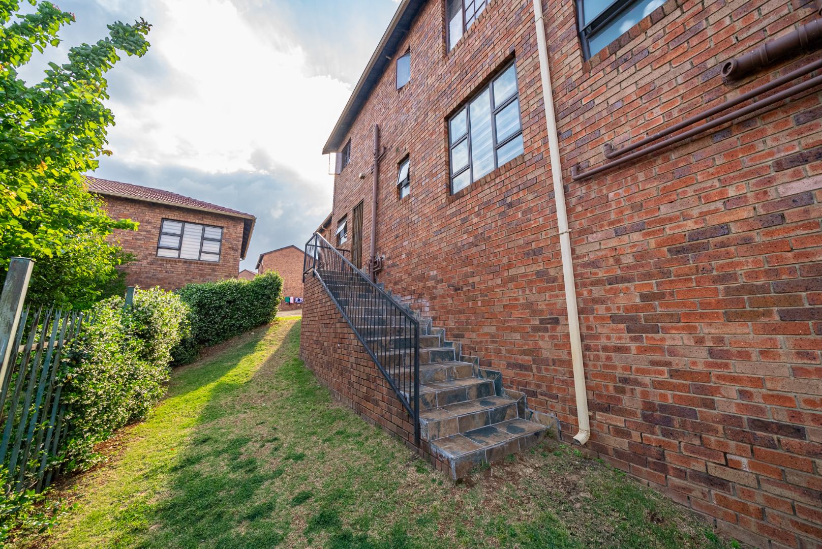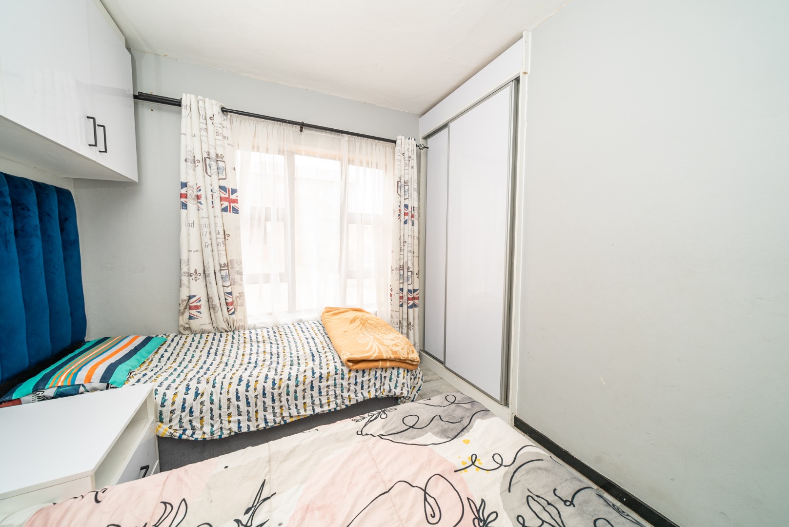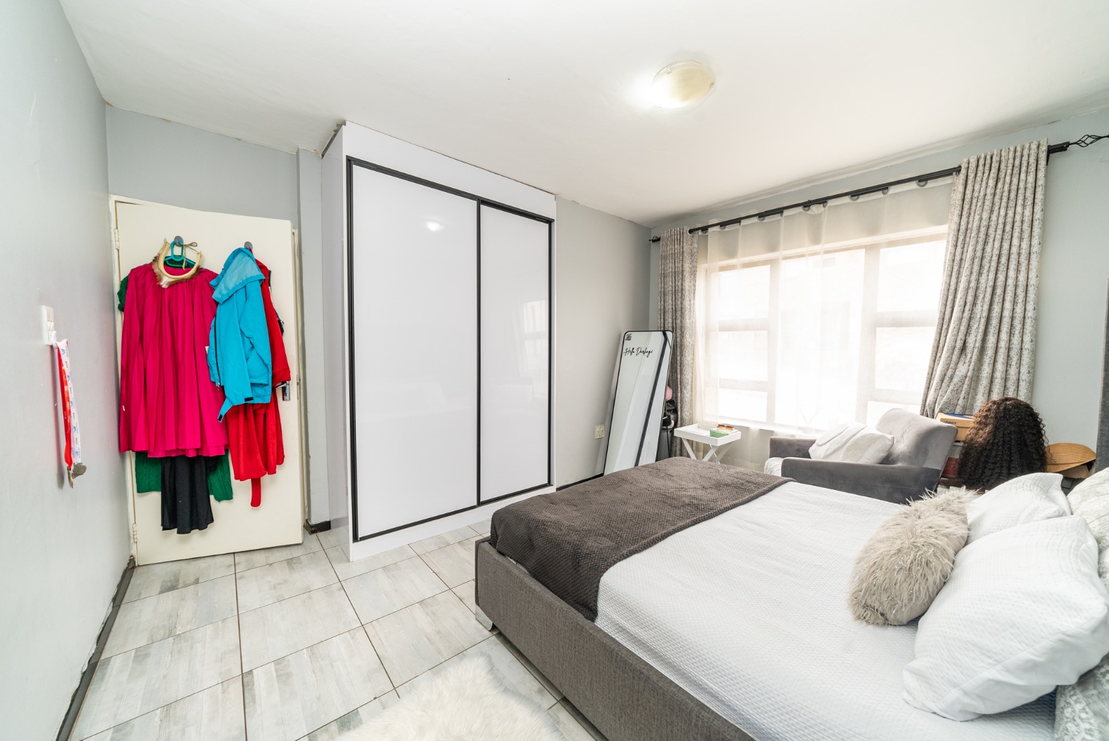 Discover contemporary living in this inviting 77 sqm residential sale property. The open-plan layout seamlessly integrates the lounge, dining area, and a stylish kitchen, creating a spacious and bright environment. Adorned with sleek white tiled flooring and light grey walls, the modern kitchen features white cabinetry, black countertops, a subway tile backsplash, and elegant pendant lighting. A contemporary TV feature wall and large sliding doors, equipped with security gates, enhance the living space, allowing for abundant natural light and easy access to the outdoors. This home offers three well-proportioned bedrooms and two modern bathrooms, including a private en-suite, plus a convenient guest toilet. Step outside to a private covered patio, perfect for outdoor enjoyment. The property features durable brick construction, brick-paved driveways, and dedicated covered parking for two vehicles, ensuring practicality and ease of access. The neat and uniform brick exterior with modern dark-framed windows contributes to its appealing kerb side presence. Situated within a secure estate and gated community, this property offers peace of mind with 24-hour security, an access gate, security post, electric fencing, and an intercom system. Further enhancing security, the sliding doors are fitted with security gates. Fibre connectivity is available, catering to modern communication needs. Located in a cul-de-sac within the estate, it offers a tranquil setting away from through traffic. Key Features: * 3 Bedrooms, 2 Bathrooms (1 en-suite) * Open-plan living, dining, and modern kitchen * 77 sqm floor size * Covered patio with sliding security doors * Dedicated covered parking for 2 vehicles * Secure estate with 24-hour security and electric fencing * Fibre ready * Brick exterior with paved driveway