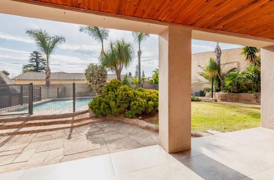 Nestled in the established suburban area of Verwoerdpark, Alberton, this inviting family home offers a blend of comfort and convenience, ideal for modern living. Step inside to discover bright, open-plan living and dining areas, designed for seamless flow and abundant natural light. The modern interiors feature neutral colour palettes, tiled flooring, and stylish pendant lighting, creating an inviting atmosphere. Multiple spacious lounges provide versatile relaxation zones, including one with a distinctive built-in wooden bar, perfect for entertaining guests. The well-appointed kitchen is ready to cater to all culinary needs. This residence boasts three comfortable bedrooms and three well-appointed bathrooms, ensuring ample space and privacy for the entire family. Each room offers a tranquil retreat, complemented by the home's overall modern aesthetic. The outdoor spaces are a true highlight, featuring a large, inviting swimming pool set within an established tropical-style garden. An impressive thatched lapa provides a dedicated entertainment area, ideal for gatherings and relaxation. Enjoy the convenience of a patio and a double garage, complemented by a paved driveway, offering ample parking and outdoor enjoyment. Security is well-addressed with a totally walled perimeter and security gates, providing peace of mind for residents. With its appealing frontage, established garden, and versatile structures, this property presents a welcoming first impression. Key Features: * 3 Bedrooms, 3 Bathrooms * Spacious Open-Plan Living Areas * Large Swimming Pool & Thatched Lapa * Built-in Wooden Bar * Double Garage & Paved Driveway * Established Tropical Garden * Patio for Outdoor Enjoyment * Totally Walled with Security Gate