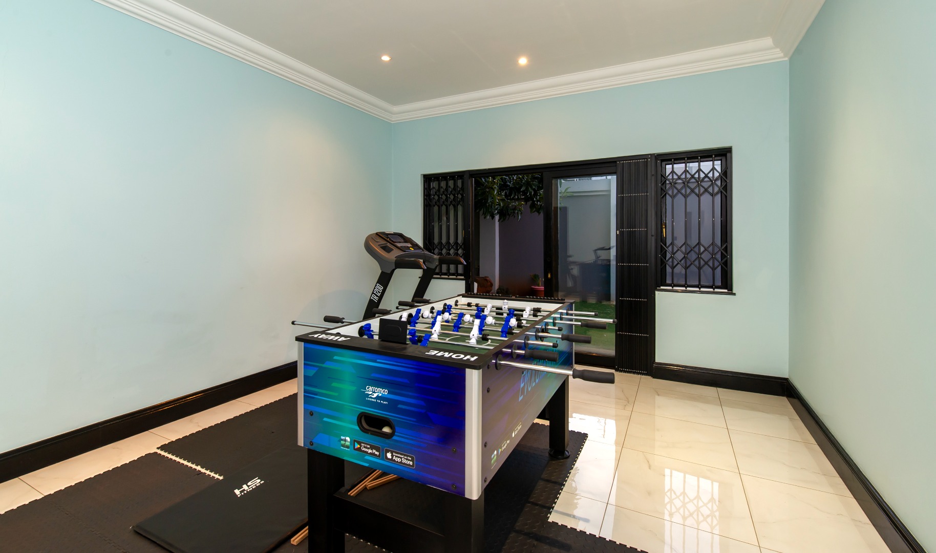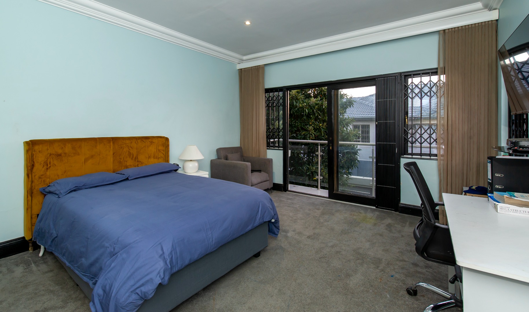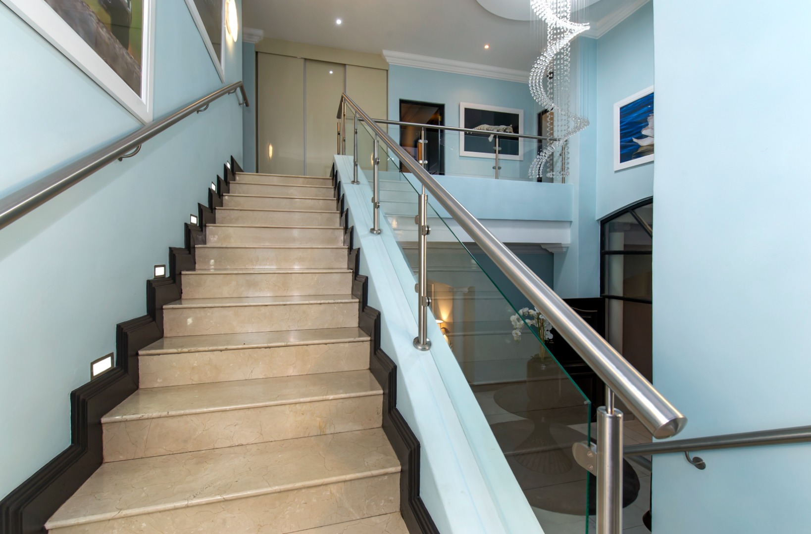 This smart home is equipped for contemporary living, with energy-efficient features including a full solar-powered inverter system. Additional amenities include three automated garages, full staff accommodation, and abundant secure visitor parking.