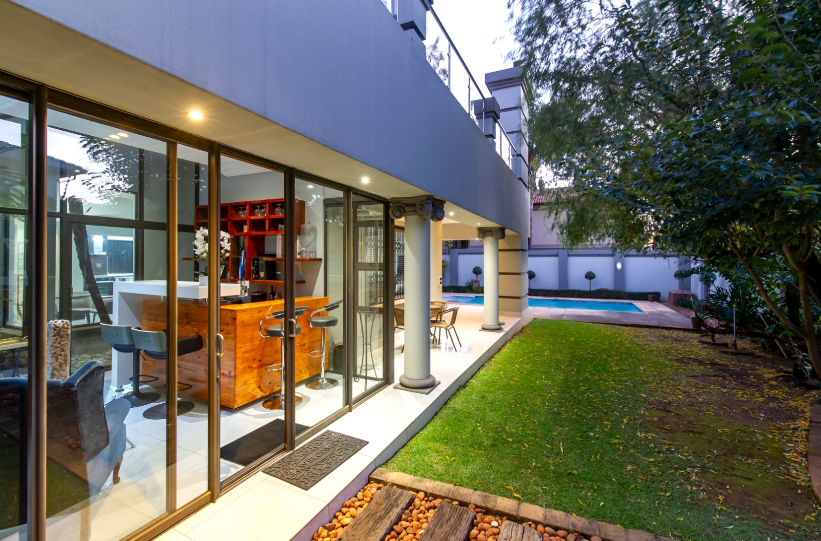 Nestled within one of Bedfordview’s most prestigious gated enclaves, this exquisitely renovated five-bedroom residence redefines luxury family living. Thoughtfully designed across two expansive levels, every detail of this home exudes contemporary sophistication and timeless elegance.