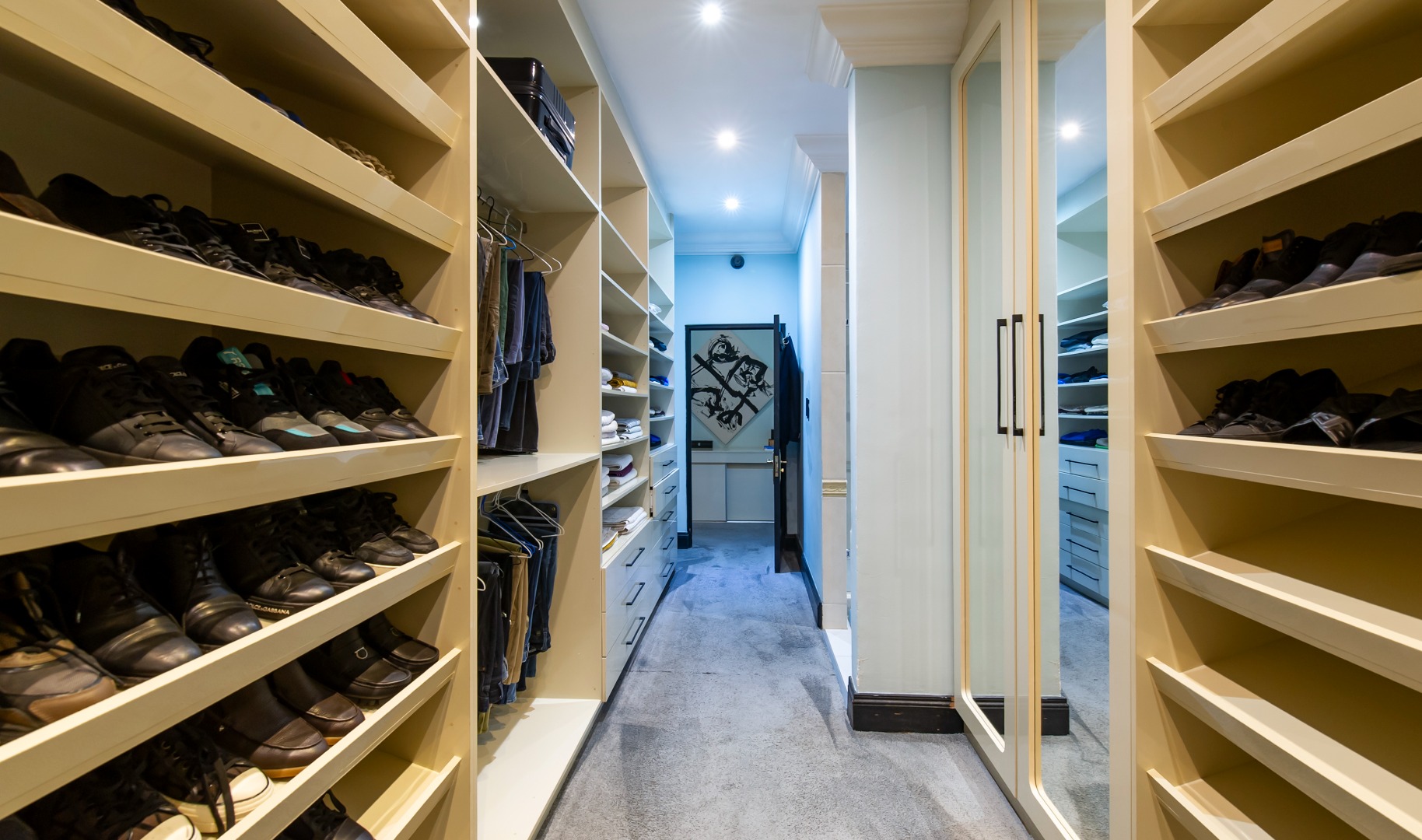 Upstairs, four en-suite bedrooms offer tranquil retreats for the entire family. The primary suite is a showstopper, lavishly proportioned and featuring a Hollywood-style walk-in dressing room and an indulgent, spa-inspired bathroom. The additional bedrooms are equally impressive, offering ample built-in storage, plush new carpeting, and elegant porcelain tiling throughout.