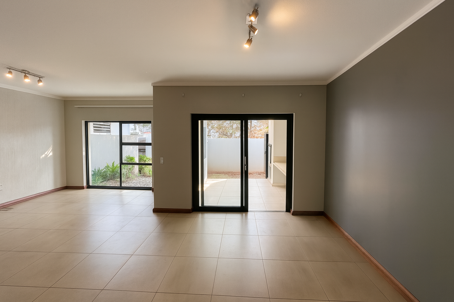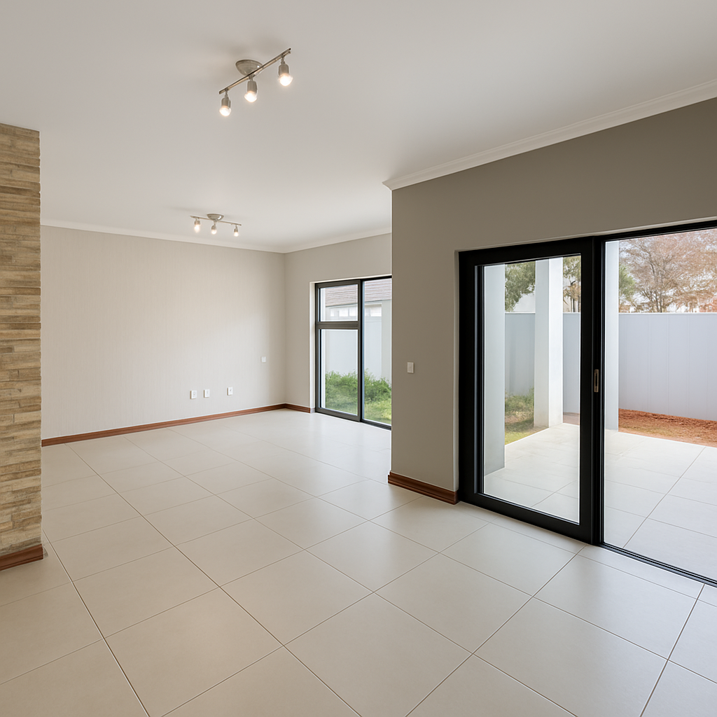 Discover modern living in this contemporary 3-bedroom, 2.5-bathroom residence nestled within a secure estate in Morning Hill, Bedfordview. The property immediately impresses with its sleek architectural design, light grey exterior, and modern finishes throughout. An inviting entrance hall leads into the heart of the home, where an open-plan layout seamlessly connects the living spaces.