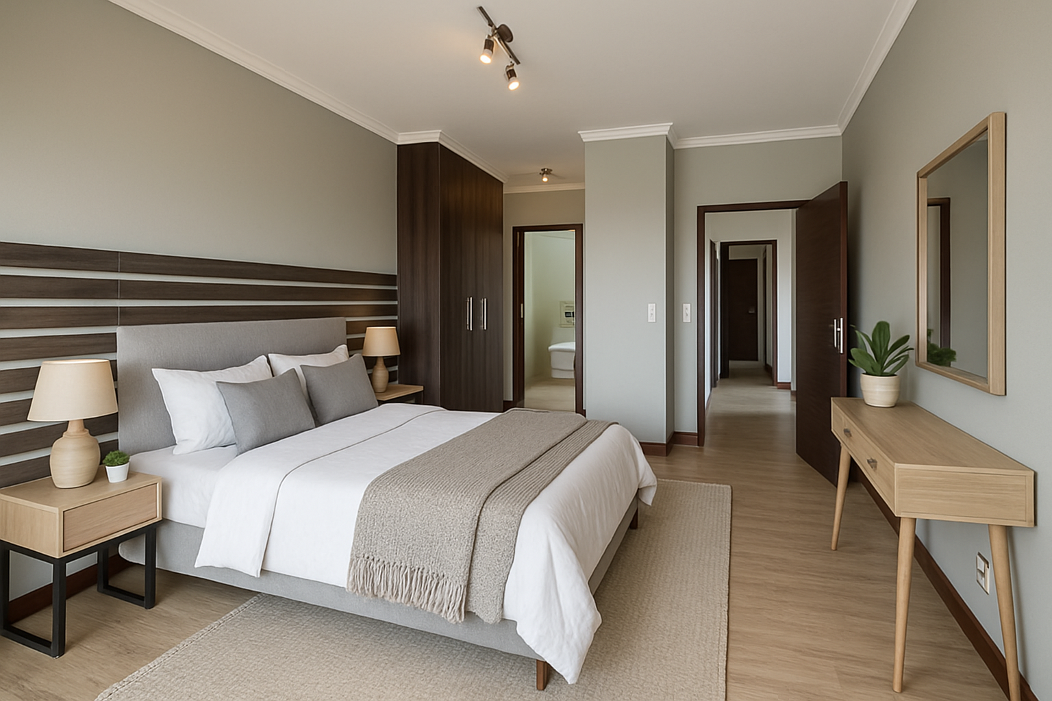 Discover modern living in this contemporary 3-bedroom, 2.5-bathroom residence nestled within a secure estate in Morning Hill, Bedfordview. The property immediately impresses with its sleek architectural design, light grey exterior, and modern finishes throughout. An inviting entrance hall leads into the heart of the home, where an open-plan layout seamlessly connects the living spaces.