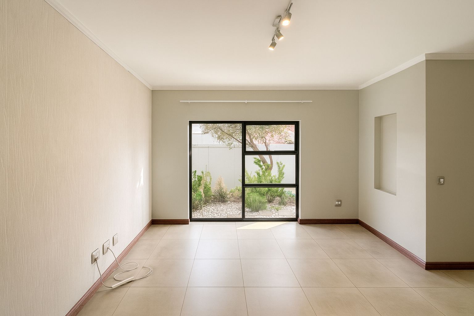 Accommodation includes three well-proportioned bedrooms, with the main bedroom offering a private ensuite bathroom for ultimate comfort. A bright bedroom features hardwood flooring and direct access to a private outdoor area, while a convenient guest toilet serves the main living areas. The property's outdoor features are designed for relaxation and entertainment, including a covered patio with tiled flooring and an integrated built-in braai area, perfect for al fresco dining. This space opens to a private garden, offering a tranquil retreat, and pets are allowed.