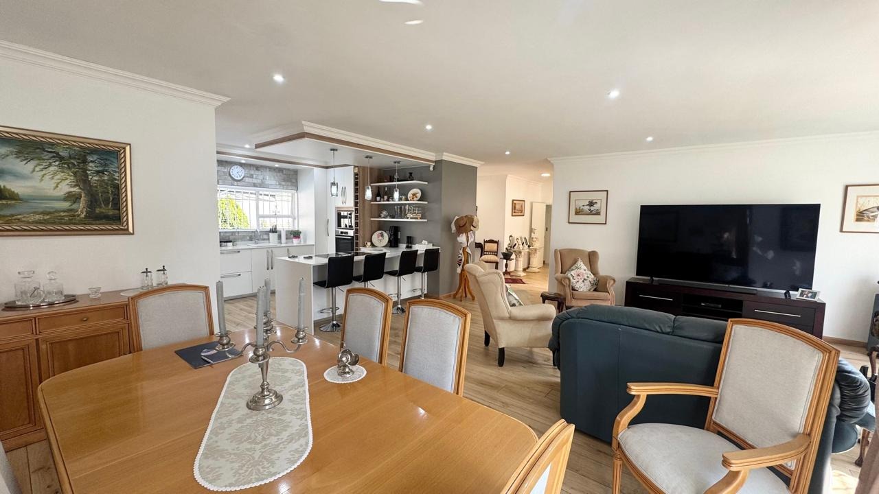 Flooded with natural light, the spacious open-plan layout features a brand-new gourmet kitchen with modern finishes, seamlessly flowing into an elegant dining area and expansive family lounge. These living spaces open onto a central, enclosed and covered patio—perfect for year-round entertaining—overlooking a manicured garden and sparkling pool, surrounded by a lush “Garden of Eden”-style setting.