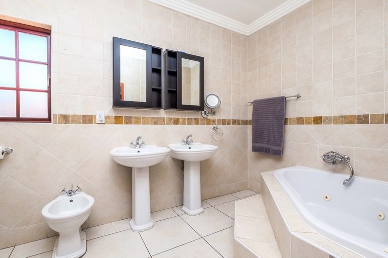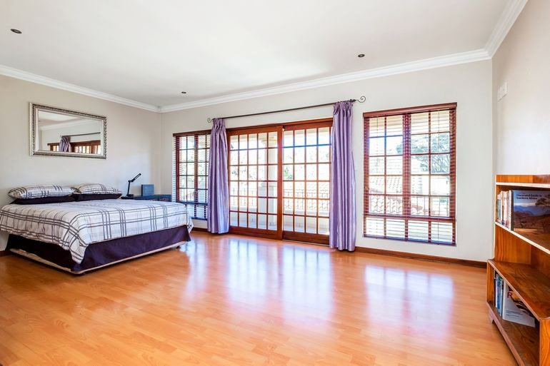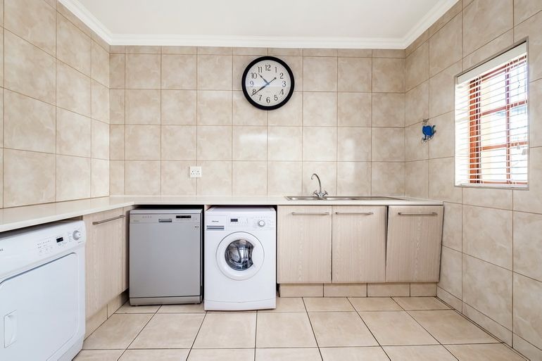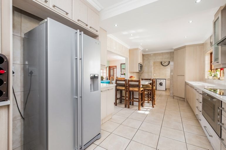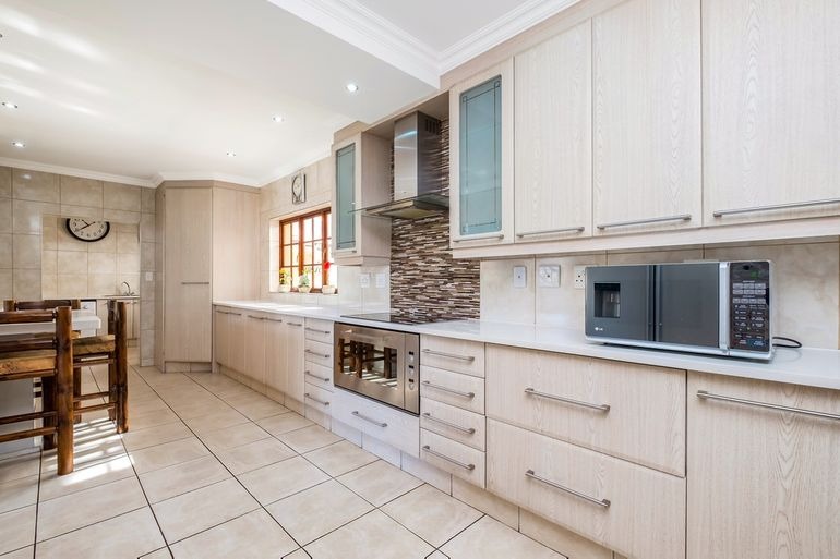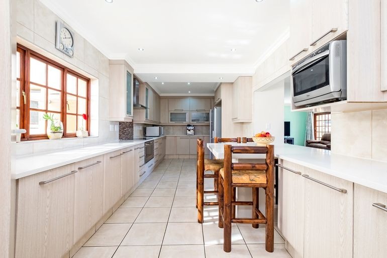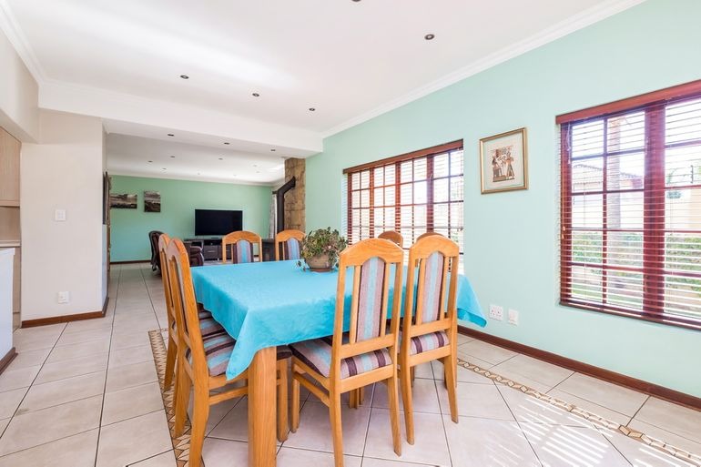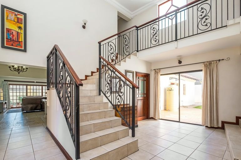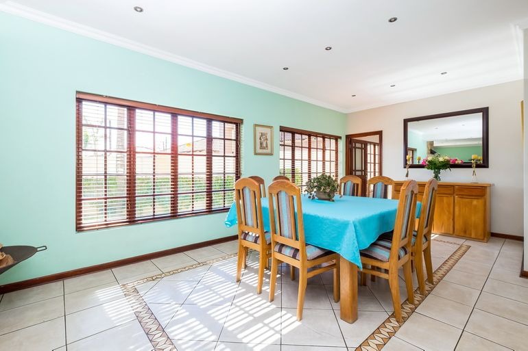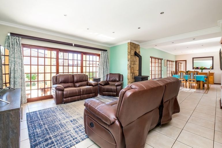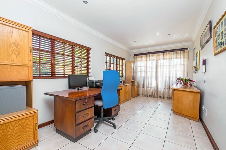 Additional highlights include a dedicated office, four lock-up garages plus extra parking for at least four cars, electric gate and fence, and a safe, quiet neighbourhood. For sustainability and efficiency, the property features a 12kW Deye solar system, providing around 95% independence from Eskom.