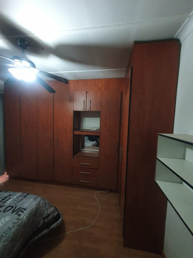 Discover this lovely 1-bedroom, 1-bathroom home nestled in Benoni Central. Step inside to a spacious living area, complete with practical tiled flooring and a ceiling fan to keep things cool. The kitchen is ready for action, featuring essential appliances like a fridge, stove, microwave, and kettle, plus ample cabinet space for all your bits and bobs. Your bedroom is a comfortable retreat with wood-look laminate flooring, a handy built-in wardrobe, and another ceiling fan. You'll also find a functional bathroom with a bathtub and a separate, fully tiled toilet. With two convenient parking spaces, this home offers easy living in a great location.