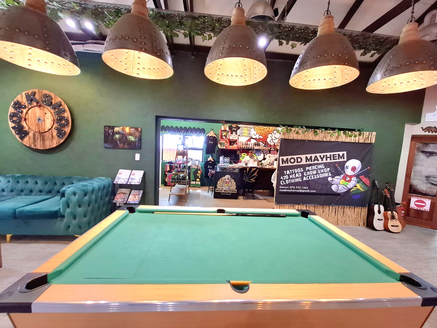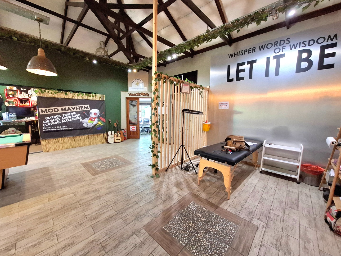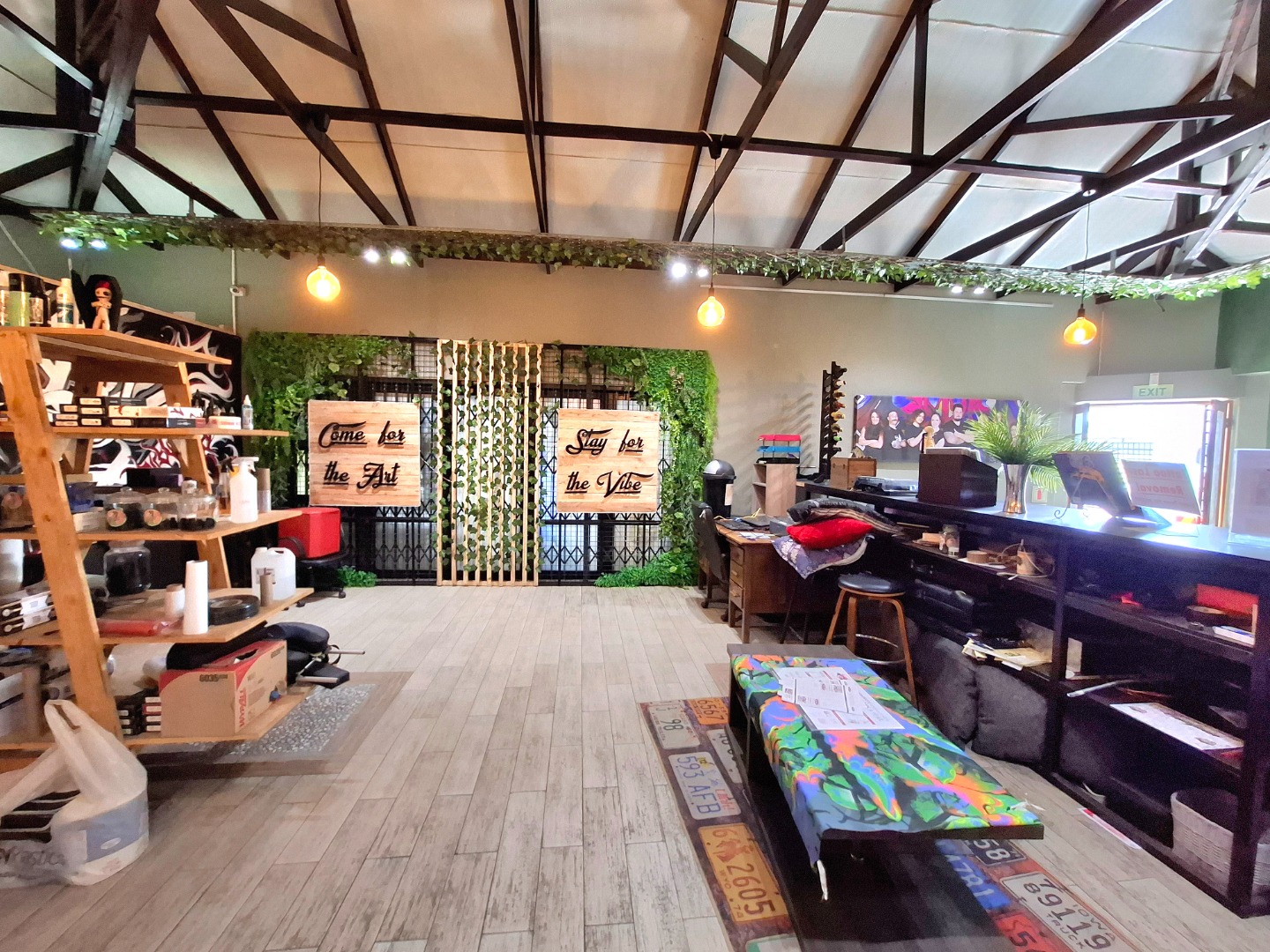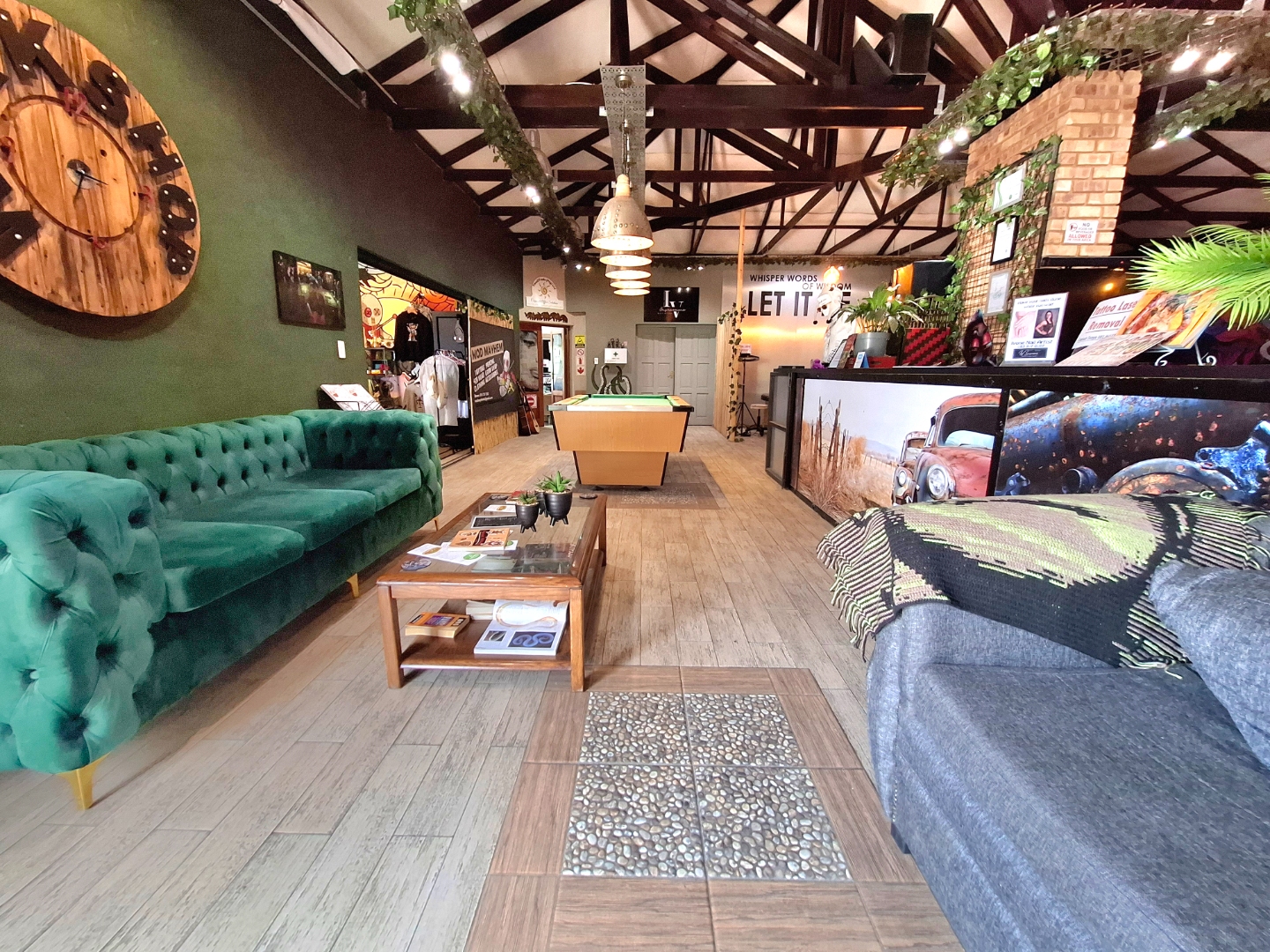 A highlight is the inviting outdoor paved courtyard, complete with shaded seating areas, perfect for customer relaxation. The interior boasts operational features such as a well-equipped kitchen with a traditional brick-built pizza oven, alongside a spacious common area featuring eclectic decor