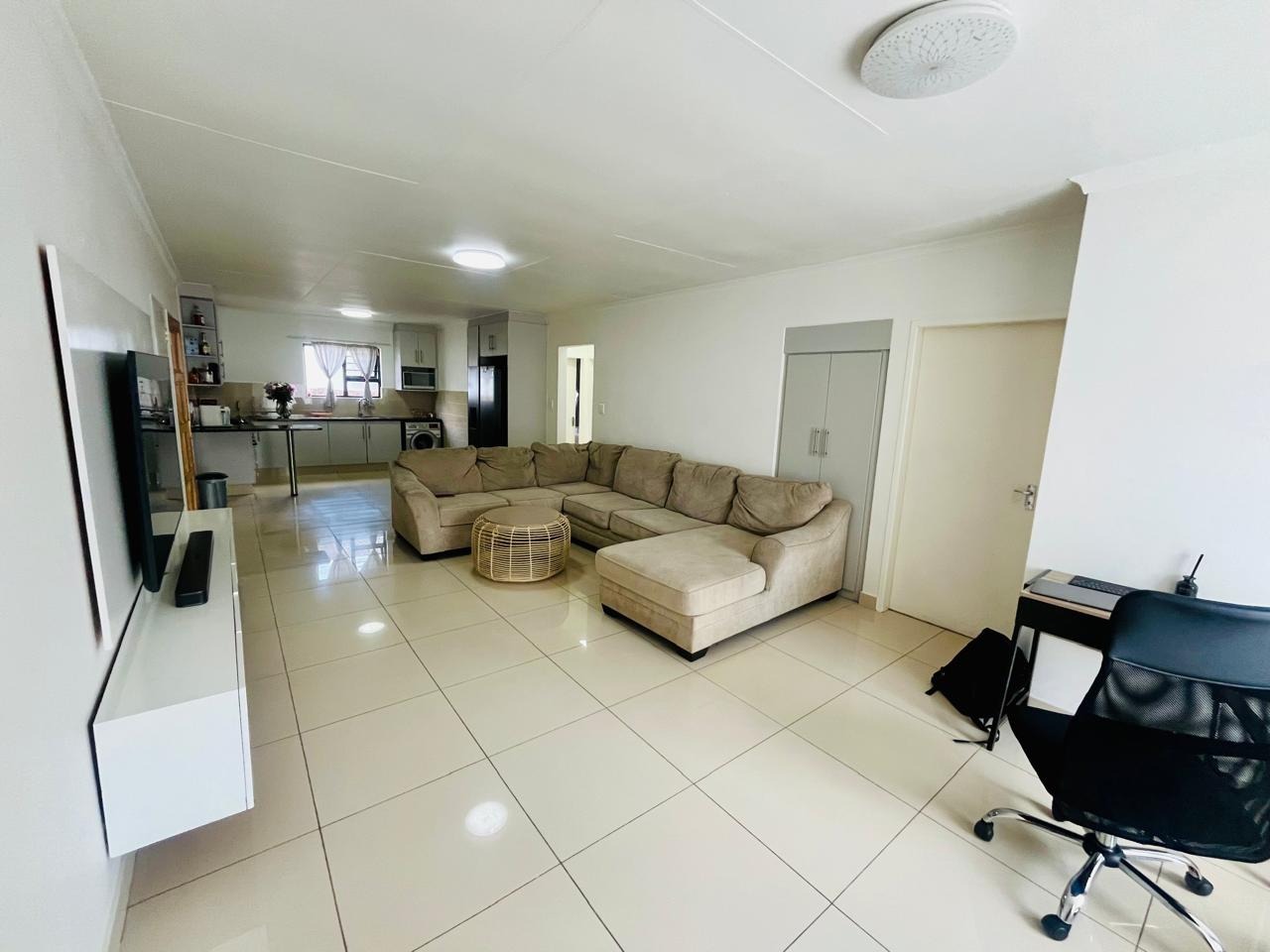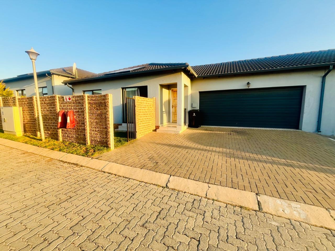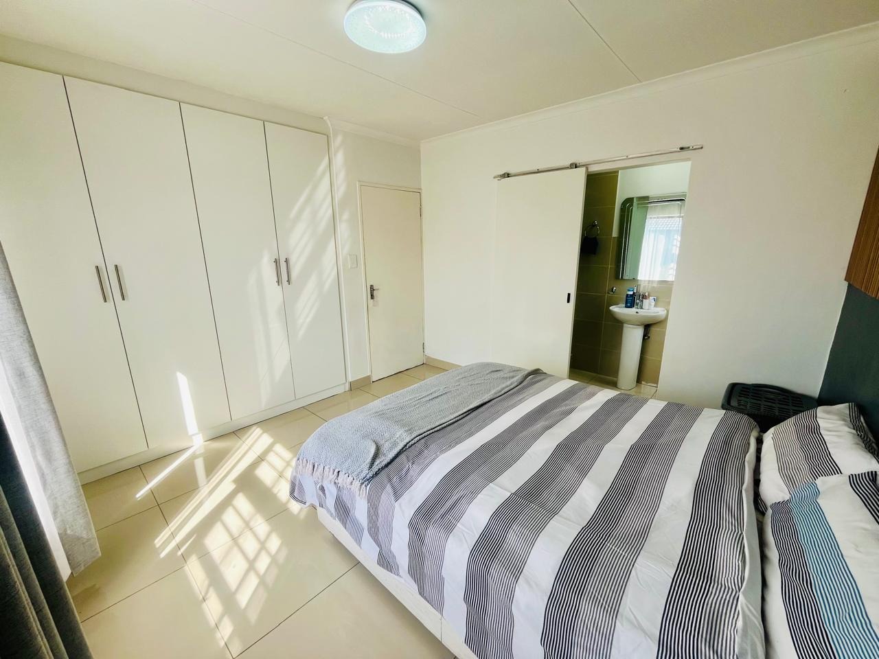 Externally, the property benefits from a private garden, offering a pleasant outdoor space for relaxation and recreation. A double garage provides secure parking and additional storage. Residents will appreciate the inclusion of a solar geyser, contributing to energy efficiency. With 24-hour security and a pet-friendly policy, this home combines comfort with essential modern amenities.