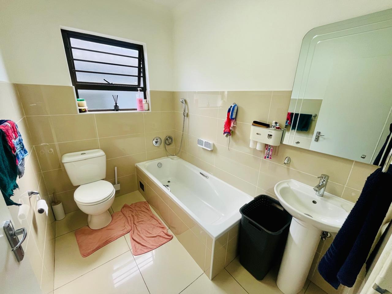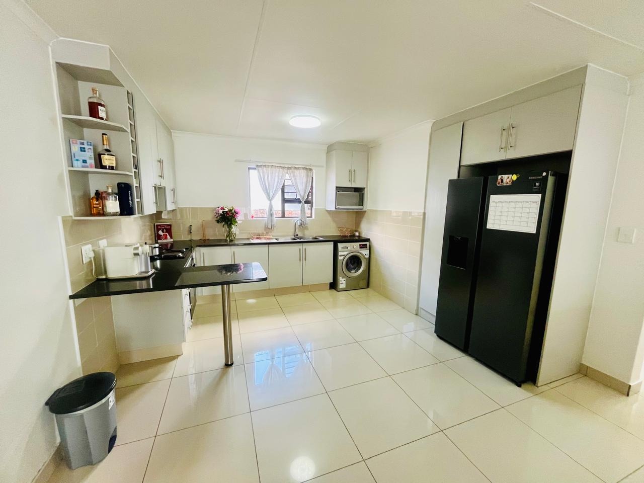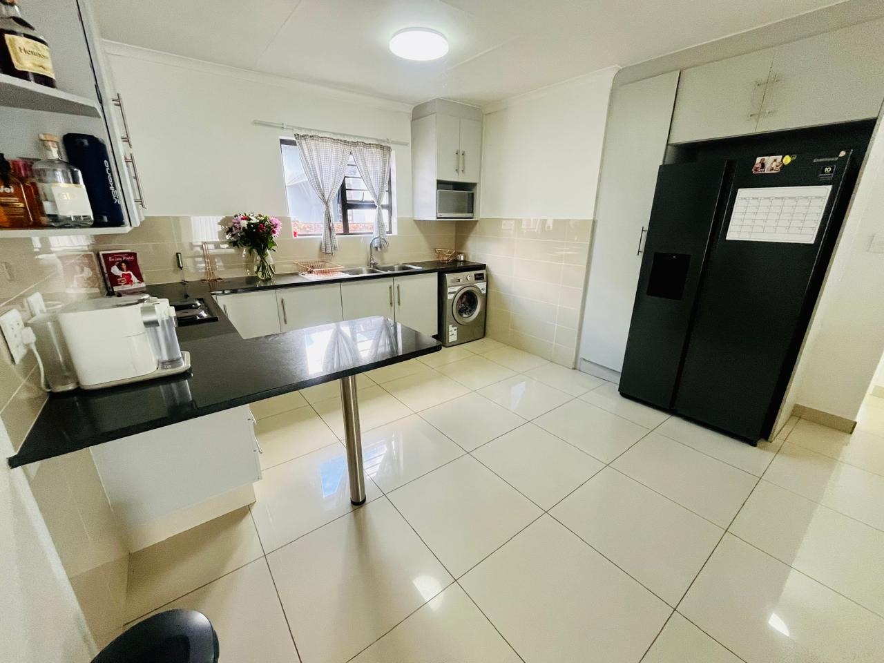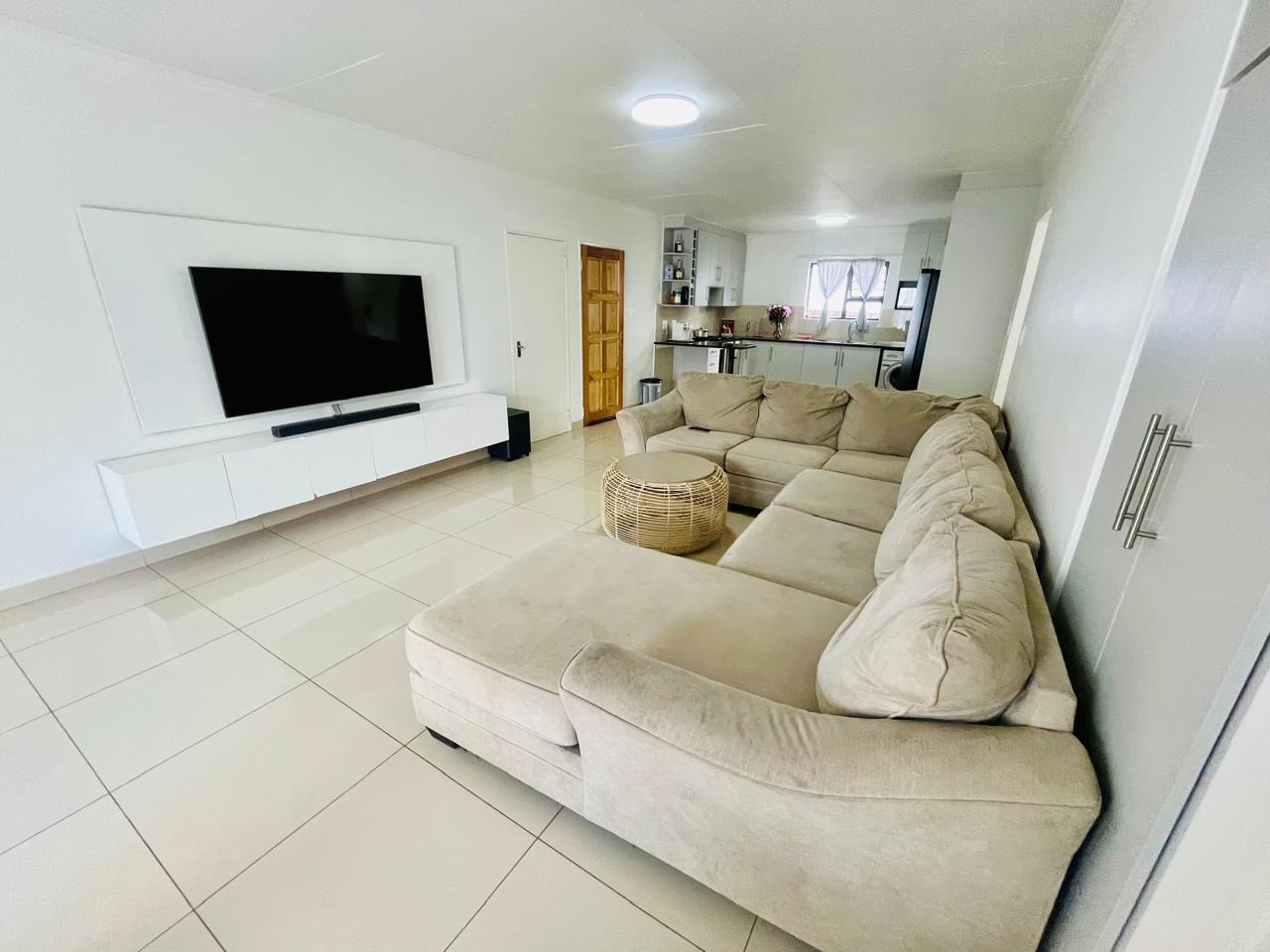 Externally, the property benefits from a private garden, offering a pleasant outdoor space for relaxation and recreation. A double garage provides secure parking and additional storage. Residents will appreciate the inclusion of a solar geyser, contributing to energy efficiency. With 24-hour security and a pet-friendly policy, this home combines comfort with essential modern amenities.