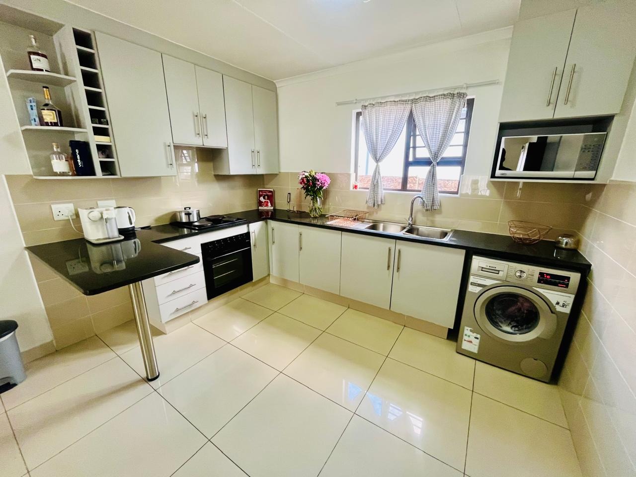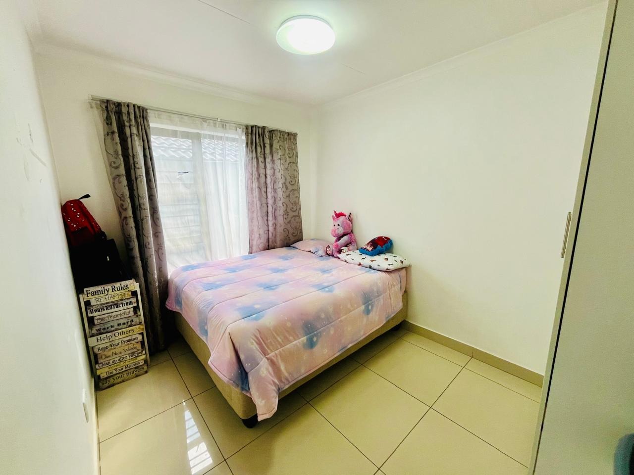 Externally, the property benefits from a private garden, offering a pleasant outdoor space for relaxation and recreation. A double garage provides secure parking and additional storage. Residents will appreciate the inclusion of a solar geyser, contributing to energy efficiency. With 24-hour security and a pet-friendly policy, this home combines comfort with essential modern amenities.