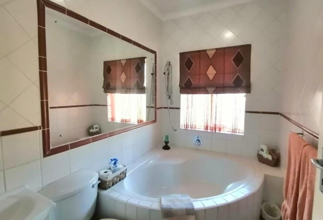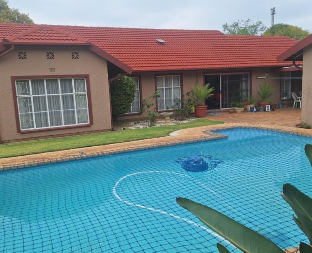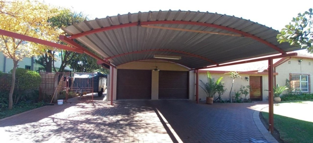 Step outside to your private oasis! The expansive outdoor area features a lovely paved patio, a well-kept lawn, and a refreshing swimming pool – perfect for sunny South African days. There's also a separate outbuilding, ideal for staff quarters, and outside toilets. Parking is sorted with a covered carport and a double garage with roll-up doors, plus a separate security gate. Pets are welcome here too!