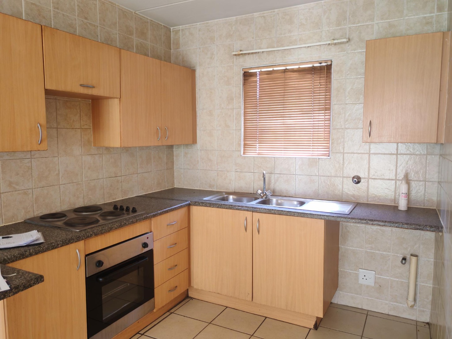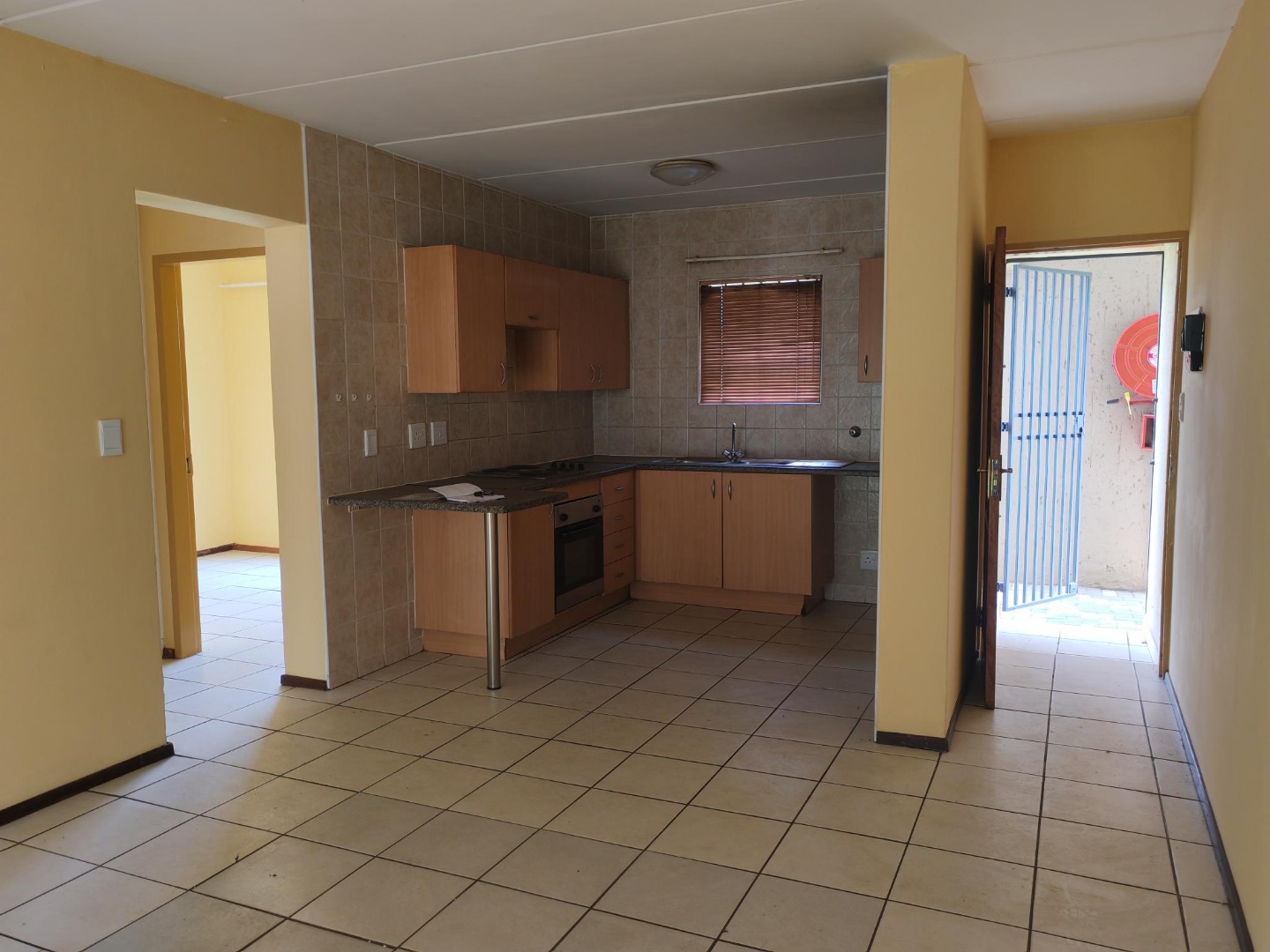 Step into this lovely 2-bedroom apartment in Parkrand, Boksburg, where comfort meets convenience. The exterior of the modern, multi-story building immediately gives a good impression with its well-maintained green lawns, setting a welcoming tone for residents and visitors alike. It’s a neat and tidy complex that feels just right. Inside, you'll find a super inviting open-plan living area and kitchen, designed for easy, relaxed living. Natural light floods the space through large windows and sliding doors, creating a bright and airy atmosphere. The entire apartment boasts durable tiled flooring, which is not only practical but also keeps things cool and easy to clean. The kitchen is a real gem, featuring modern light wood cabinetry, a tiled backsplash, and an integrated oven and hob – perfect for whipping up your favourite meals. With a double sink and ample counter space, plus a window for fresh air, cooking here will be a breeze. This cozy home offers two comfortable bedrooms, each continuing the theme of easy-to-maintain tiled floors and bright, neutral walls, ready for your personal touch. The single bathroom is conveniently located and perfectly functional for everyday use, ensuring a hassle-free routine. One of the best perks of this ground-floor unit is the direct access to your very own private outdoor space. Imagine starting your day with a cup of coffee in your garden or unwinding after work in the fresh air. For your peace of mind, security gates are fitted on the sliding doors and burglar bars on the windows. You'll also appreciate the two dedicated parking bays, making coming and going a cinch. And for those with furry friends, you'll be happy to know that pets are allowed here! This apartment is nestled in Parkrand, Boksburg, a friendly suburb in South Africa that offers a convenient and relaxed lifestyle. It’s a great spot for anyone looking for a comfortable home with practical features and a welcoming community feel. Key Features: * 2 Bedrooms, 1 Bathroom * Open-plan living and kitchen * Modern kitchen with integrated oven/hob * Tiled flooring throughout * Direct garden access * 2 Parking bays * Pet-friendly * Security gates and burglar bars