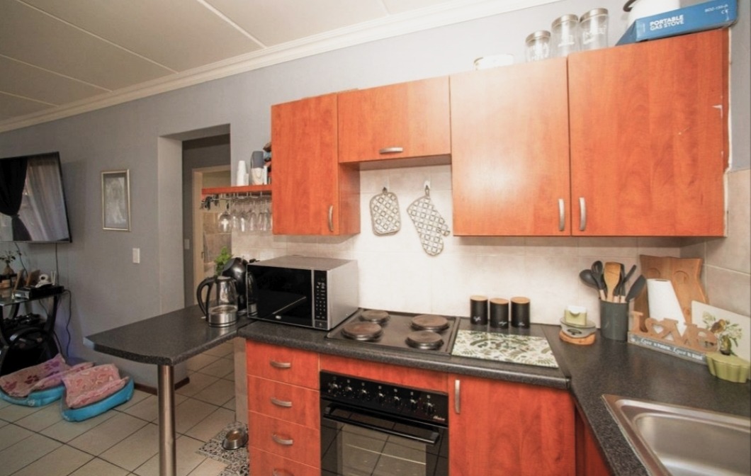 Hey there! Looking for a cozy spot to call your own in Parkrand, Boksburg? This lovely ground-floor unit in a friendly complex might just be what you're after. Step inside and you'll find a welcoming open-plan living area that flows nicely into the kitchen. The living room is super spacious with neutral light grey walls and durable tiled flooring, making it easy to furnish and decorate to your taste. It’s a great spot for chilling out or having friends over. The kitchen is practical and neat, featuring reddish-brown wooden cabinetry, dark granite-look countertops, and an integrated oven and hob – perfect for whipping up your favourite meals. Plus, there's a handy breakfast bar, which is awesome for quick bites or a casual coffee. You'll appreciate the ample storage space for all your kitchen essentials. This home offers two comfy bedrooms, each with built-in wardrobes, so you'll have plenty of space for your clothes and bits and bobs. One bedroom even has a lovely light blue wall colour, adding a touch of calm. The bathroom is well-equipped with both a glass-enclosed shower and a bathtub, giving you options for a quick rinse or a relaxing soak after a long day. Natural light streams into the rooms, making them feel bright and airy. Outside, you get your very own small private garden – a little slice of green heaven where you can enjoy some fresh air. The complex itself offers 24-hour security, giving you peace of mind, and there's even a club house for residents to enjoy. With one dedicated parking spot, convenience is key. Parkrand is a well-established suburb in Boksburg, South Africa, offering a comfortable community feel. This charming unit is a fantastic opportunity for anyone seeking a secure and comfortable home. Come and see for yourself! Key Features: * 2 Bedrooms with built-in wardrobes * 1 Bathroom with shower and bath * Open-plan lounge and kitchen * Functional kitchen with breakfast bar * Private small garden * 1 Parking space * 24-hour security complex * Access to a club house