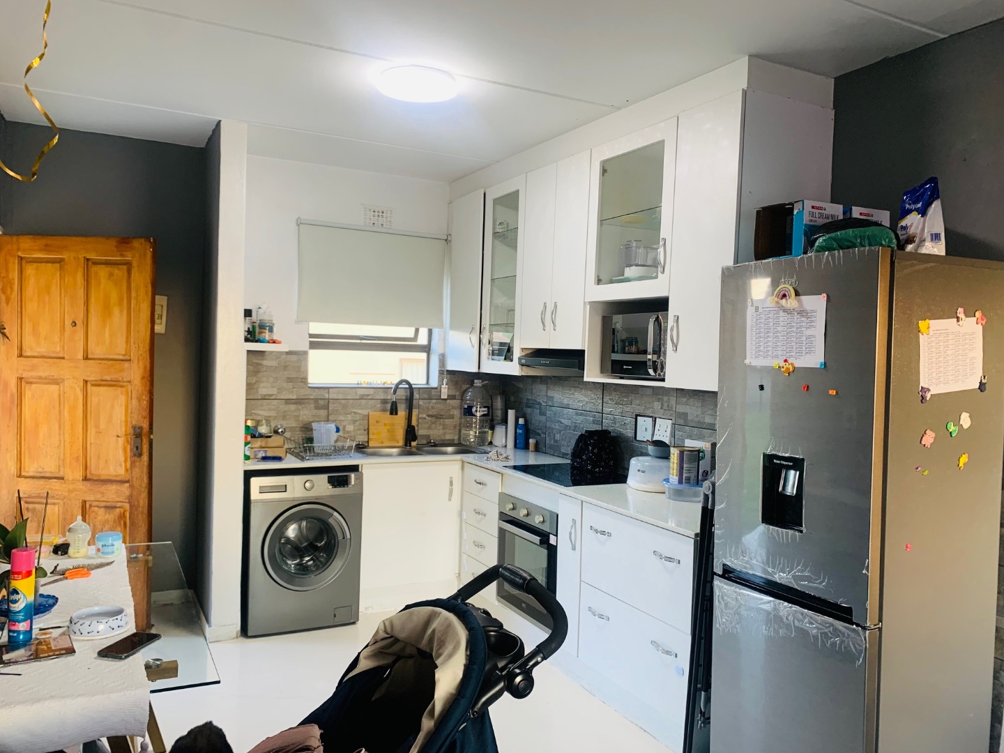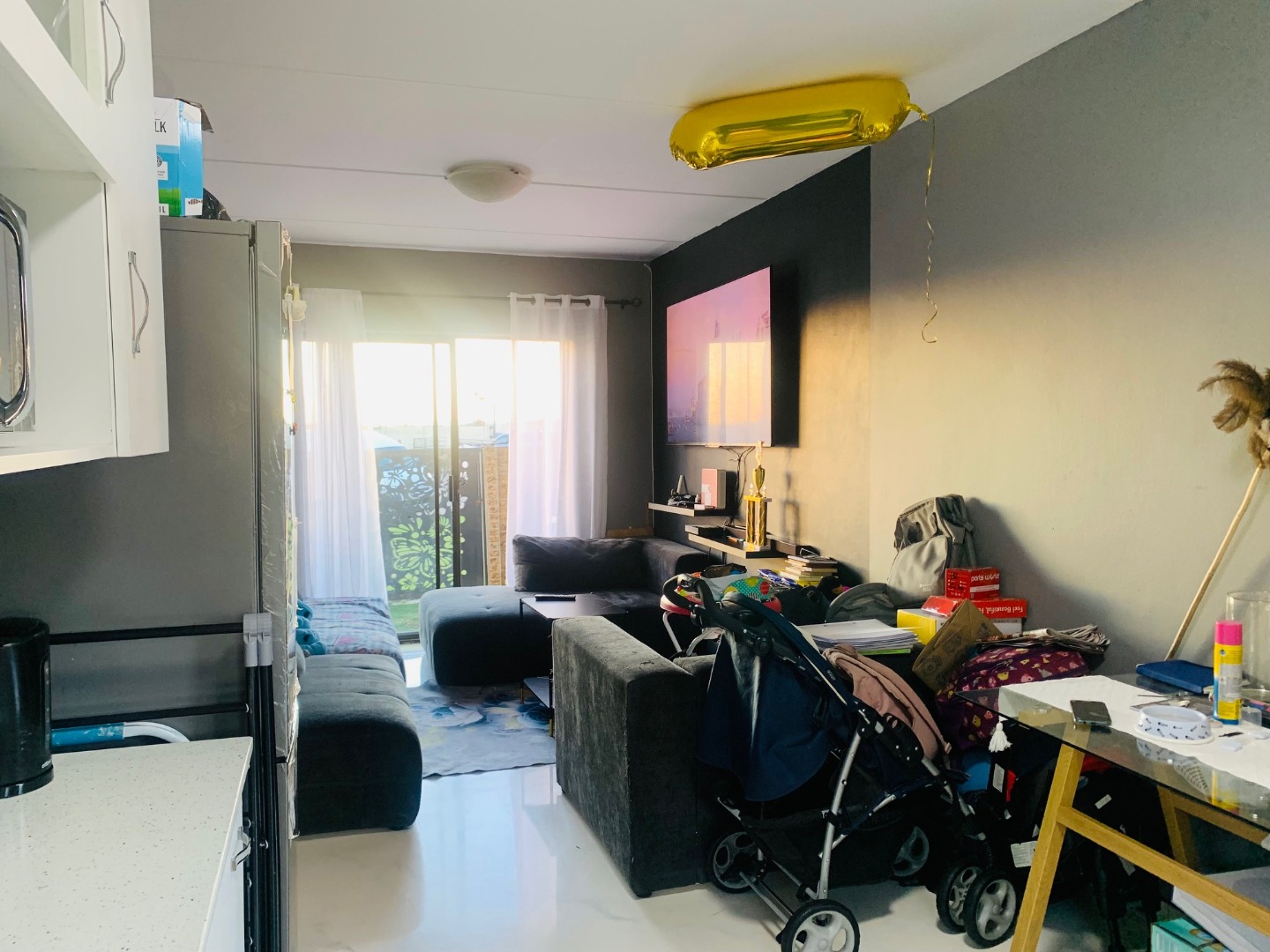 Discover this inviting 2-bedroom, 1-bathroom apartment, offering a comfortable 54 sqm of living space within a secure estate in Parkrand, Boksburg. The property features an open-plan layout, seamlessly connecting the living area with a modern kitchen. The kitchen is efficiently designed with contemporary white cabinetry, light countertops, a stylish dark grey tiled backsplash, and dedicated space for a washing machine. Natural light floods the living spaces, creating a bright and welcoming atmosphere.