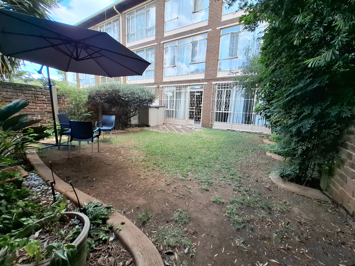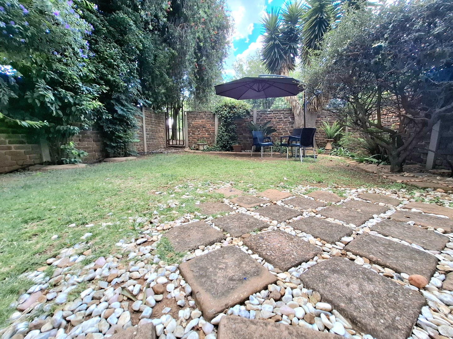 Outside, you'll discover your very own private garden. It's a great space to relax, maybe enjoy a braai on the patio, or just soak up the South African sun. With a dedicated shaded seating area and a charming stepping stone path, it feels like your own little oasis, perfect for unwinding after a long day. Plus, there's a handy outdoor storage shed for all your gardening tools or extra bits and bobs.