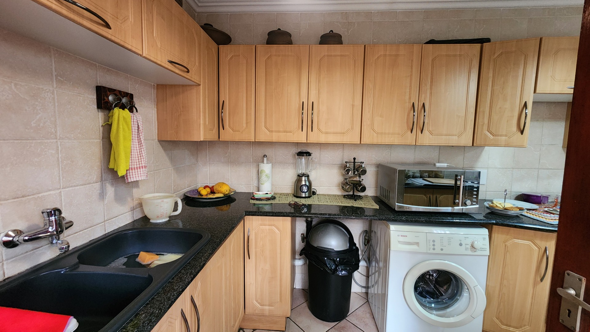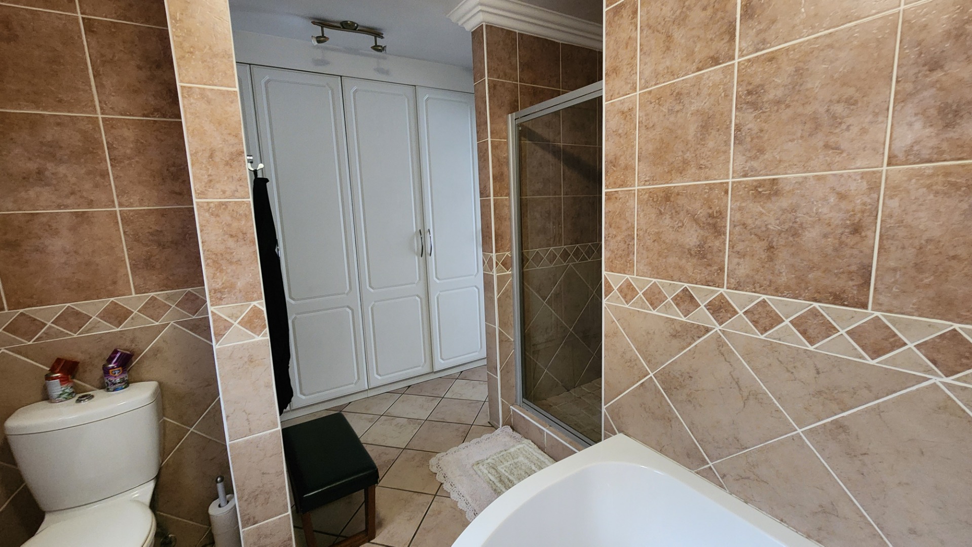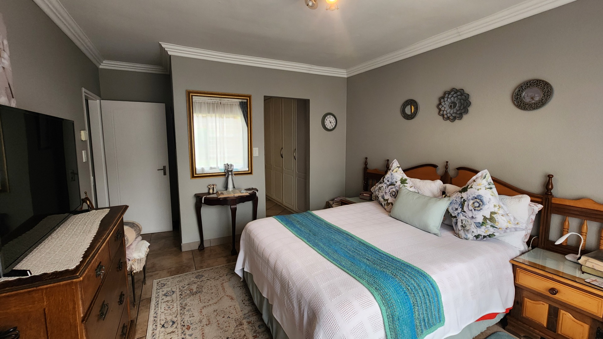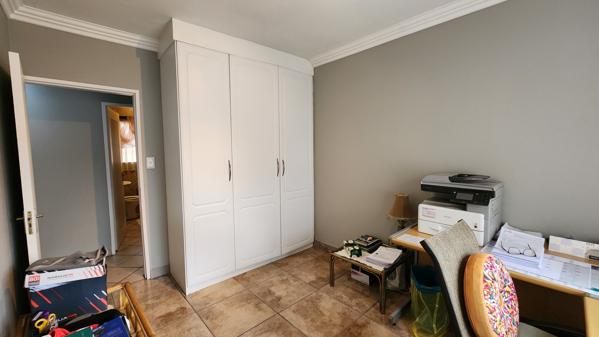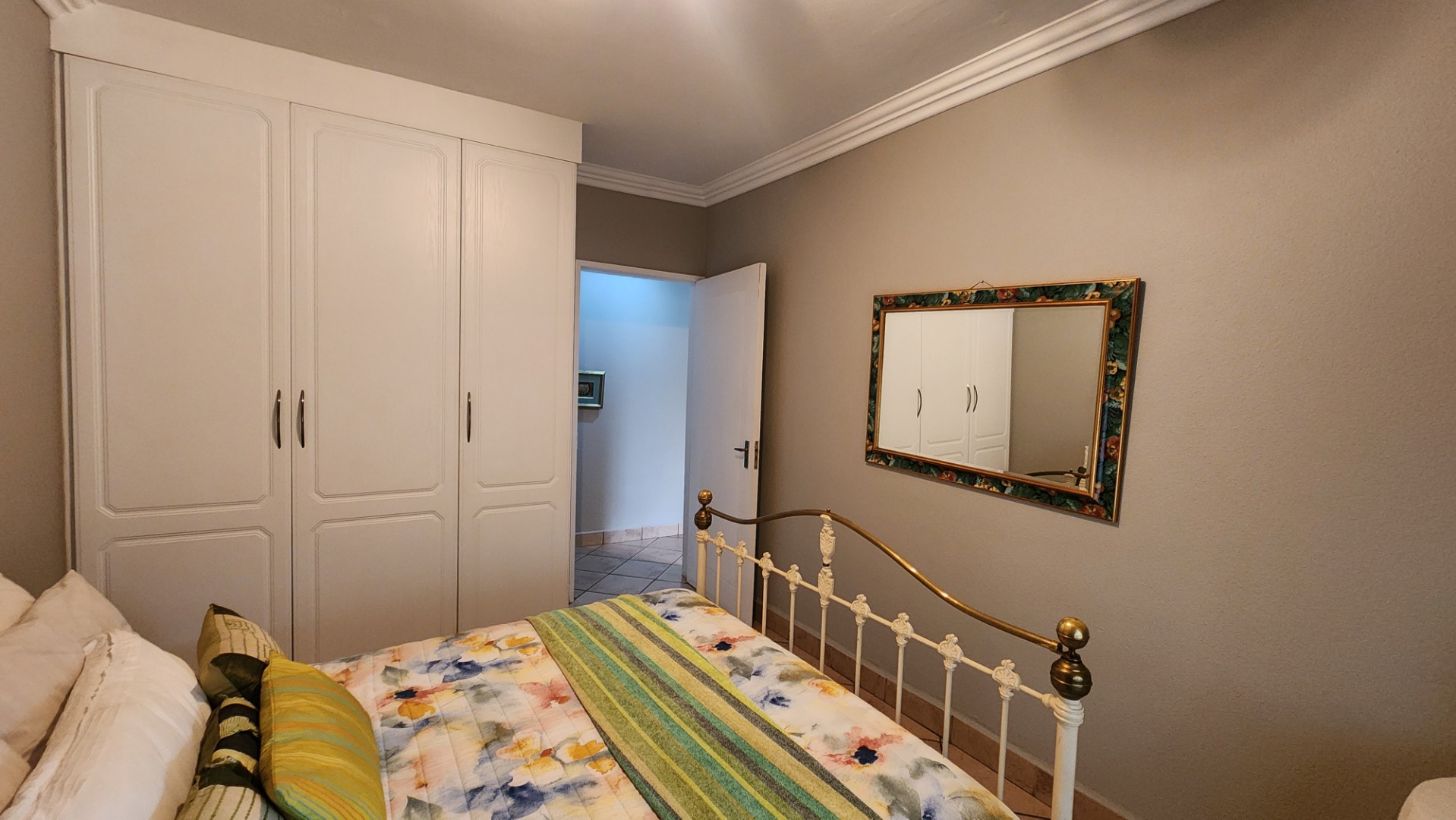 3 bedrooms with built-in cupboards and tiled floors