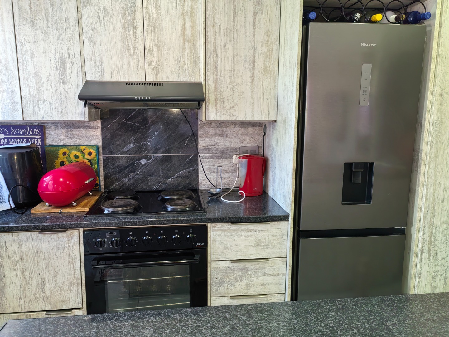 Discover this inviting 3-bedroom, 1-bathroom home situated in the metropolitan area of Reigerpark, Boksburg. This single-story brick residence, with its durable tiled roof, offers a comfortable living environment across a generous 148.00 sqm floor size on a 166.00 sqm erf. The property boasts a welcoming kerb appeal, featuring a classic brick exterior and established greenery that enhances its frontage. Step inside to an open-plan layout that seamlessly connects the living spaces. The home includes a dedicated lounge and dining area, perfect for both relaxation and entertaining. The kitchen is well-appointed with rustic-look wood-effect cabinetry, black granite countertops, and modern stainless steel appliances, complemented by a convenient breakfast bar. Tiled flooring extends throughout the main living areas, contributing to a clean and contemporary feel. The property is also wheelchair-friendly, ensuring accessibility. Accommodation comprises three comfortable bedrooms, sharing a single well-maintained bathroom. While specific storage details are not provided, the overall layout is practical for family living. Outdoor features include a paved patio area, ideal for enjoying the South African climate, and two dedicated parking spaces. The property also benefits from various security enhancements, including security bars on windows, security gates, CCTV, and an access gate, providing peace of mind. Reigerpark offers a vibrant community setting within Boksburg, providing residents with access to local amenities and convenient metropolitan living. This home is pet-friendly and equipped with a satellite dish and ADSL connectivity, catering to modern lifestyle needs. Key Features: * 3 Bedrooms, 1 Bathroom * Open-plan Lounge and Dining Area * Modern Kitchen with Granite Countertops * Paved Patio Area * 2 Parking Spaces * Enhanced Security (CCTV, Security Gates, Access Gate) * Wheelchair Friendly * Pet-Friendly * Satellite Dish and ADSL Connectivity