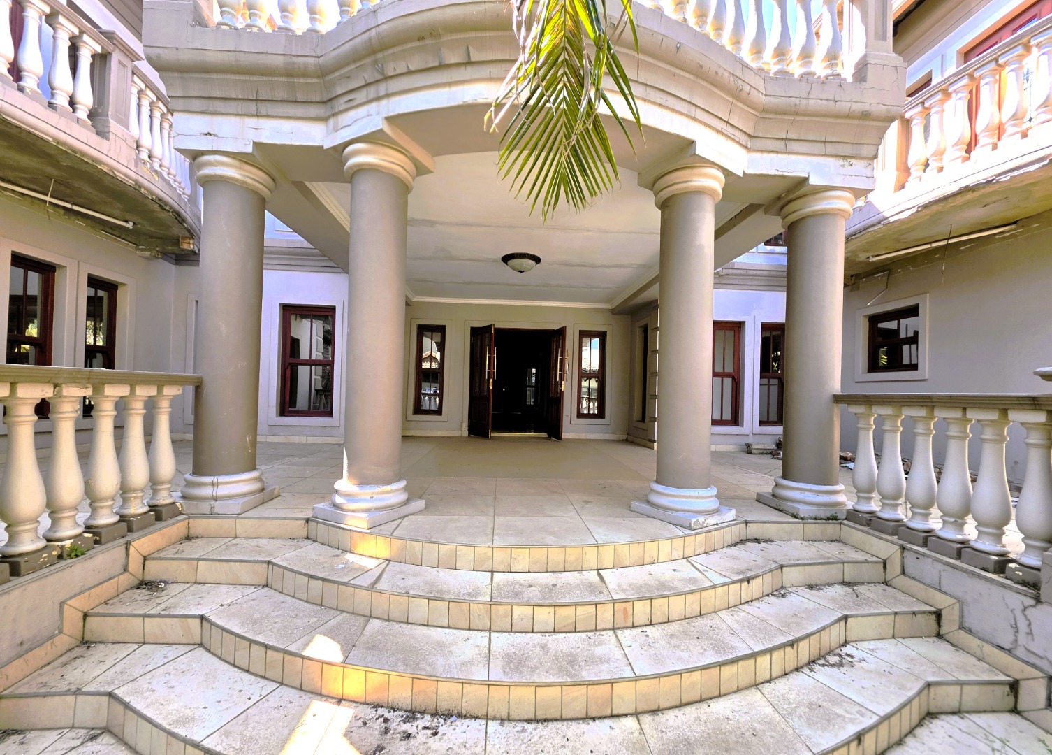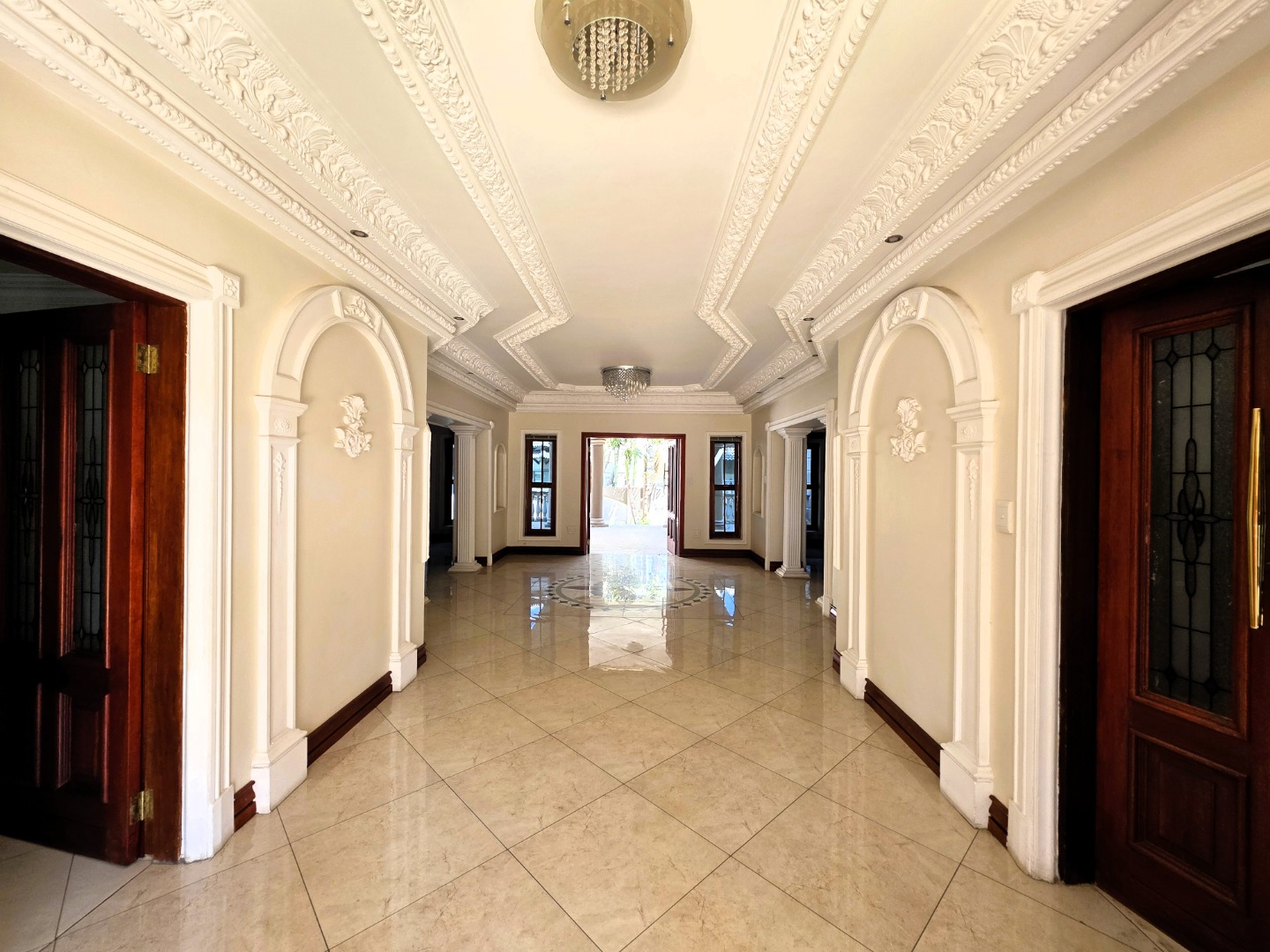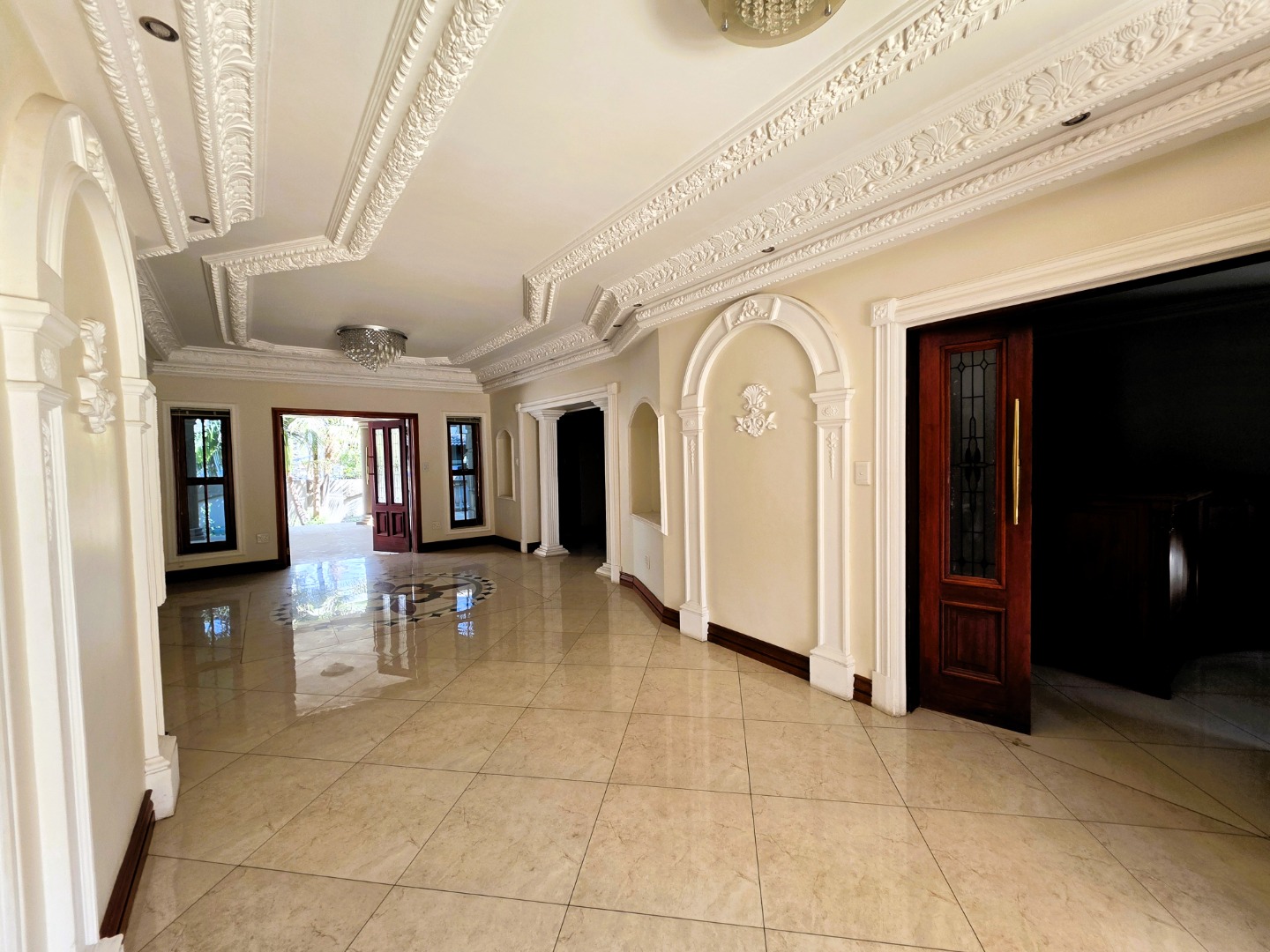 Featuring a grand staircase walking in, the home features intricate designed walls in the entrance and foyers.