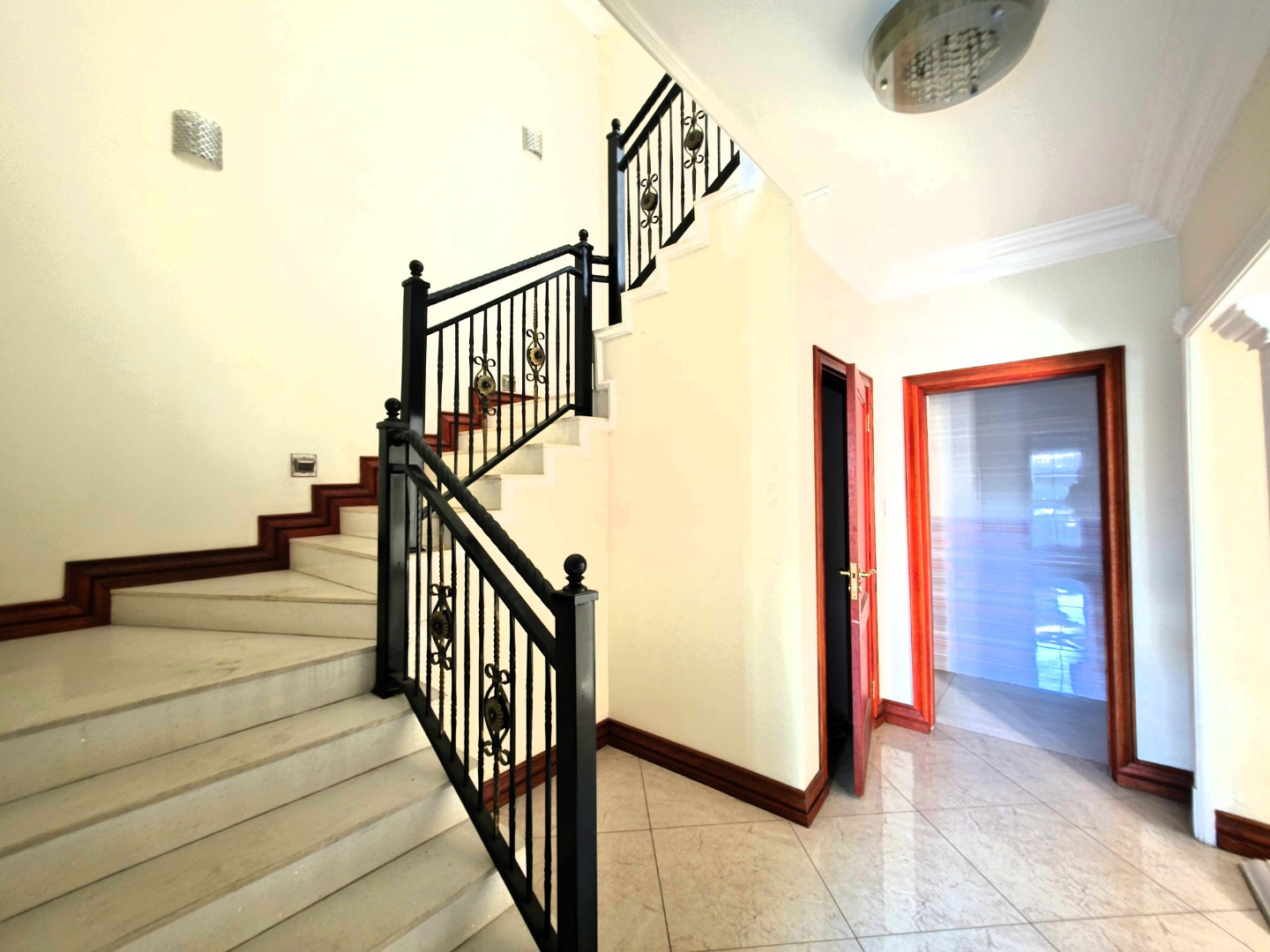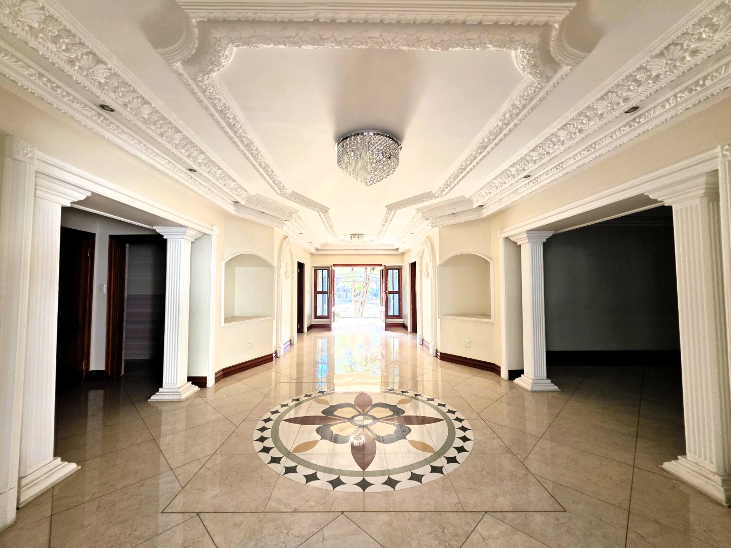 Featuring a grand staircase walking in, the home features intricate designed walls in the entrance and foyers.