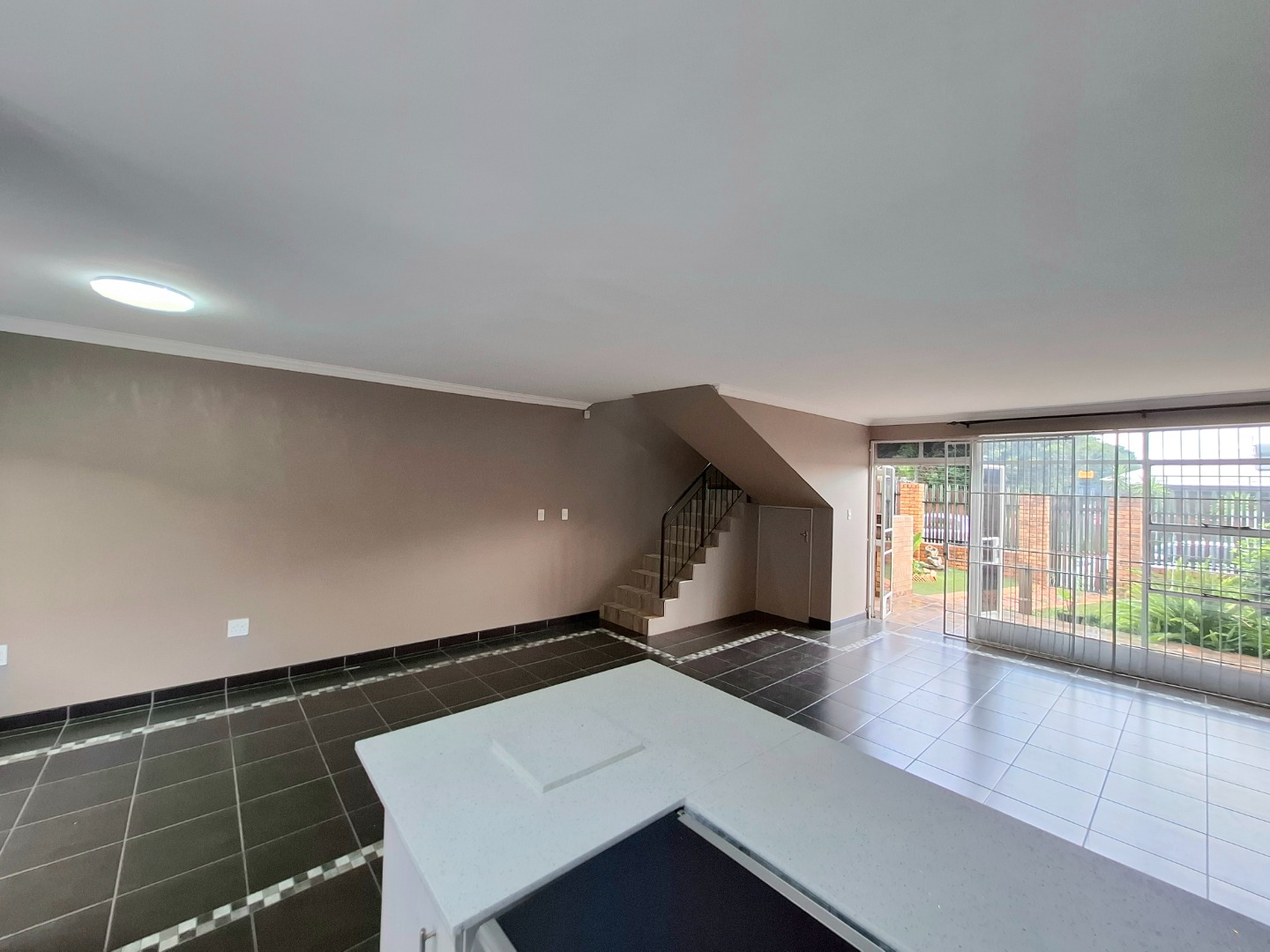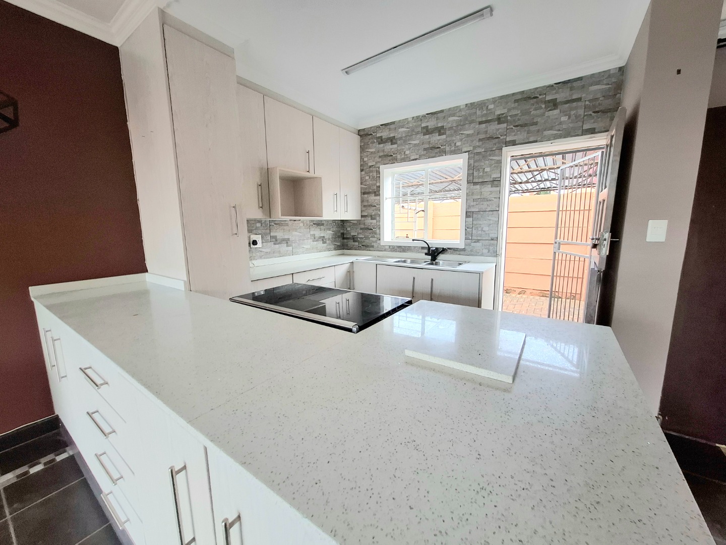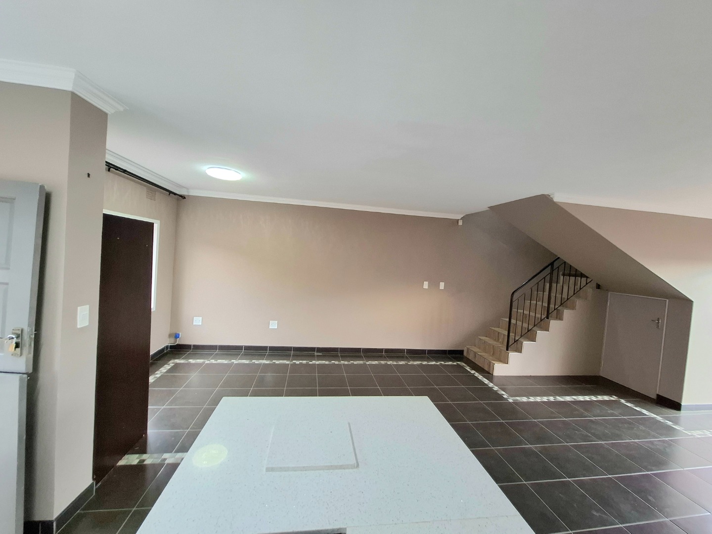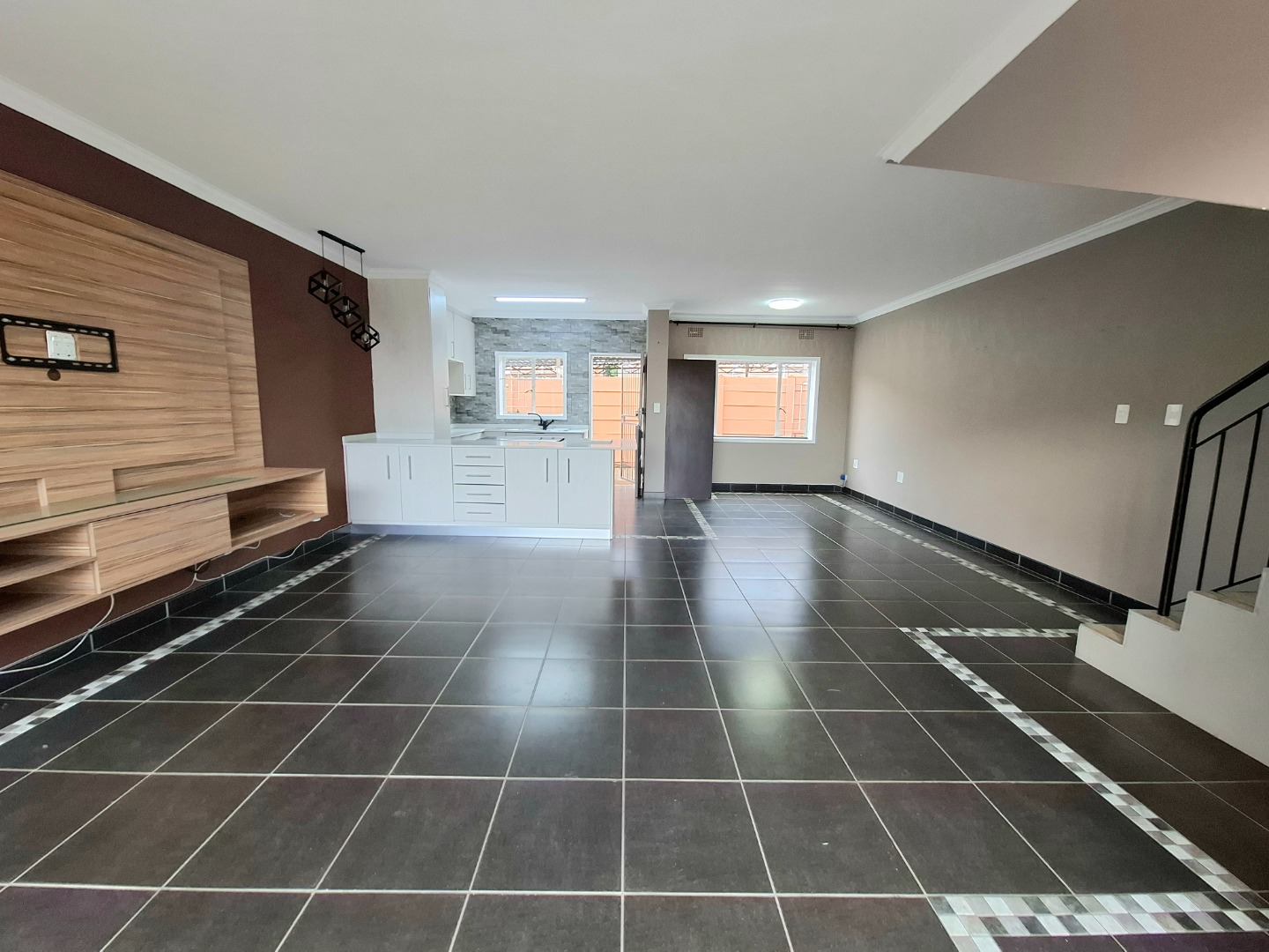 Discover modern PET FRIENDLY living in this inviting 113 sqm property, ideally situated within a secure complex in Witfield, Boksburg. This home boasts a contemporary open-plan layout, seamlessly connecting the lounge, dining area, and kitchen, creating an expansive and versatile living space. Tiled flooring flows throughout, complemented by ample natural light streaming in from large windows and sliding doors, enhancing the bright and airy atmosphere. The integrated staircase with underneath storage adds a touch of architectural interest, while a dedicated family TV room with floating TV shelve and Modern light fittings provides additional comfort.
