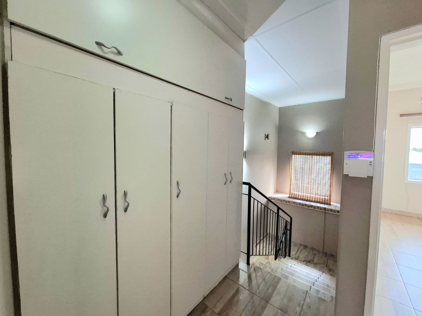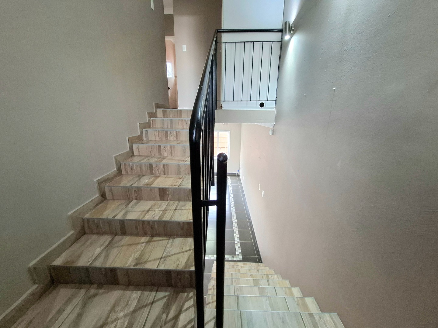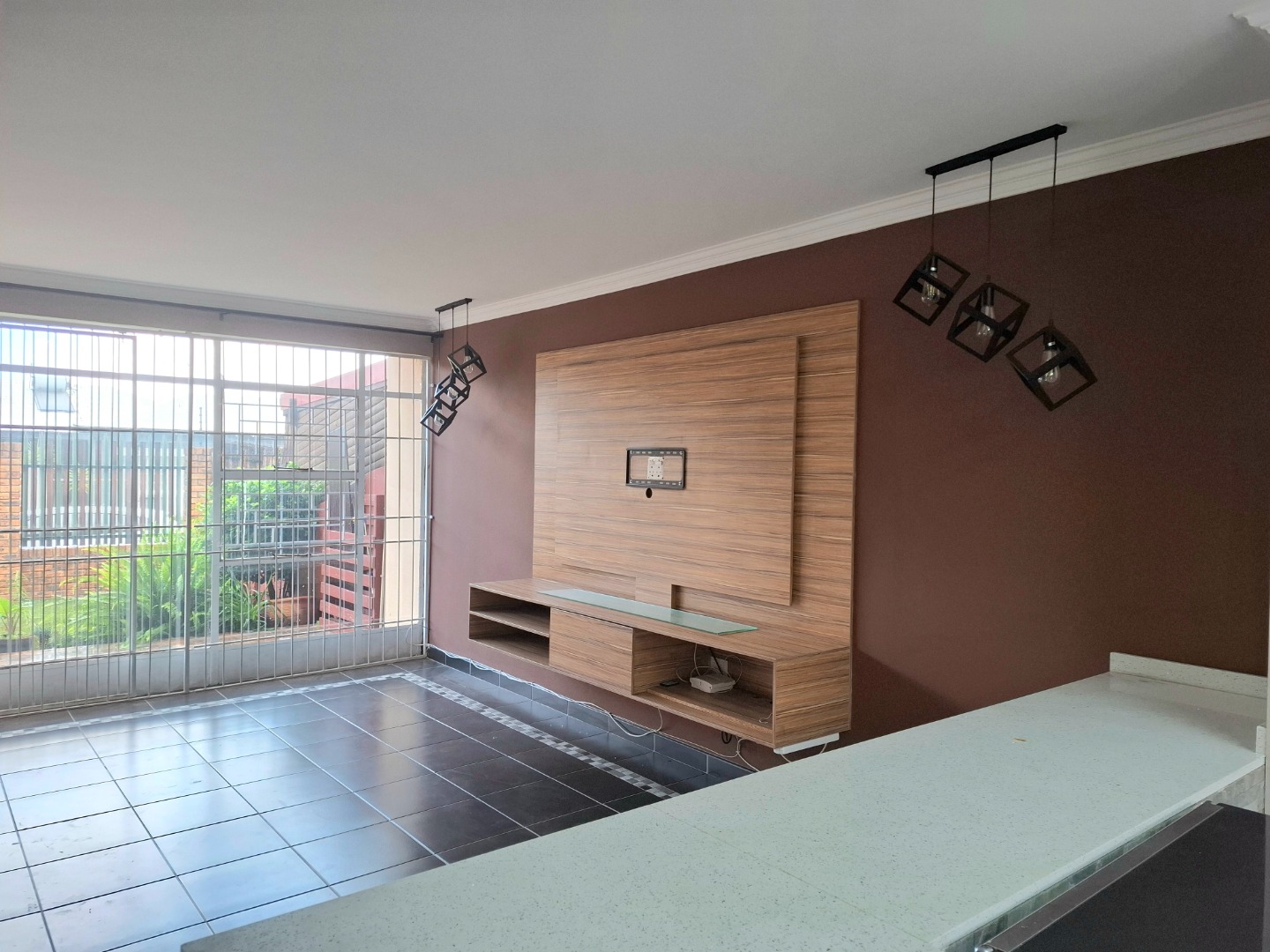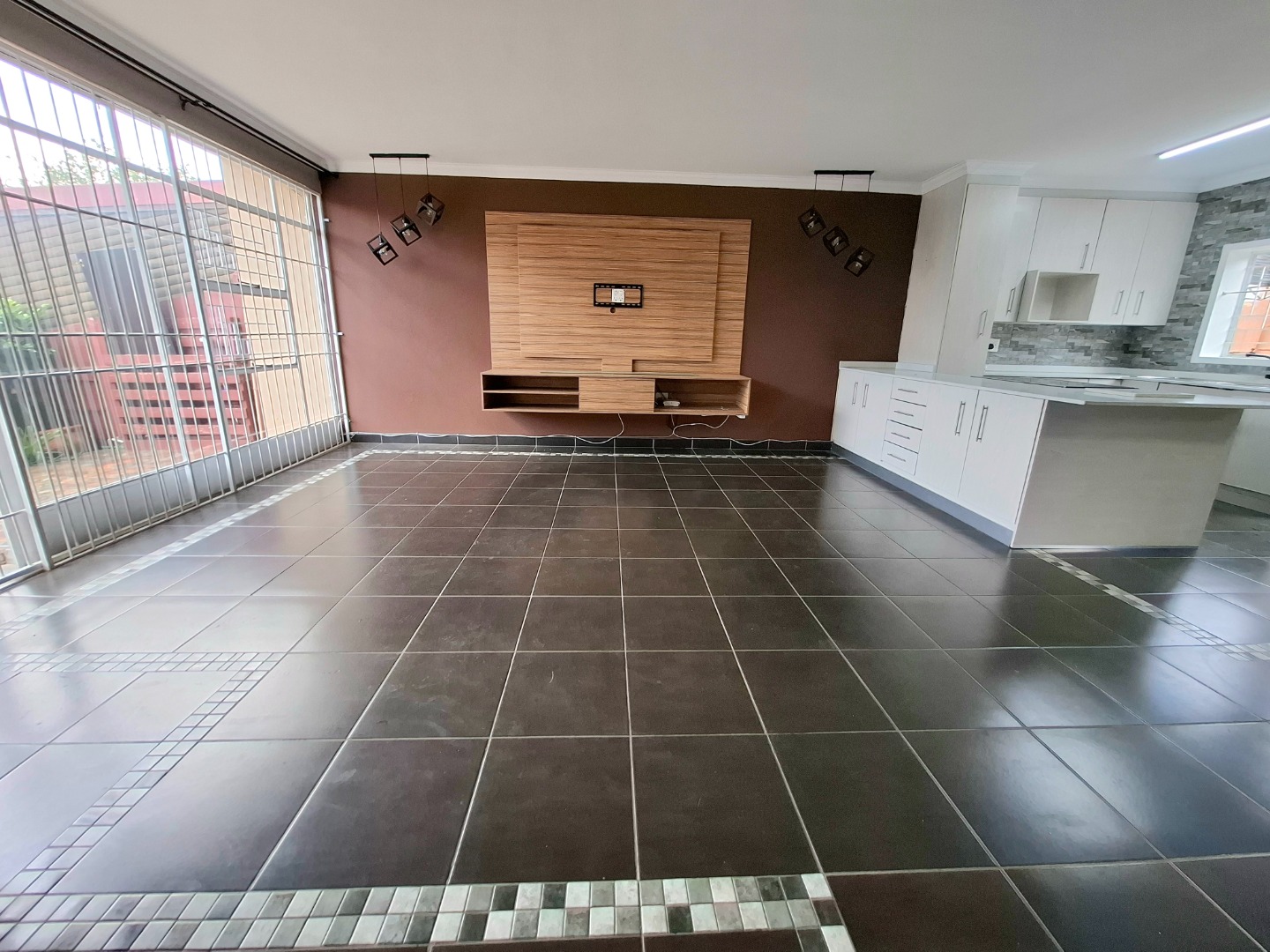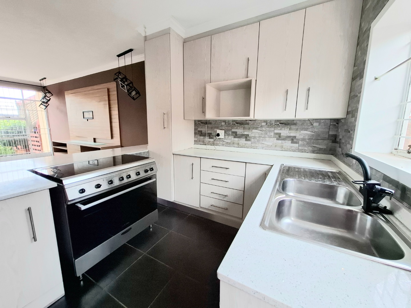 Discover modern PET FRIENDLY living in this inviting 113 sqm property, ideally situated within a secure complex in Witfield, Boksburg. This home boasts a contemporary open-plan layout, seamlessly connecting the lounge, dining area, and kitchen, creating an expansive and versatile living space. Tiled flooring flows throughout, complemented by ample natural light streaming in from large windows and sliding doors, enhancing the bright and airy atmosphere. The integrated staircase with underneath storage adds a touch of architectural interest, while a dedicated family TV room with floating TV shelve and Modern light fittings provides additional comfort.