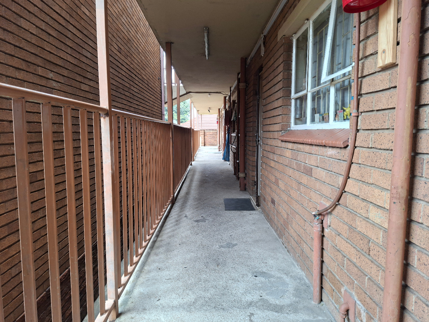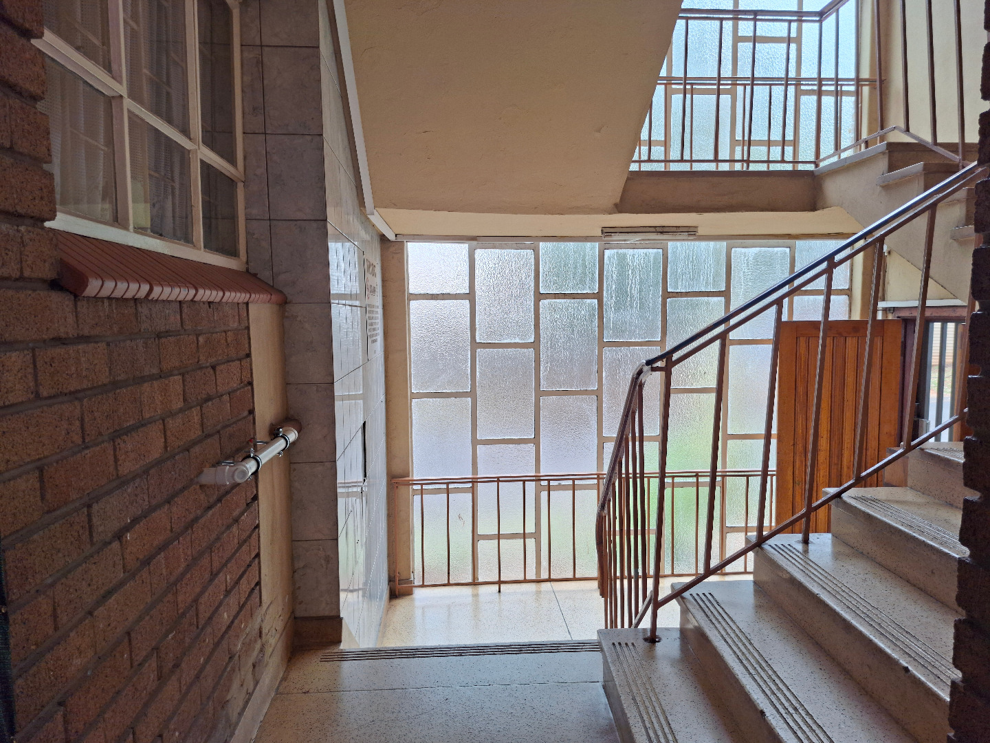 This multi-story residential building in Brakpan Central presents a solid brick facade, offering a functional and secure living environment. The property features individual enclosed balconies or sun rooms on upper floors, providing additional versatile space. Ground-level dedicated garages and ample off-street parking enhance convenience for residents, complemented by a driveway and paving.