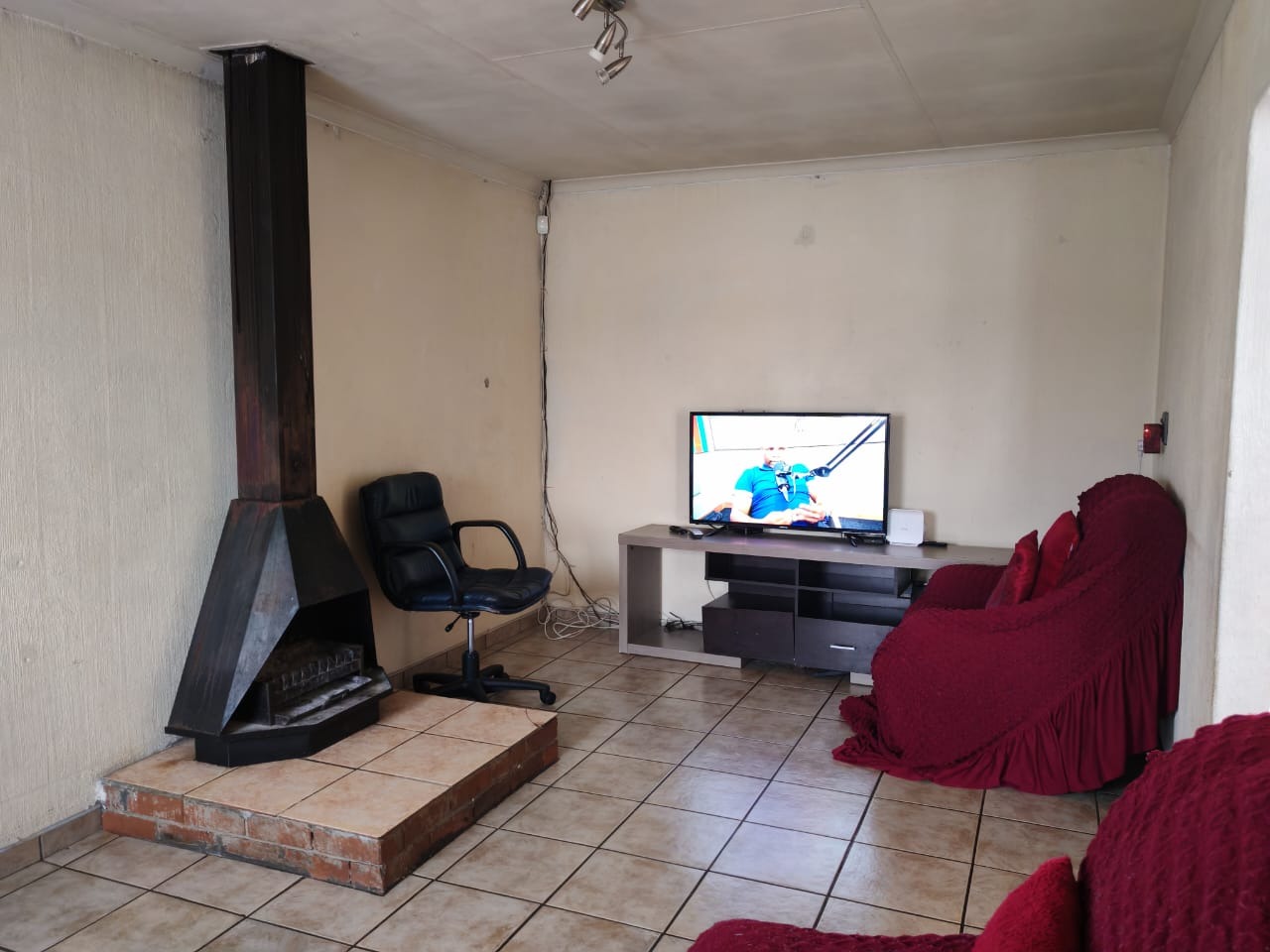 Tv room with fire place