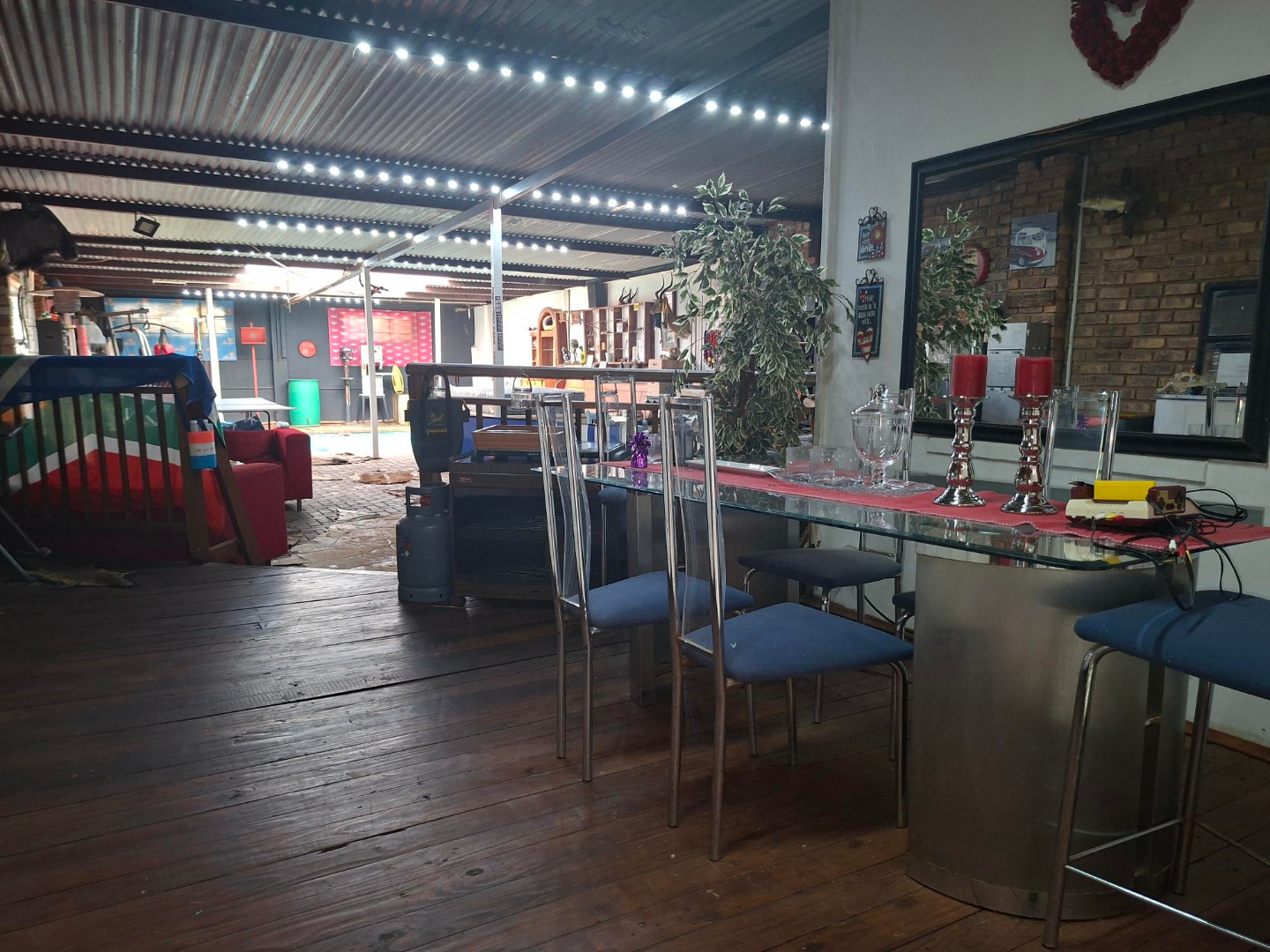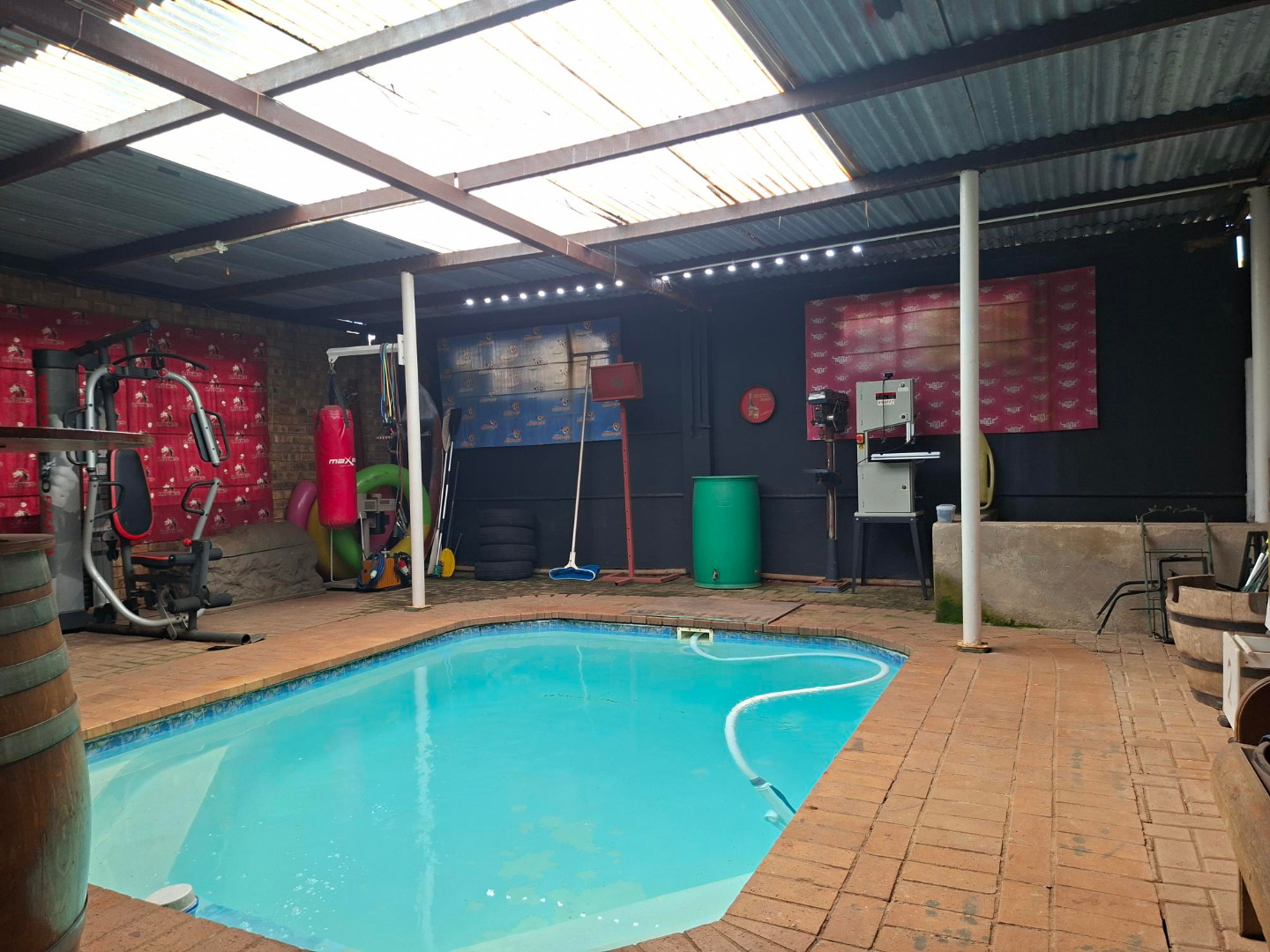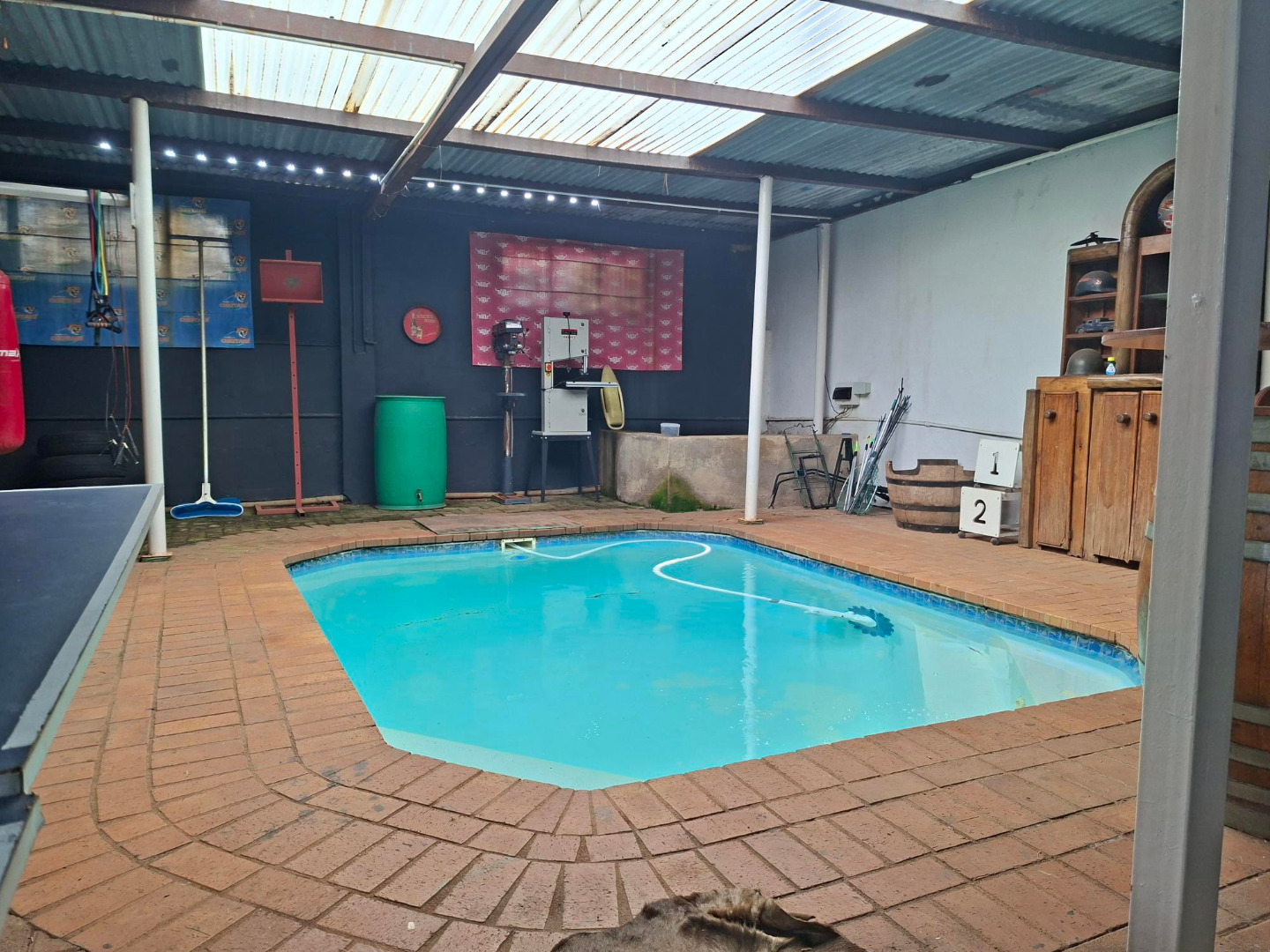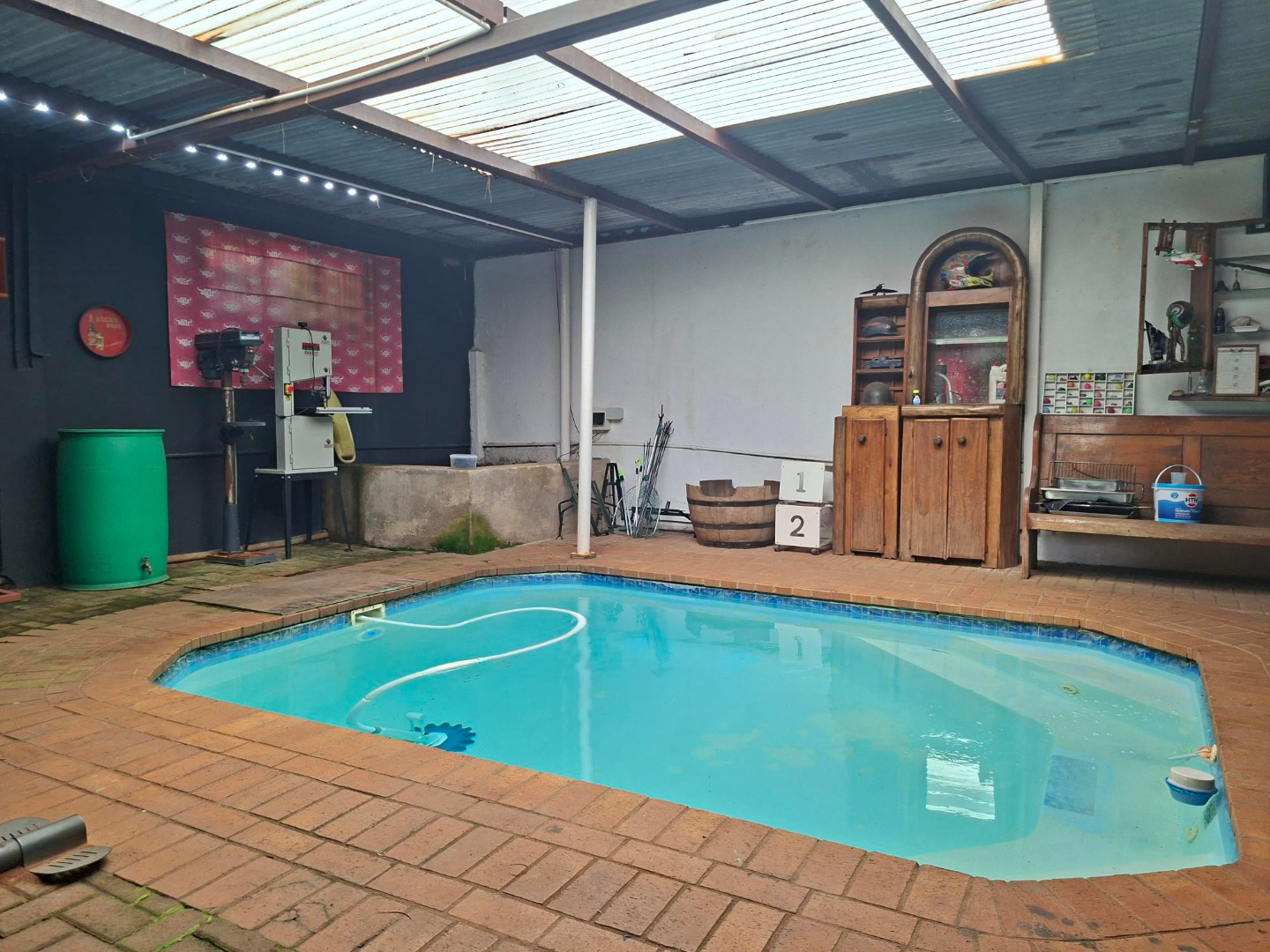 Under cover HEATED pool with entertainment area with a built in braai.