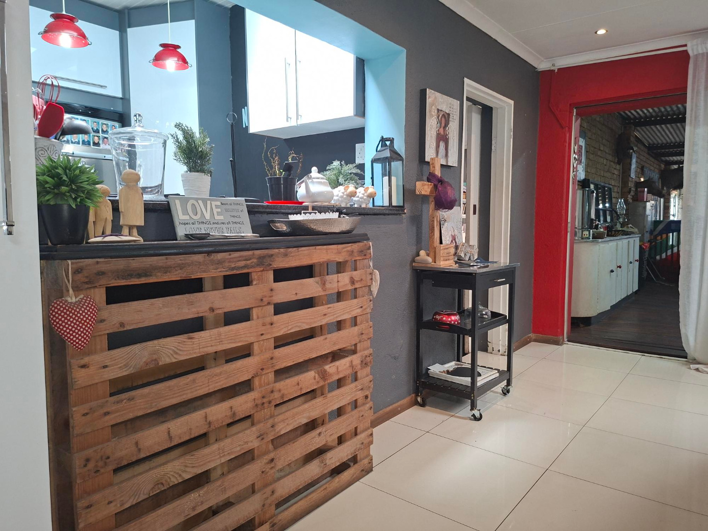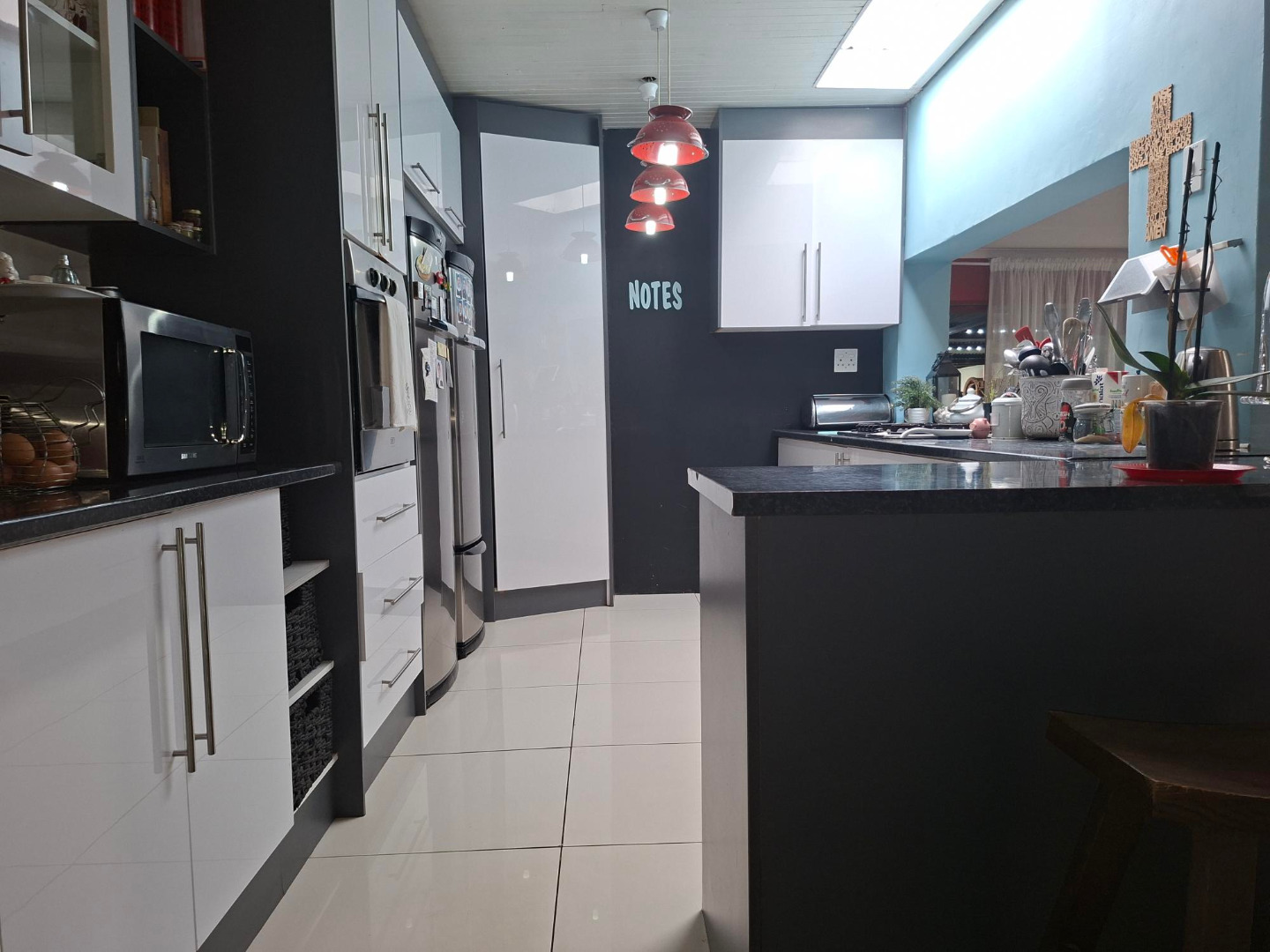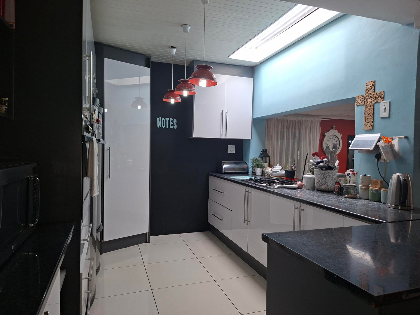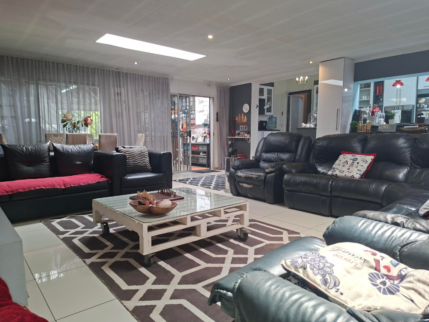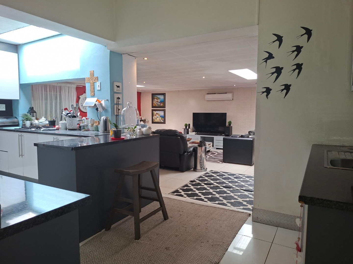 Kitchen with a open plan lounge area.