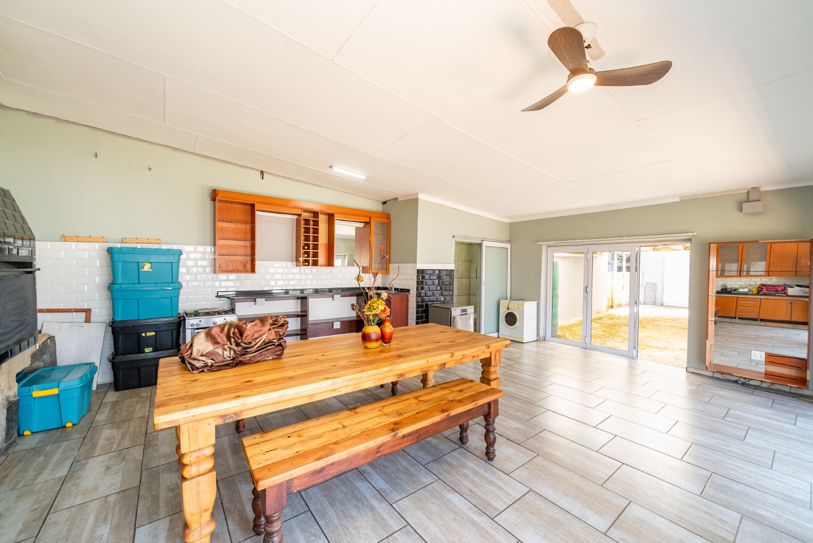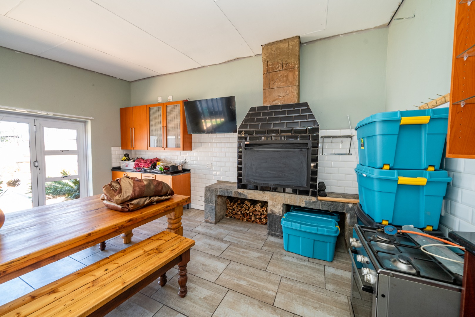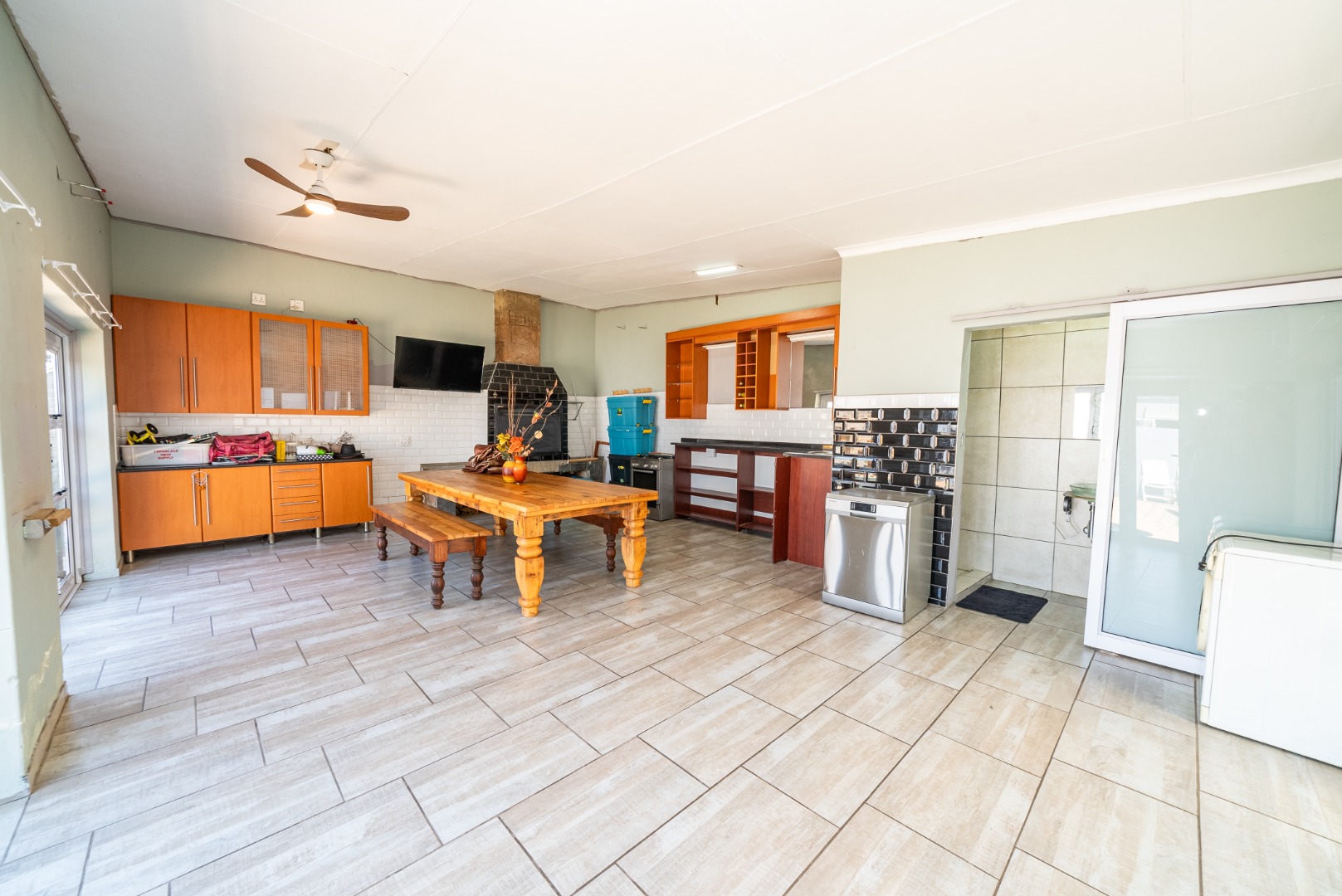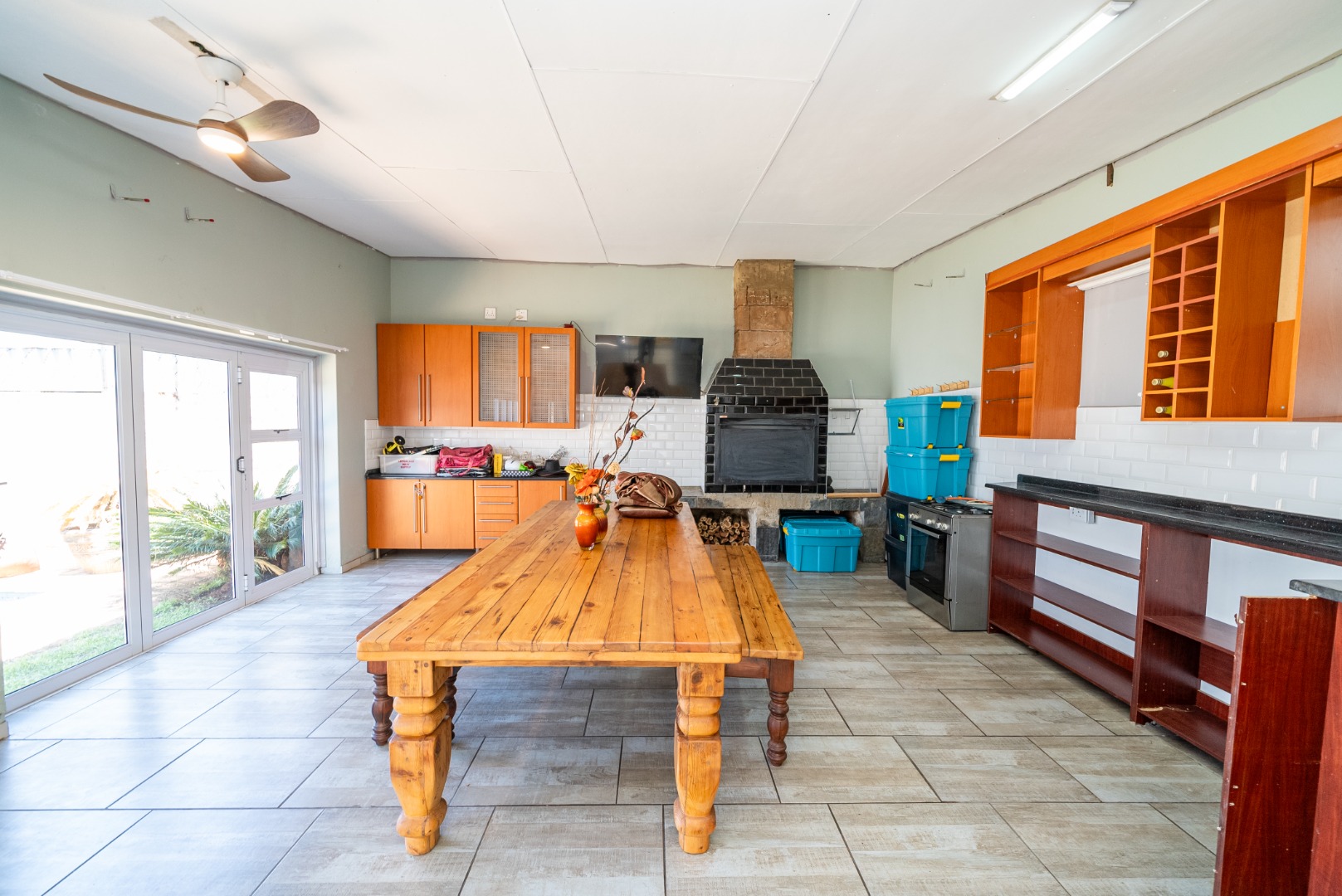 Open-plan entertainment area with built-in braai