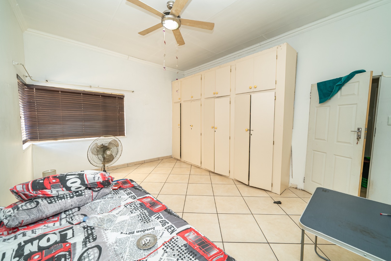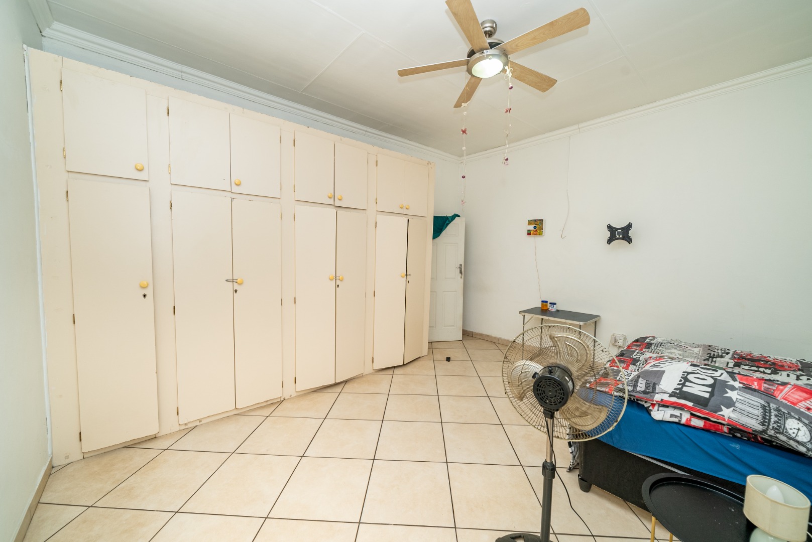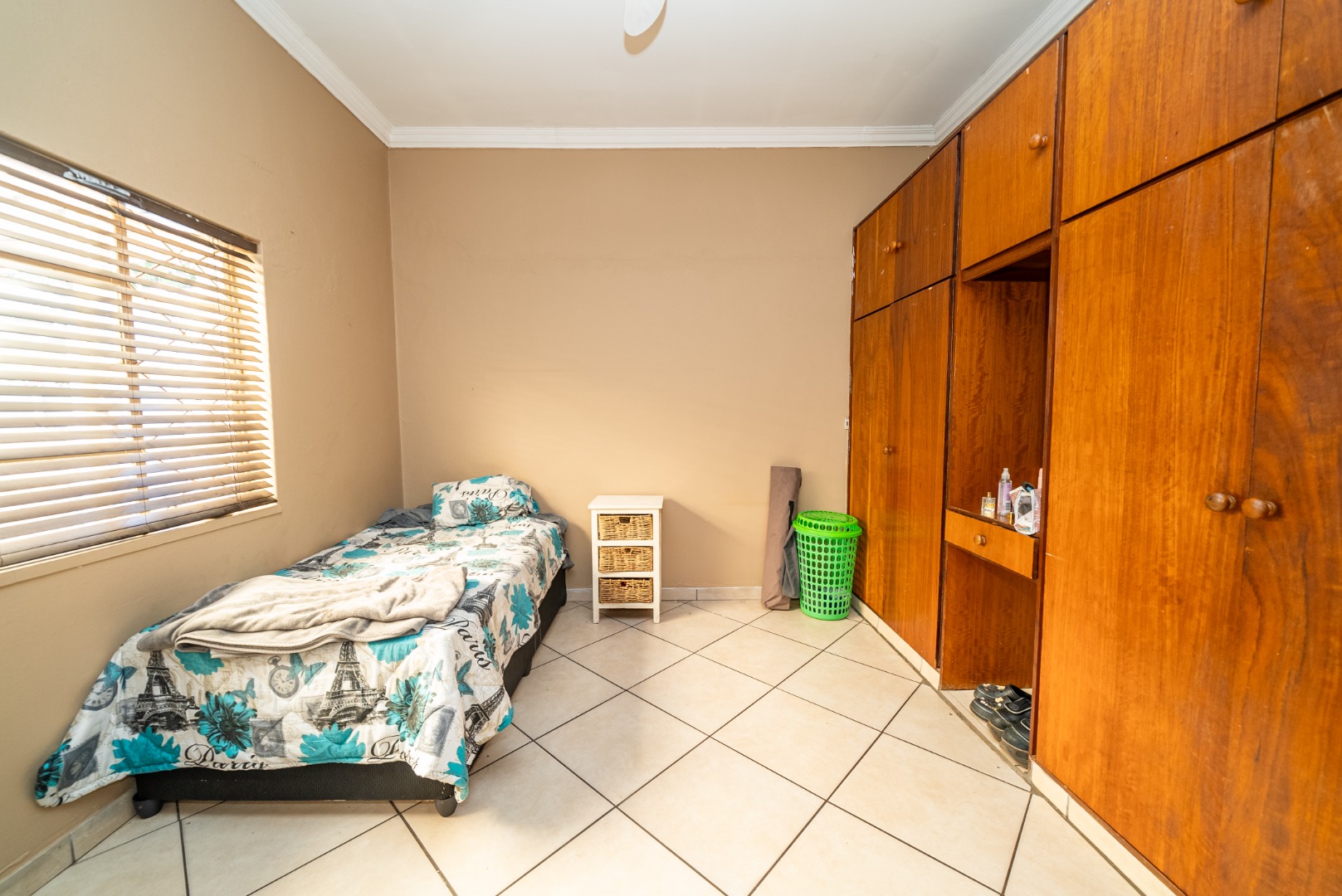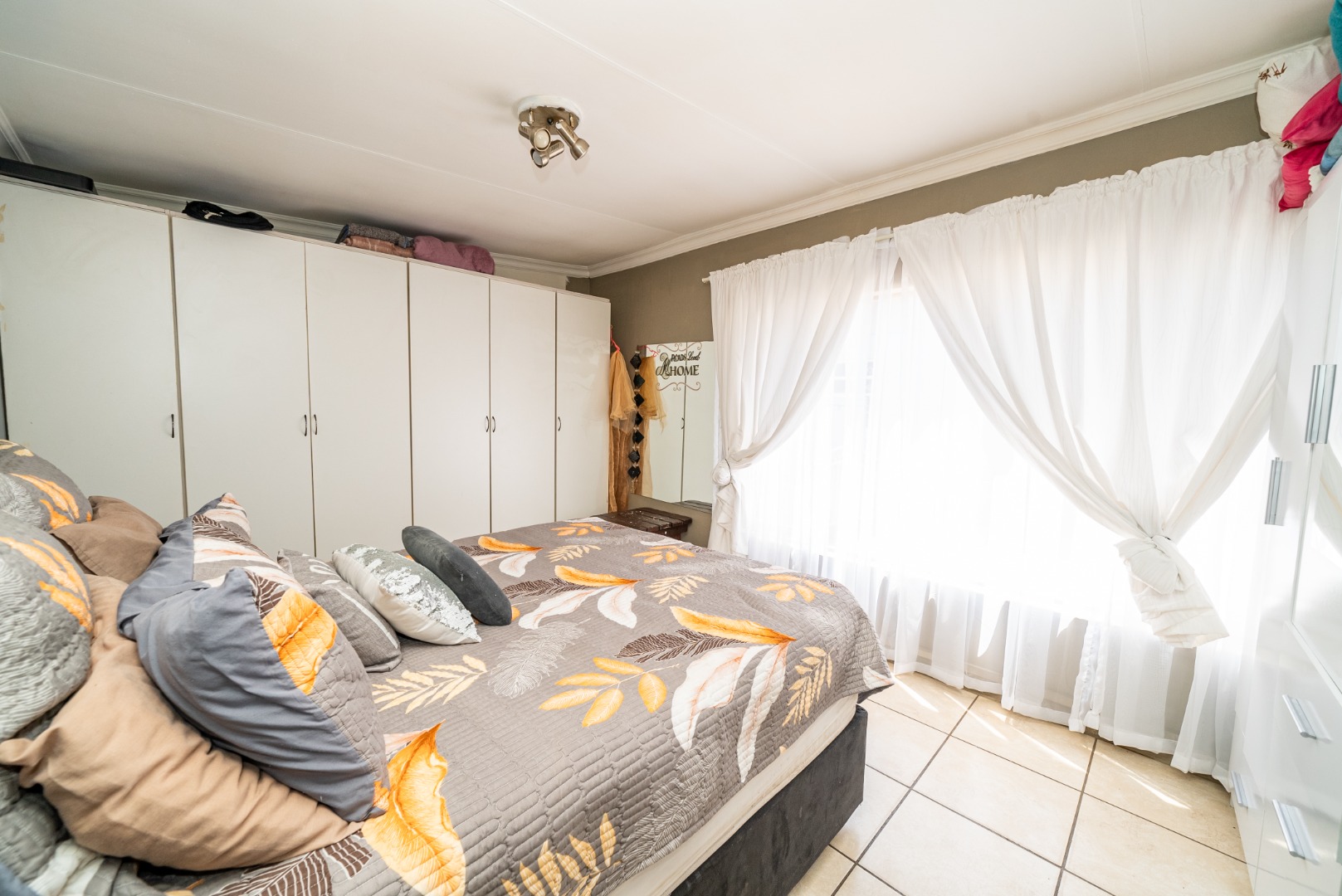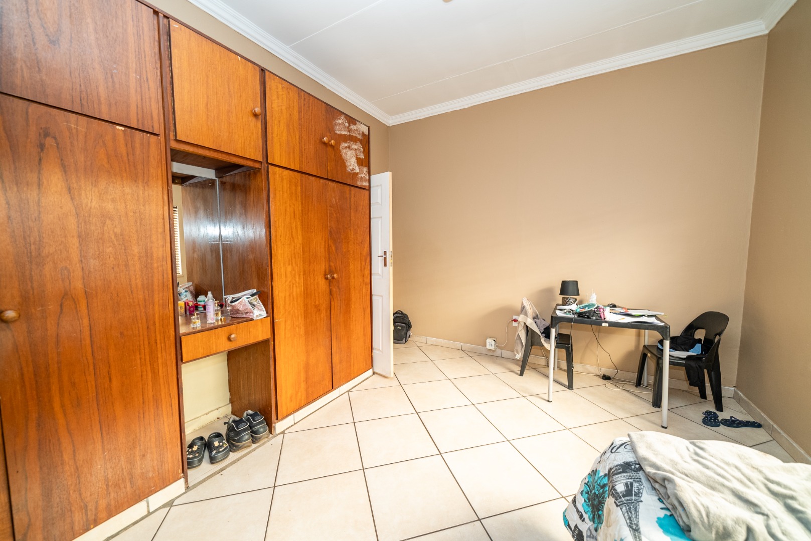 3 bedrooms with built-in cupboards, fully tiled throughout
