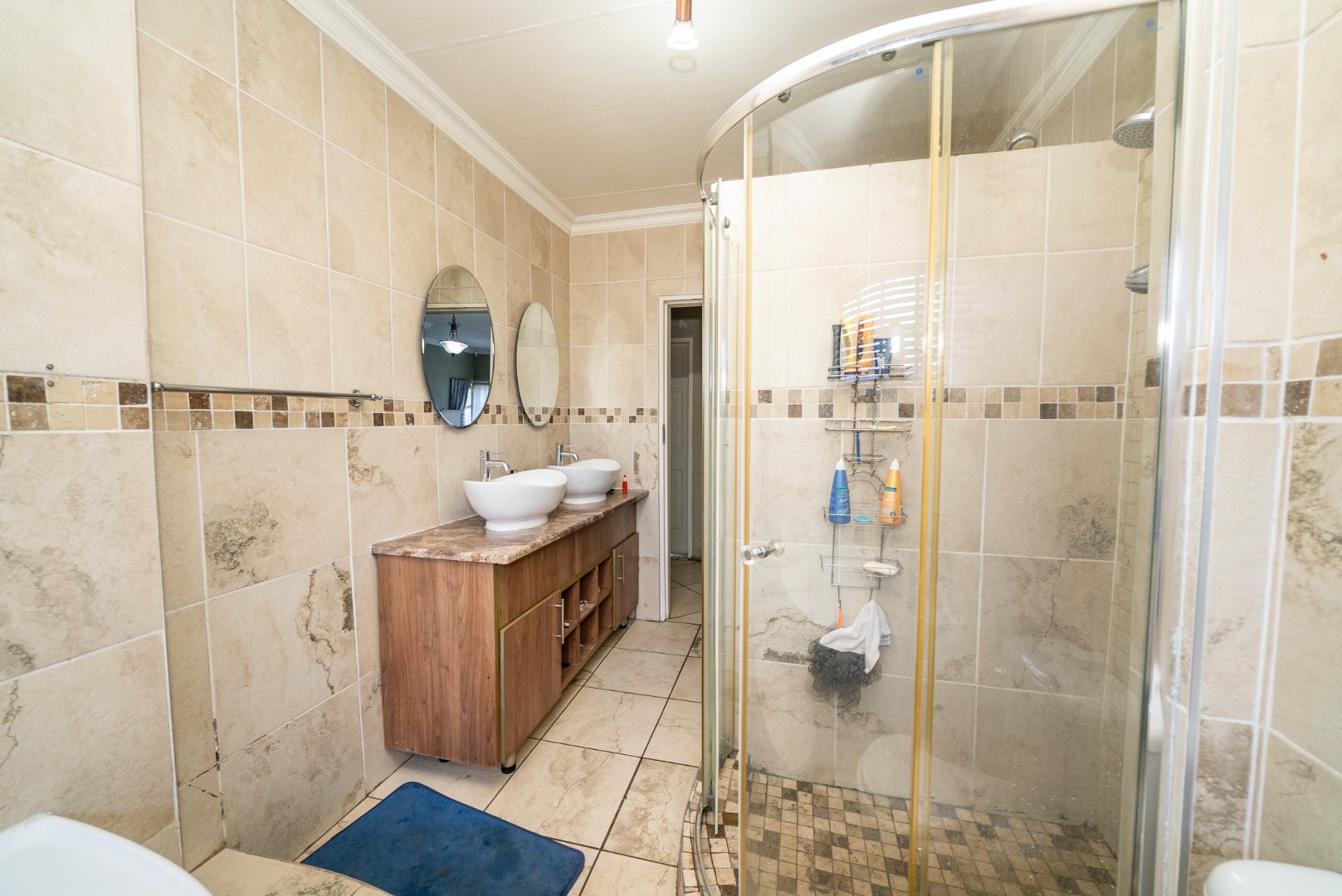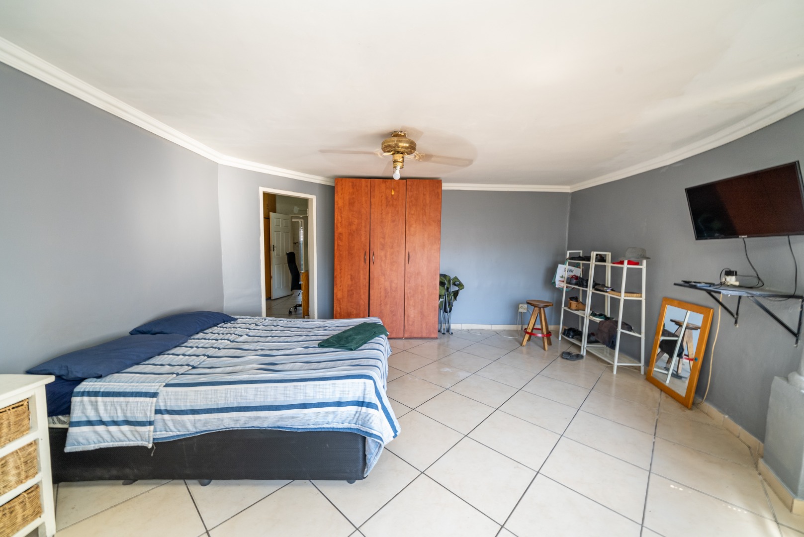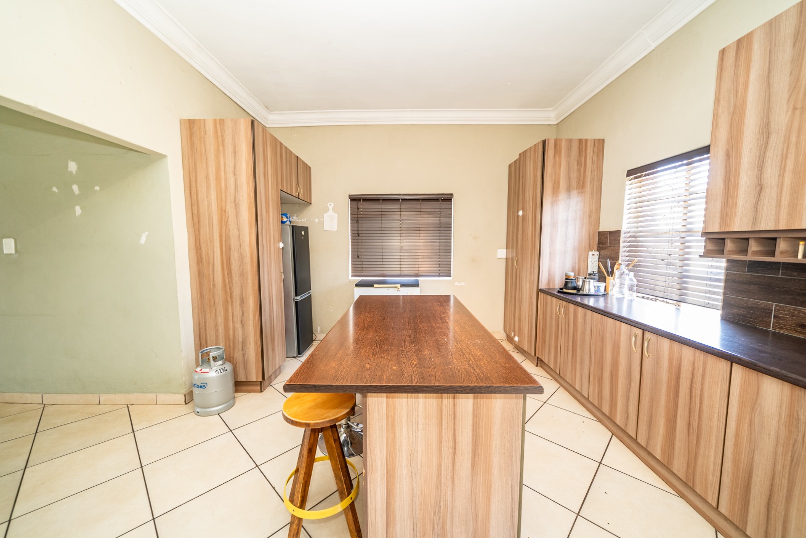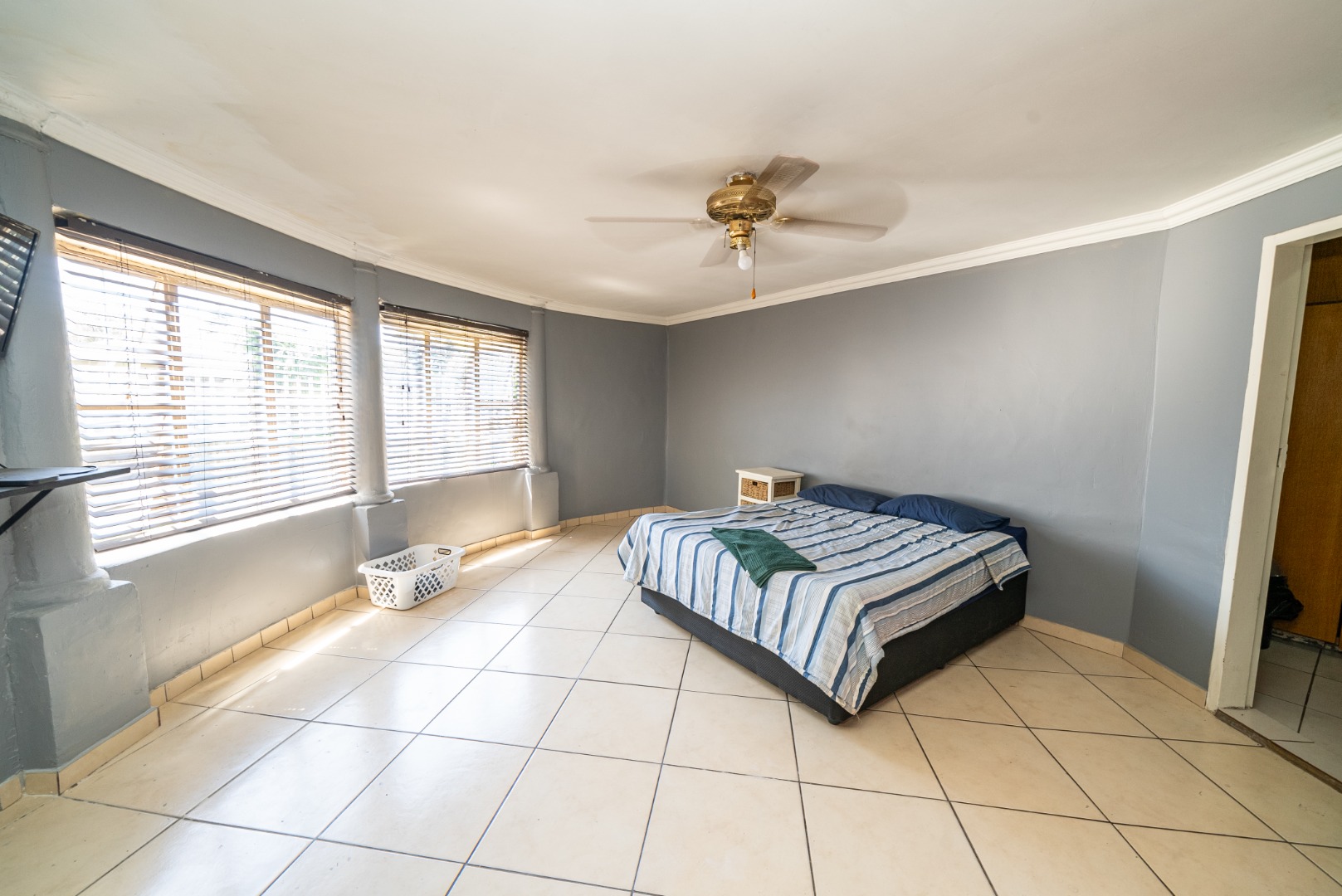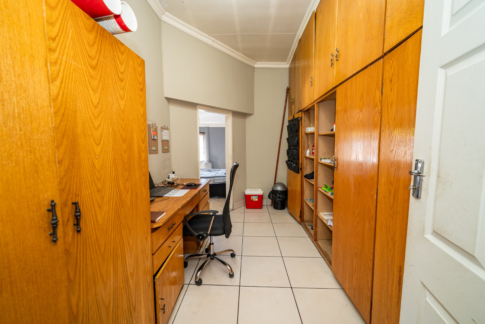 3 bedrooms with built-in cupboards, fully tiled throughout