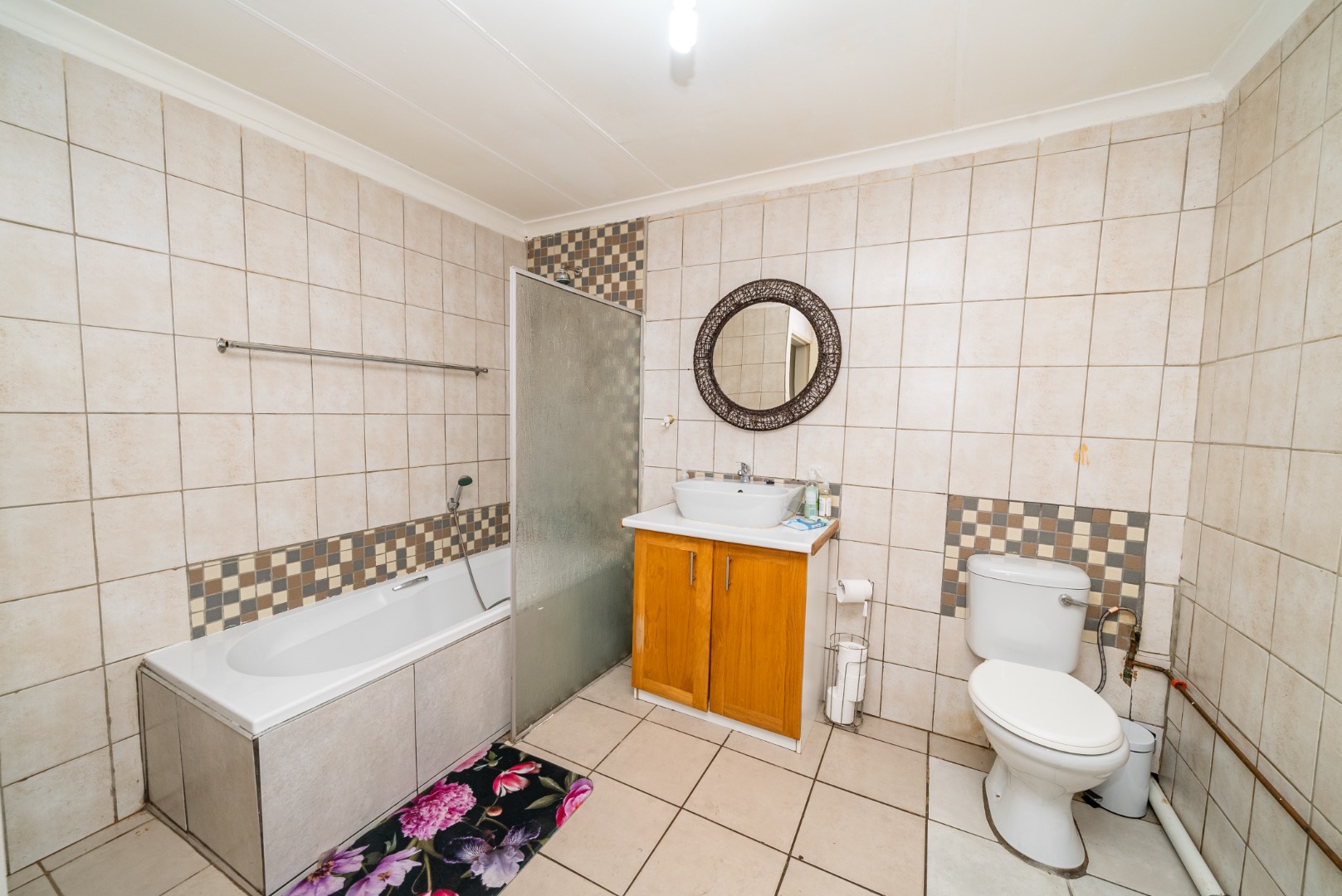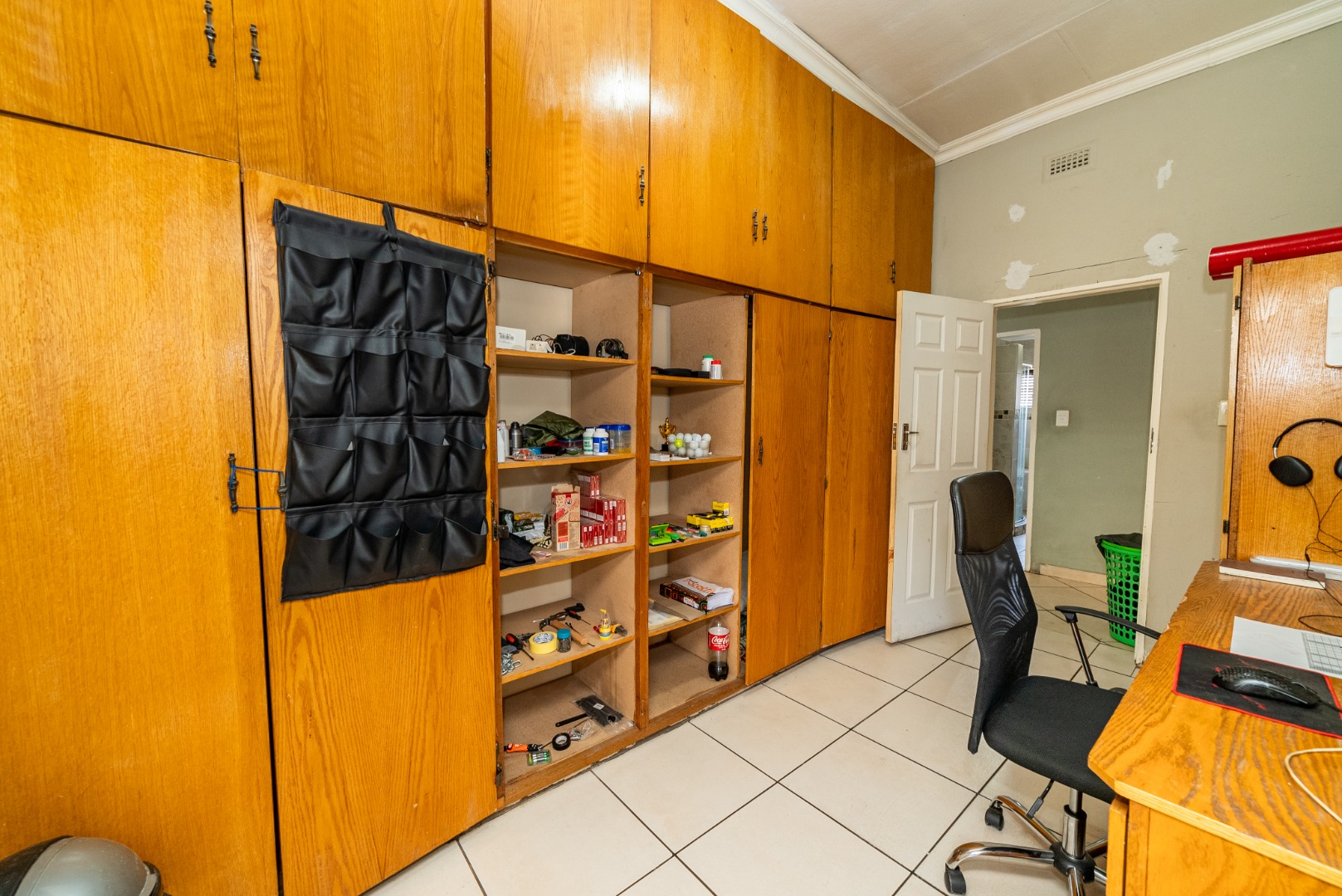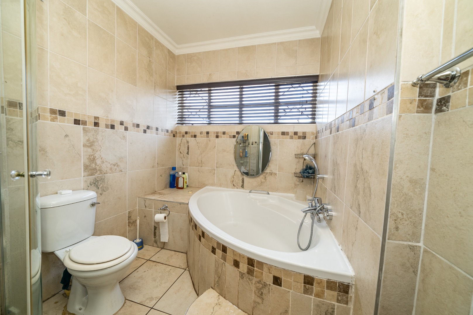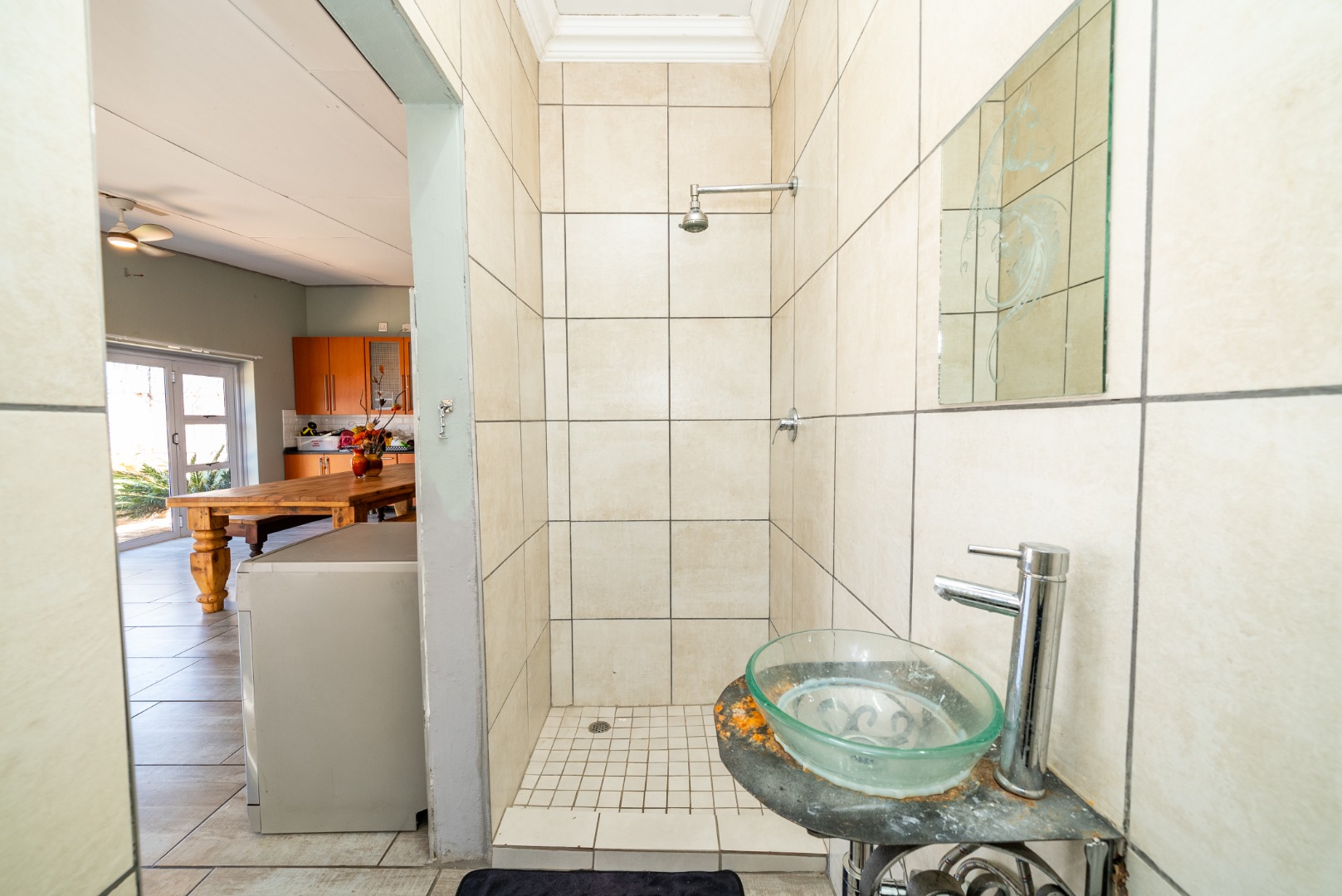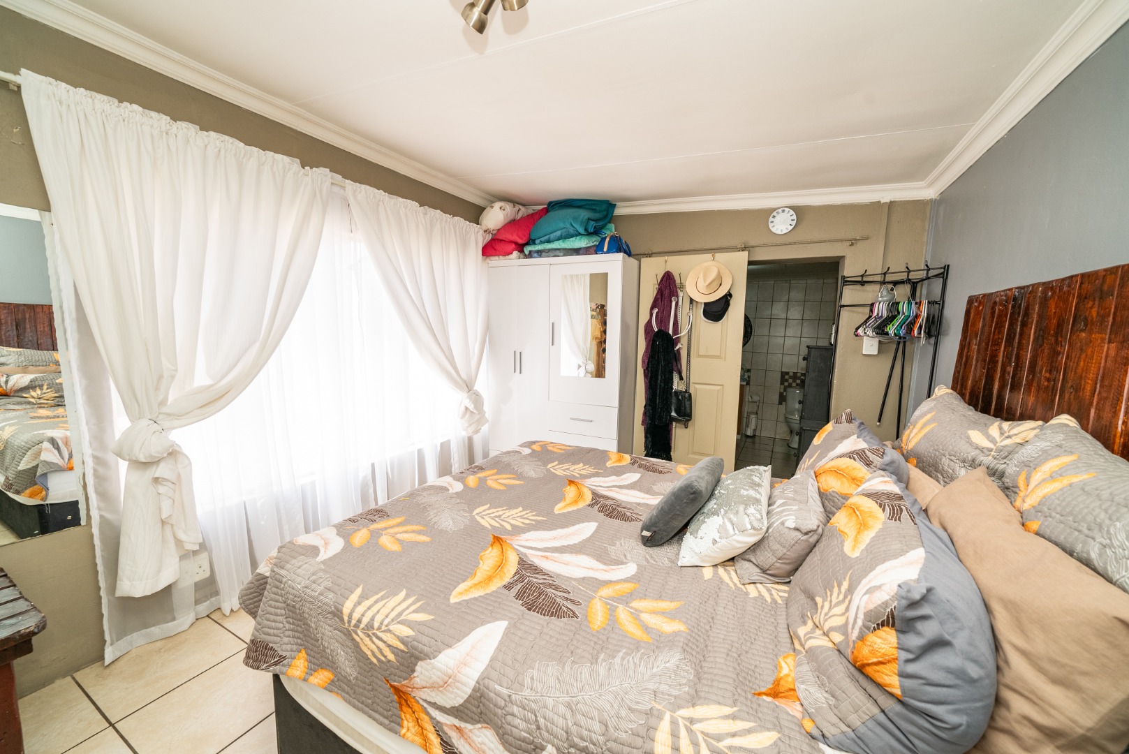 3 bedrooms with built-in cupboards, fully tiled throughout