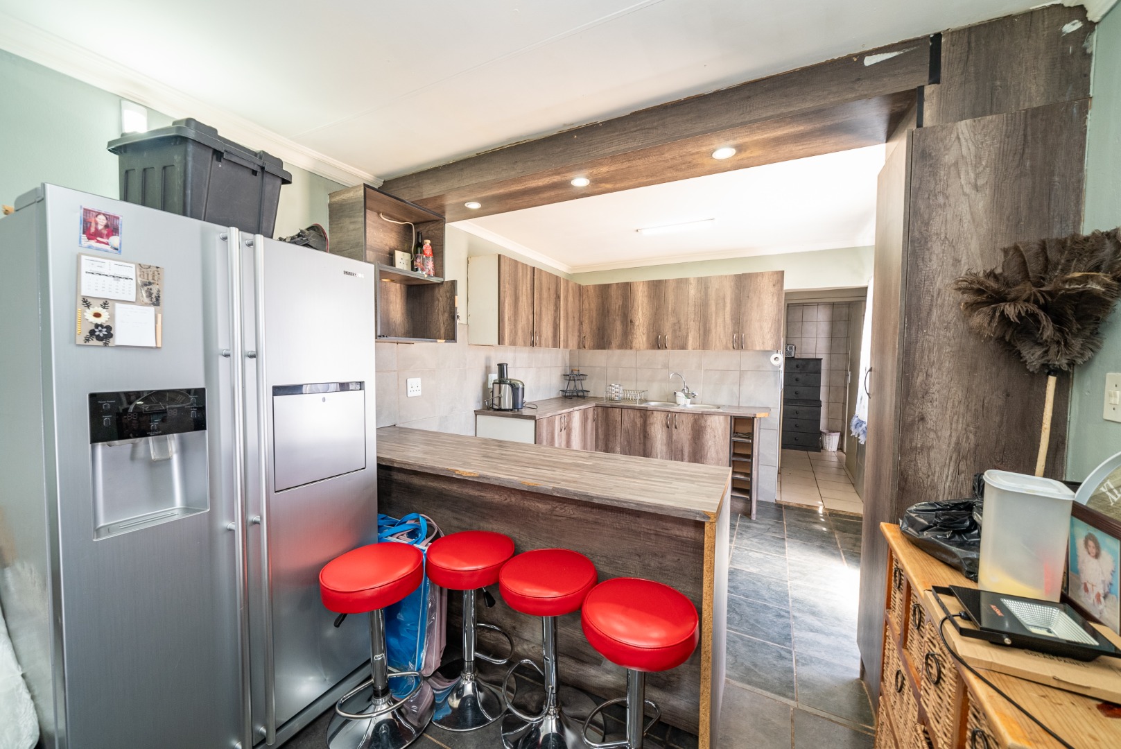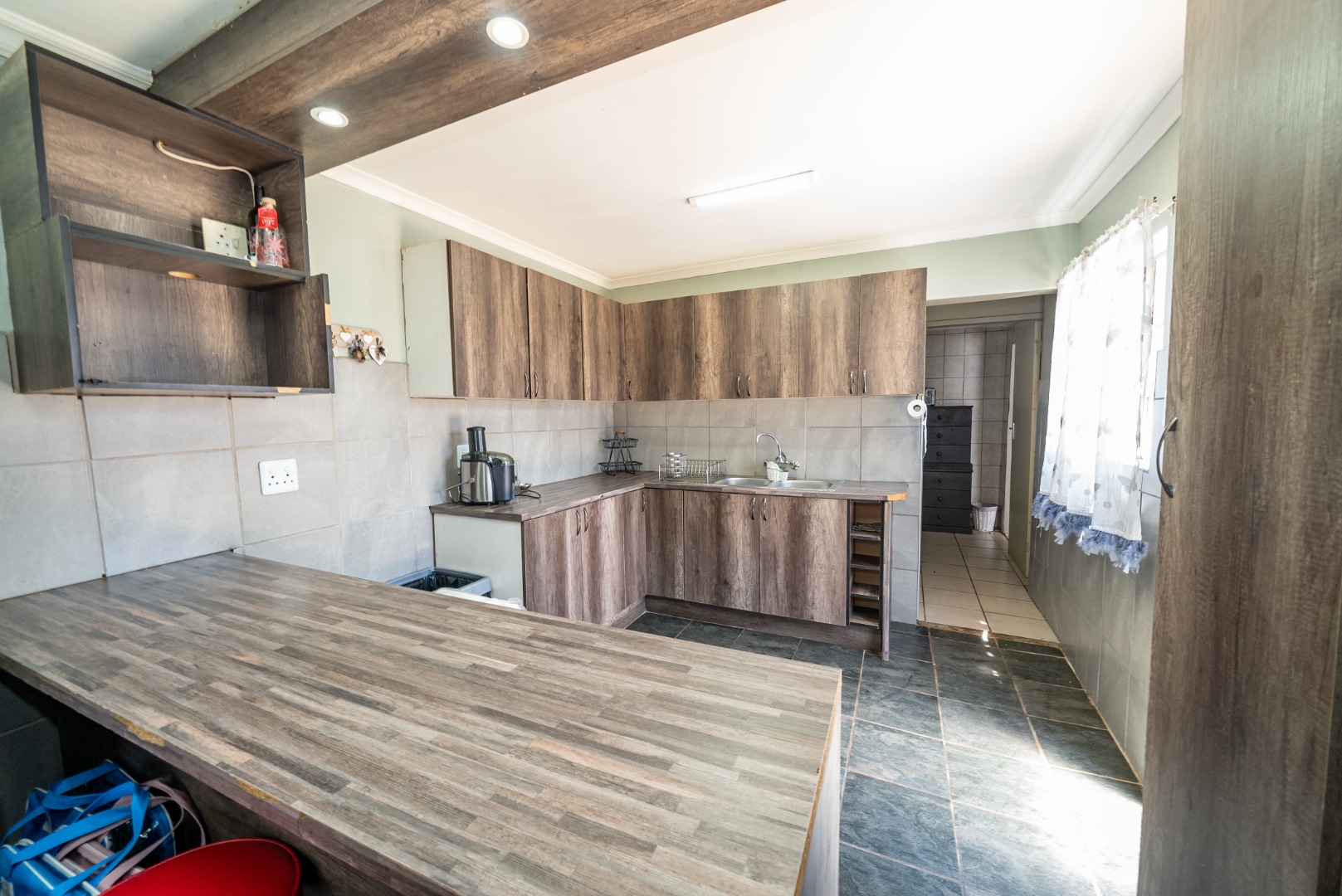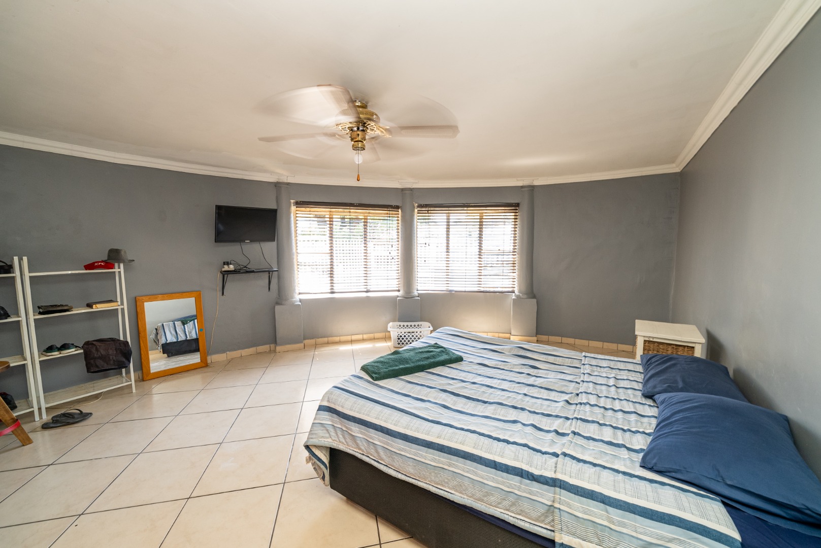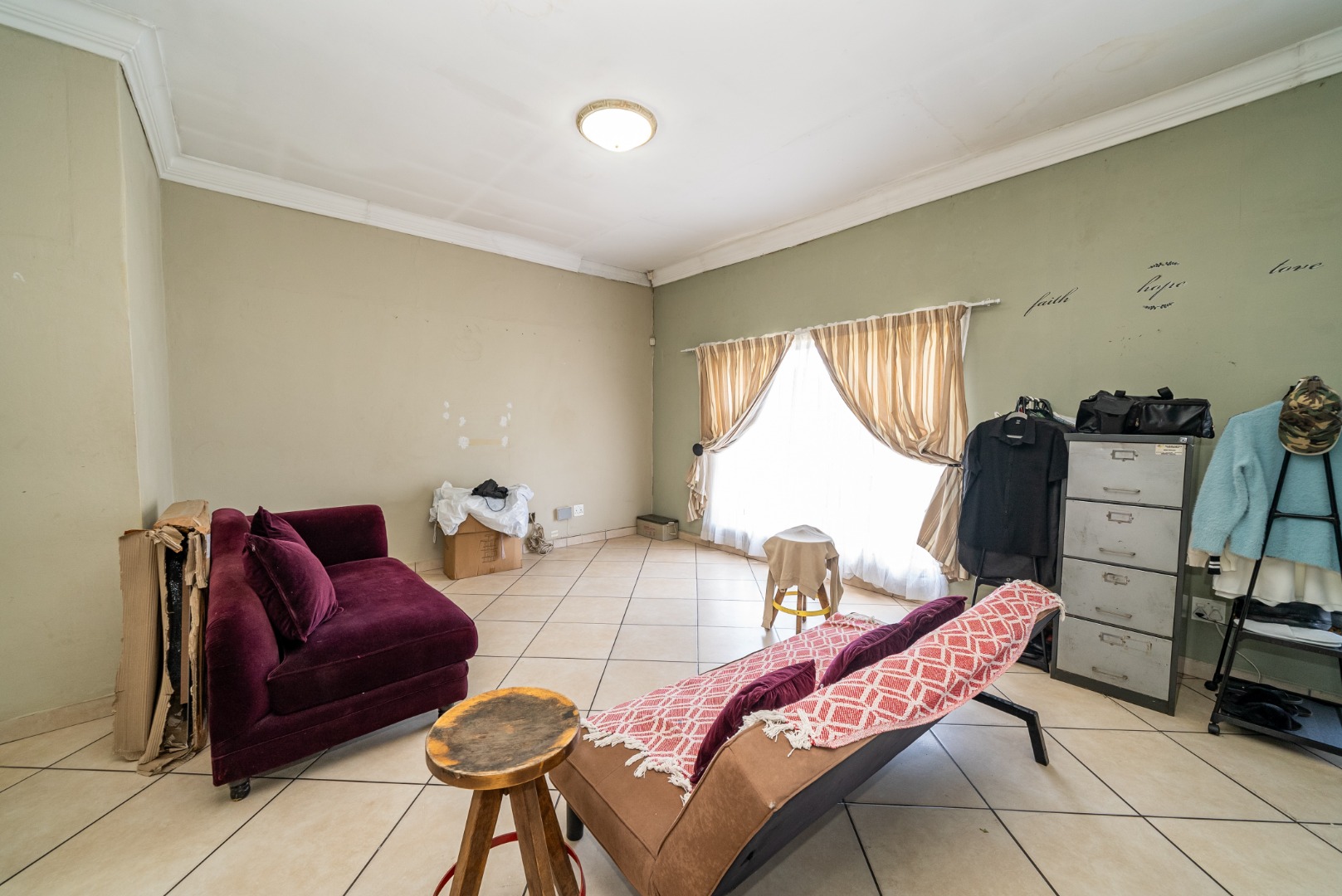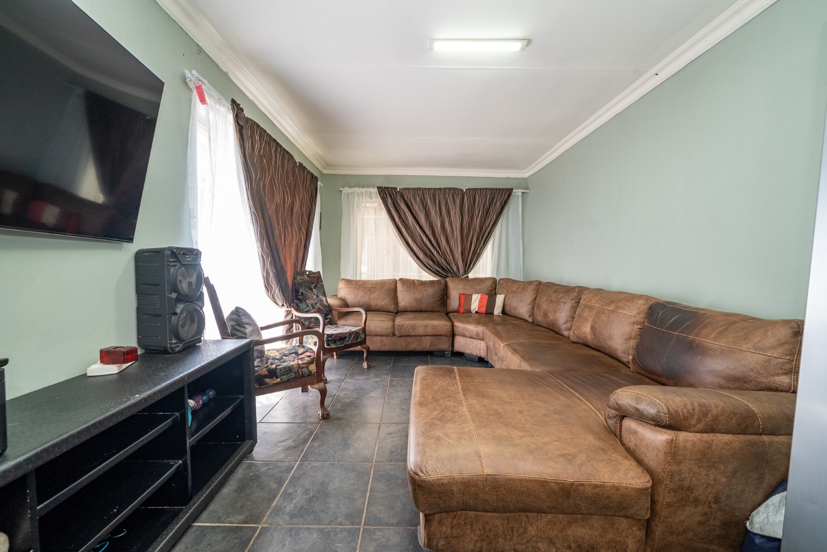 3 bedrooms with built-in cupboards, fully tiled throughout