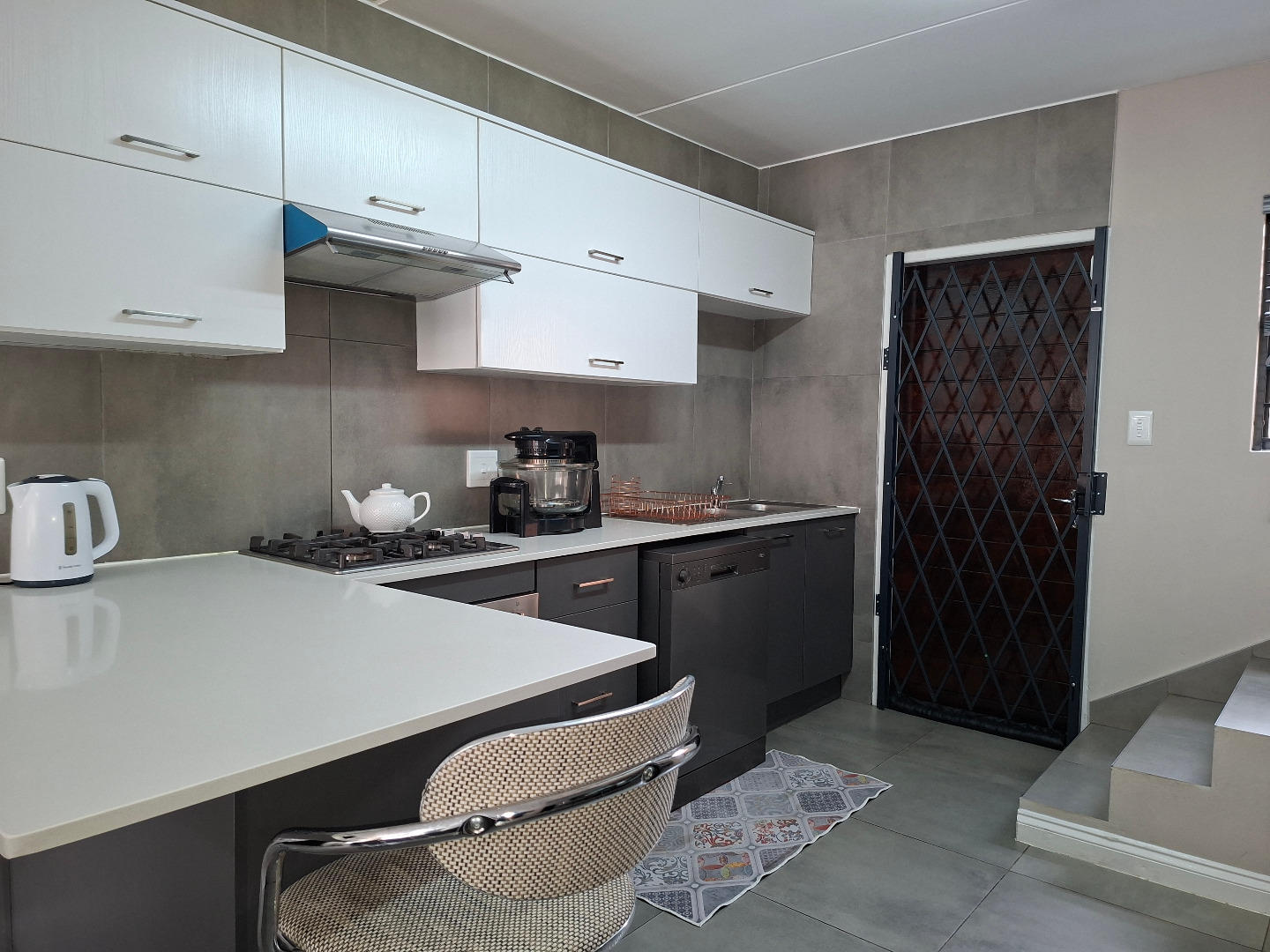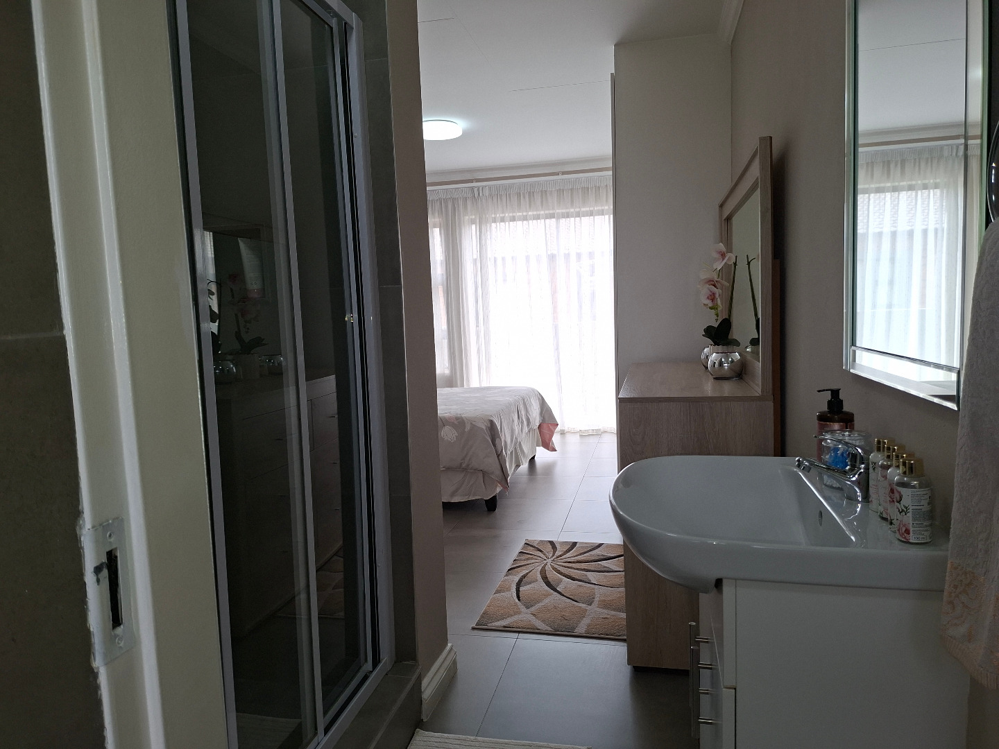 Security is paramount with 24-hour security, CCTV, gated access, electric fencing, and an intercom system. Further peace of mind is provided by burglar bars and security gates on doors. This home is also equipped with sustainable features such as solar panels and a solar geyser, contributing to energy efficiency. Fiber connectivity ensures high-speed internet access.
