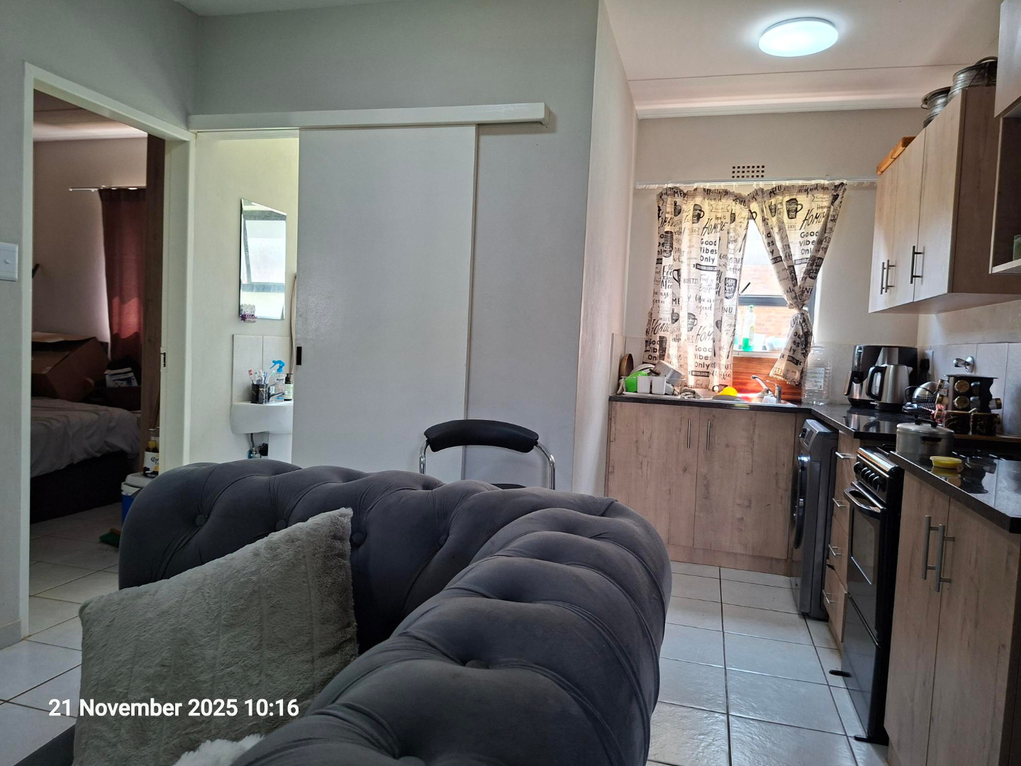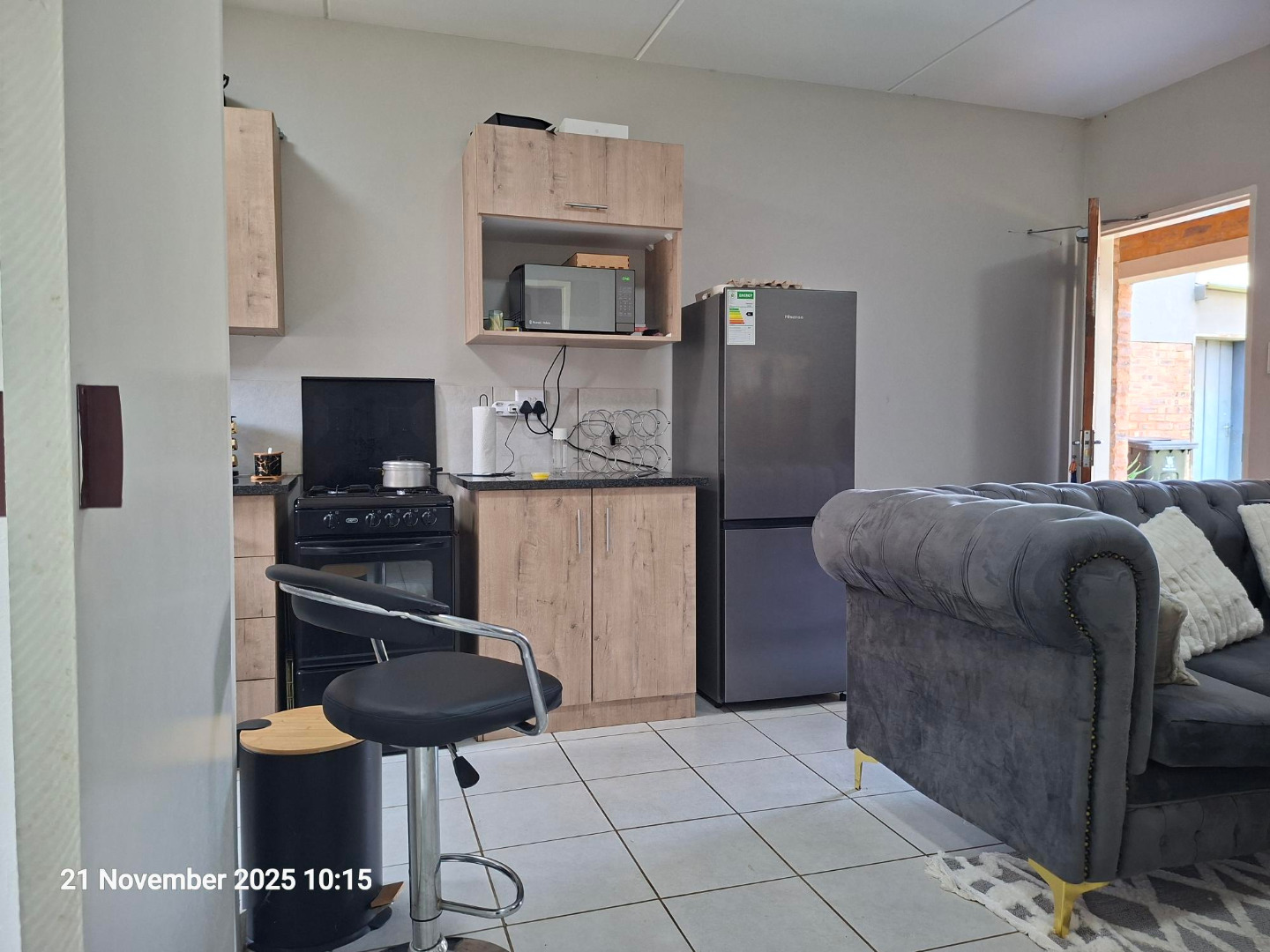 Step inside this thoughtfully designed 41 sqm interior, where an elegant open-plan layout seamlessly connects the modern kitchen with the inviting lounge and dining areas. The kitchen is a study in contemporary design, featuring sleek light wood-grain cabinetry, sophisticated dark countertops, and the convenience of an integrated washing machine. Tiled flooring extends throughout, ensuring both aesthetic appeal and effortless maintenance. Two serene bedrooms offer private retreats, complemented by a well-appointed bathroom.